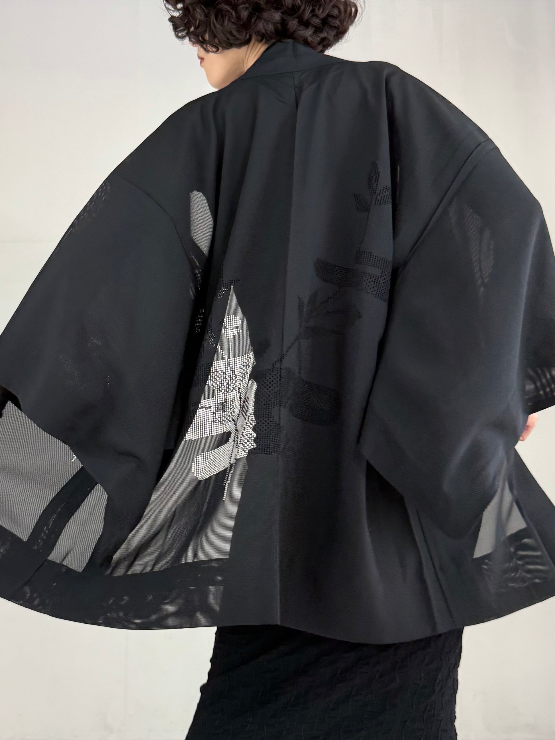 VINTAGE BLACK HAORI SHEER “ro, eagasumi"