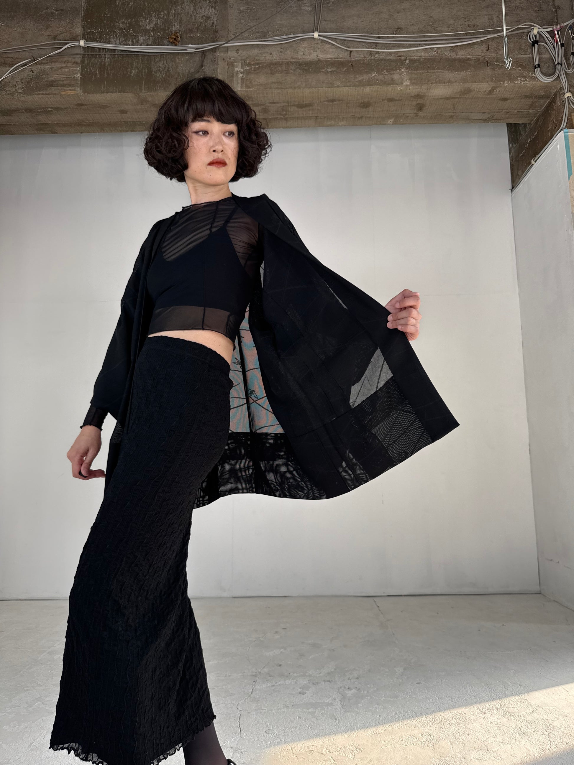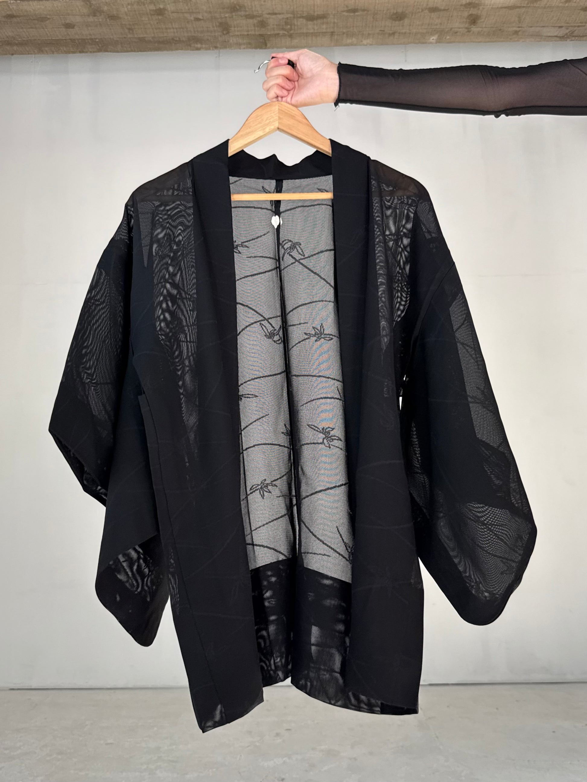 VINTAGE BLACK HAORI SHEER “sha, sougara-kamon"