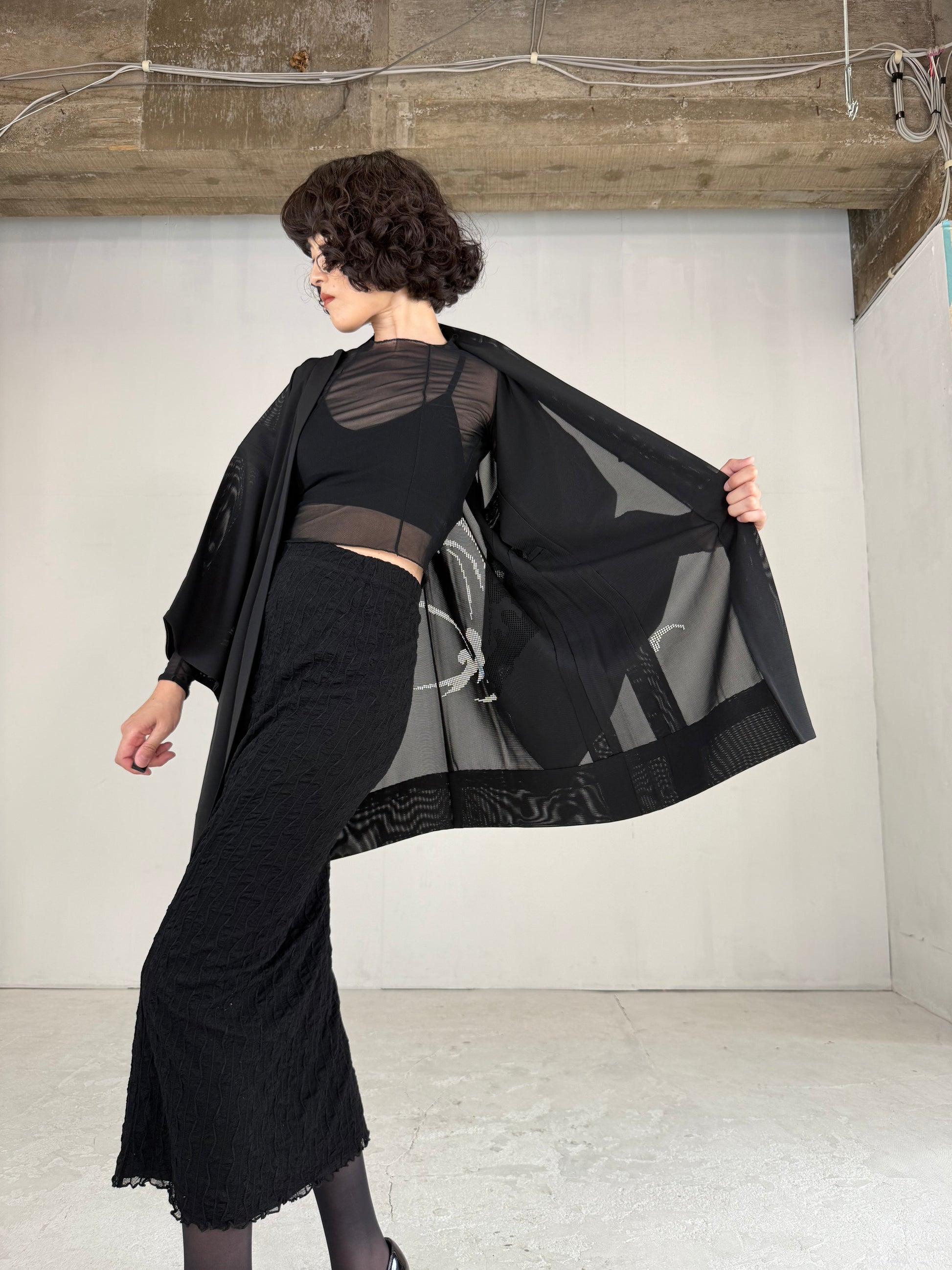 VINTAGE BLACK HAORI SHEER “ro, mizushibuki"