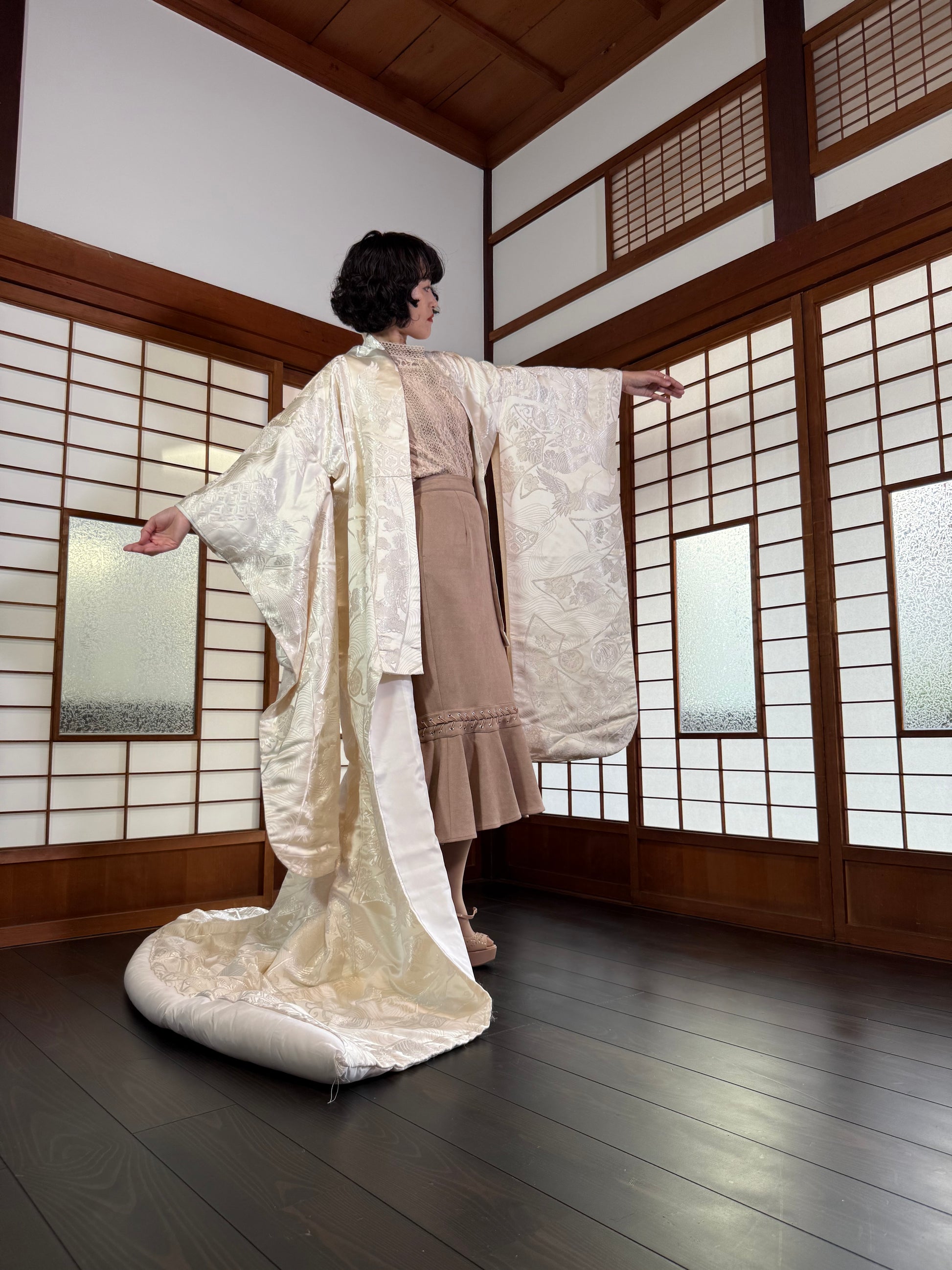 *This product is lighter in weight compared to other vintage white wedding kimonos (shiromuku).