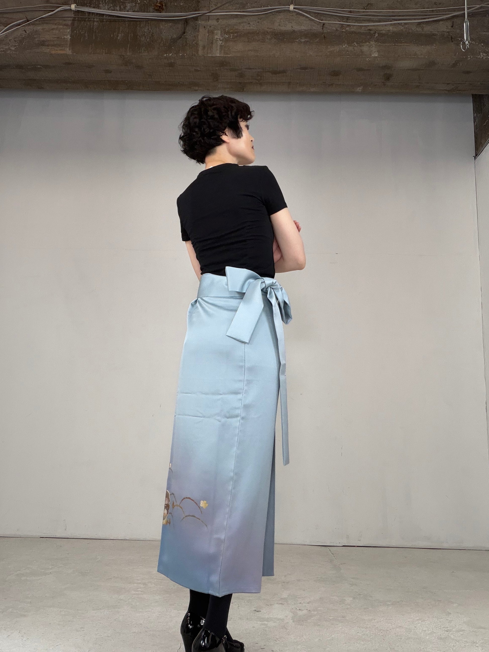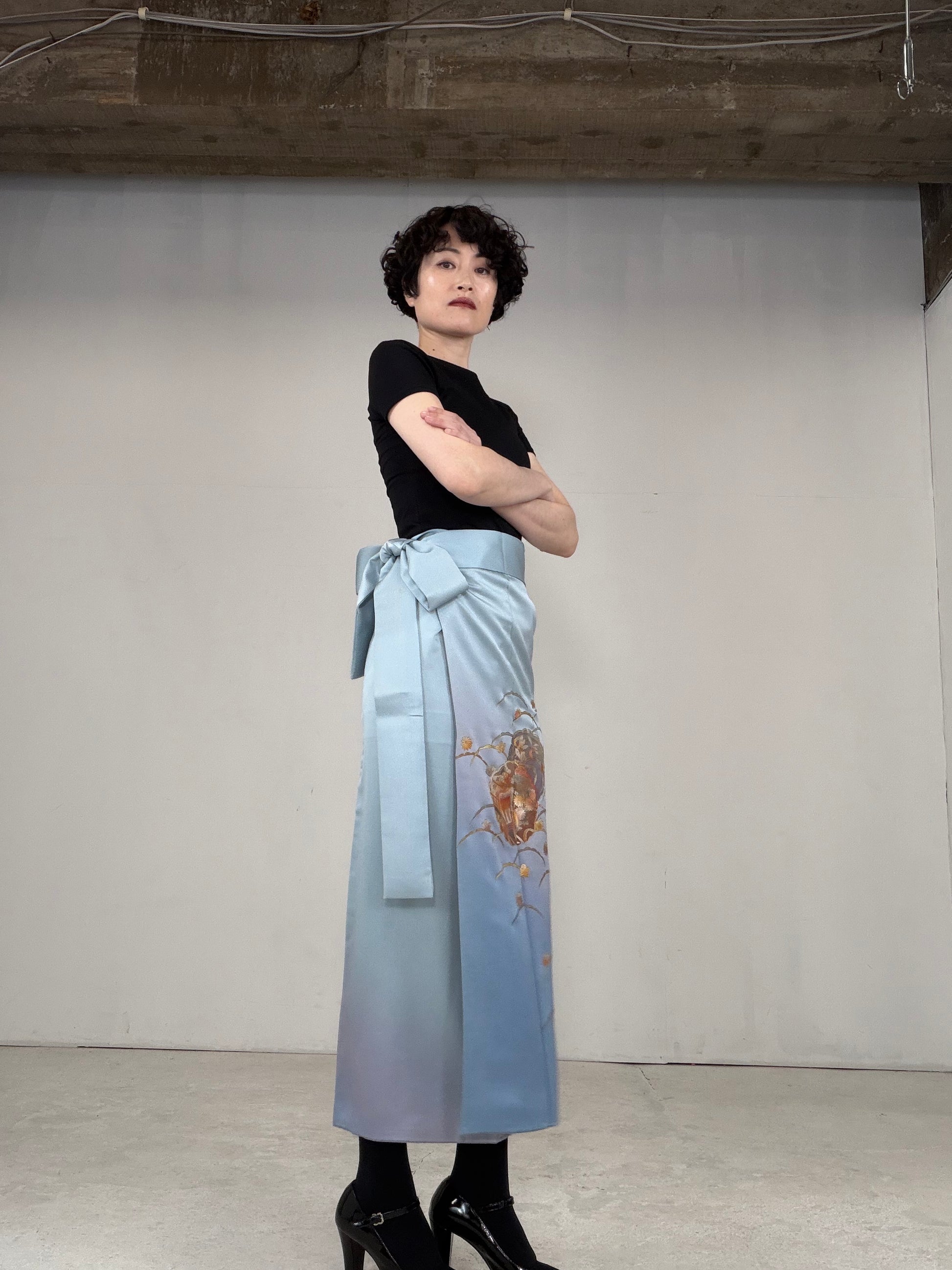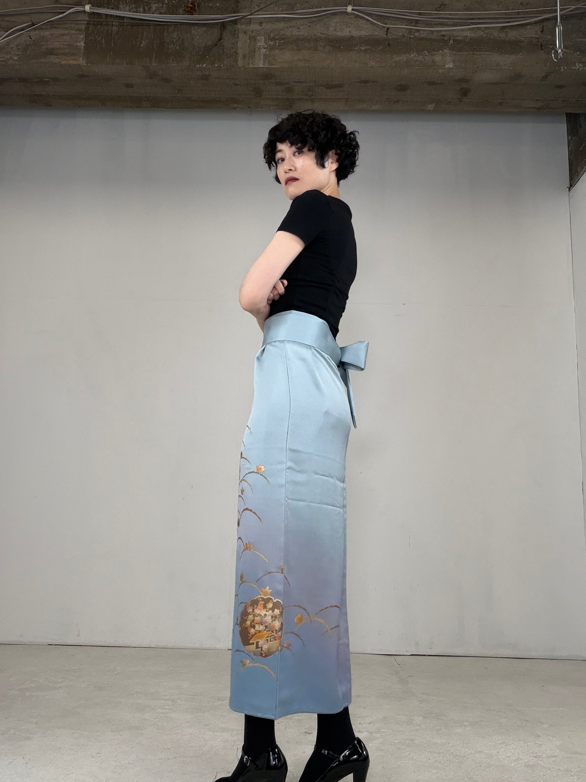 This IROTOME SKIRT is made of a vintage silk kimono.