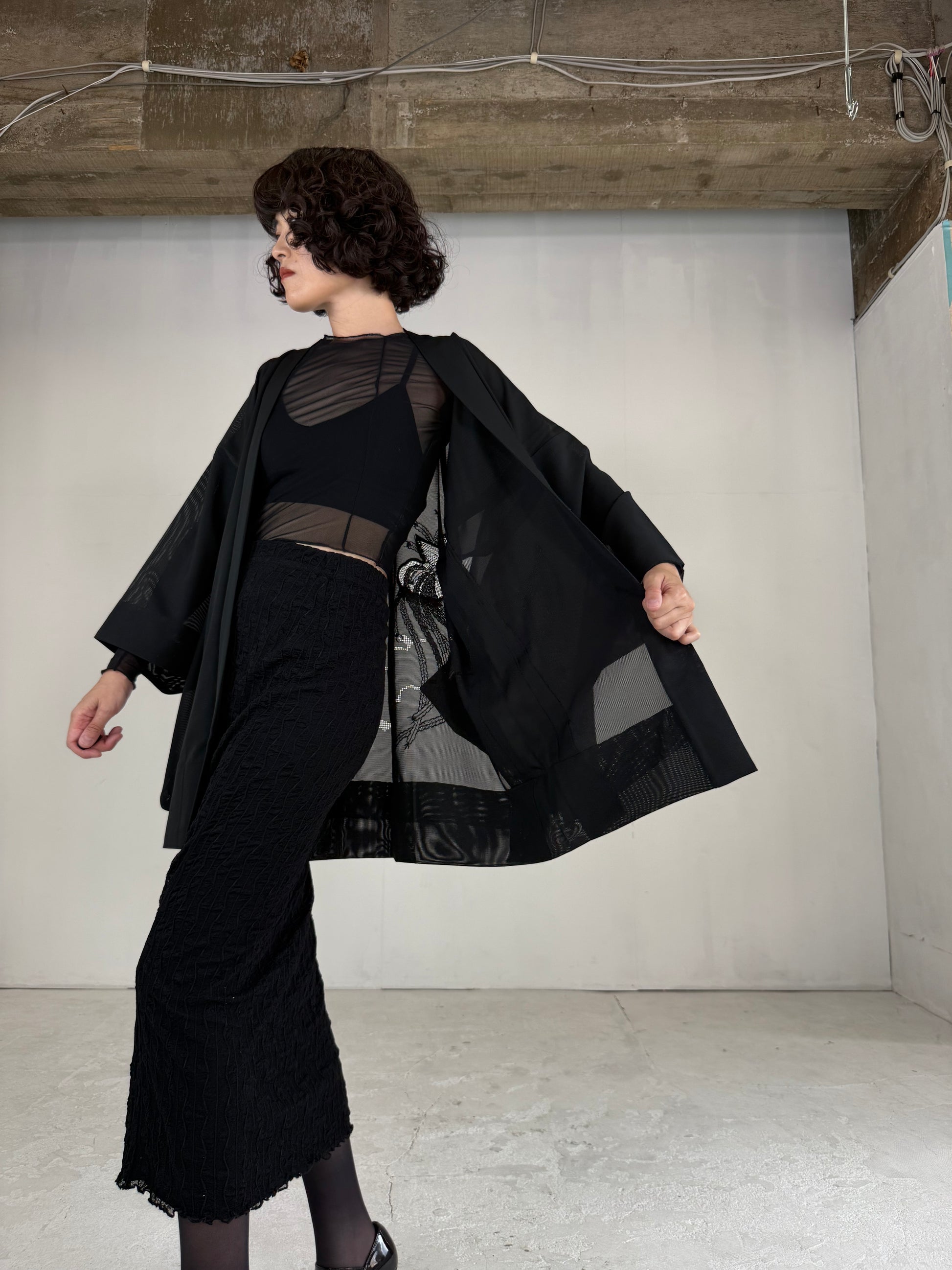 VINTAGE BLACK HAORI SHEER “ro, lace, kujaku"