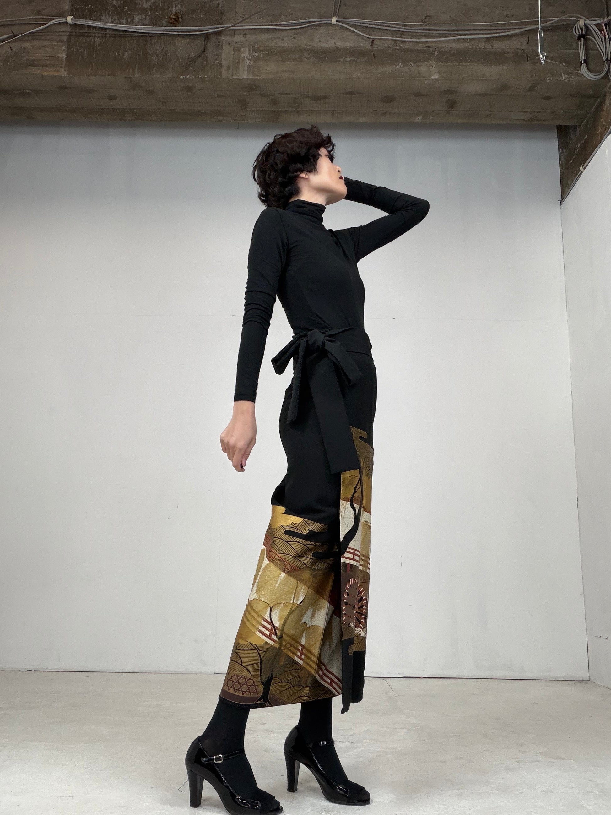 This EDO-ZUMA SKIRT is made of a vintage silk kimono