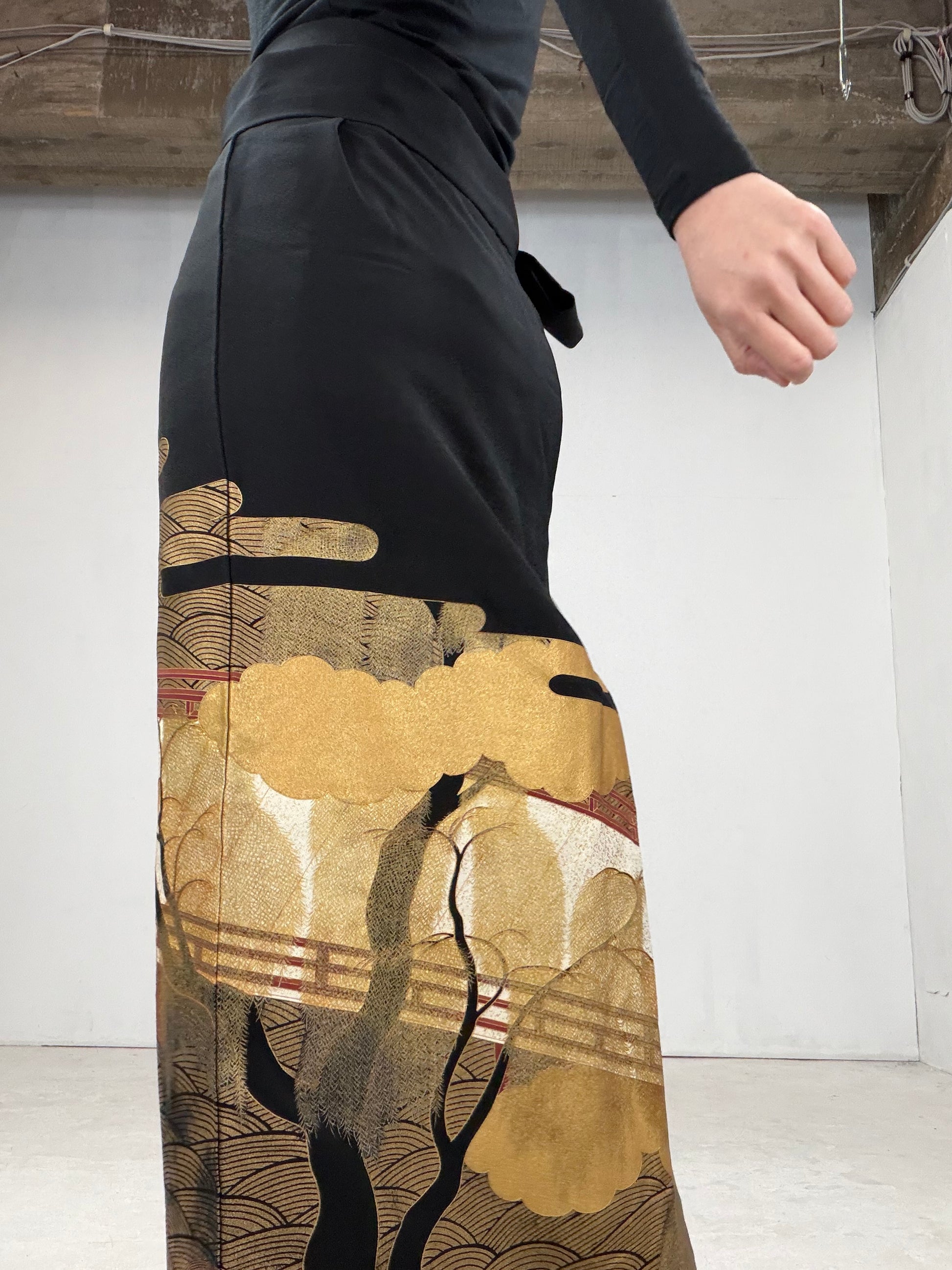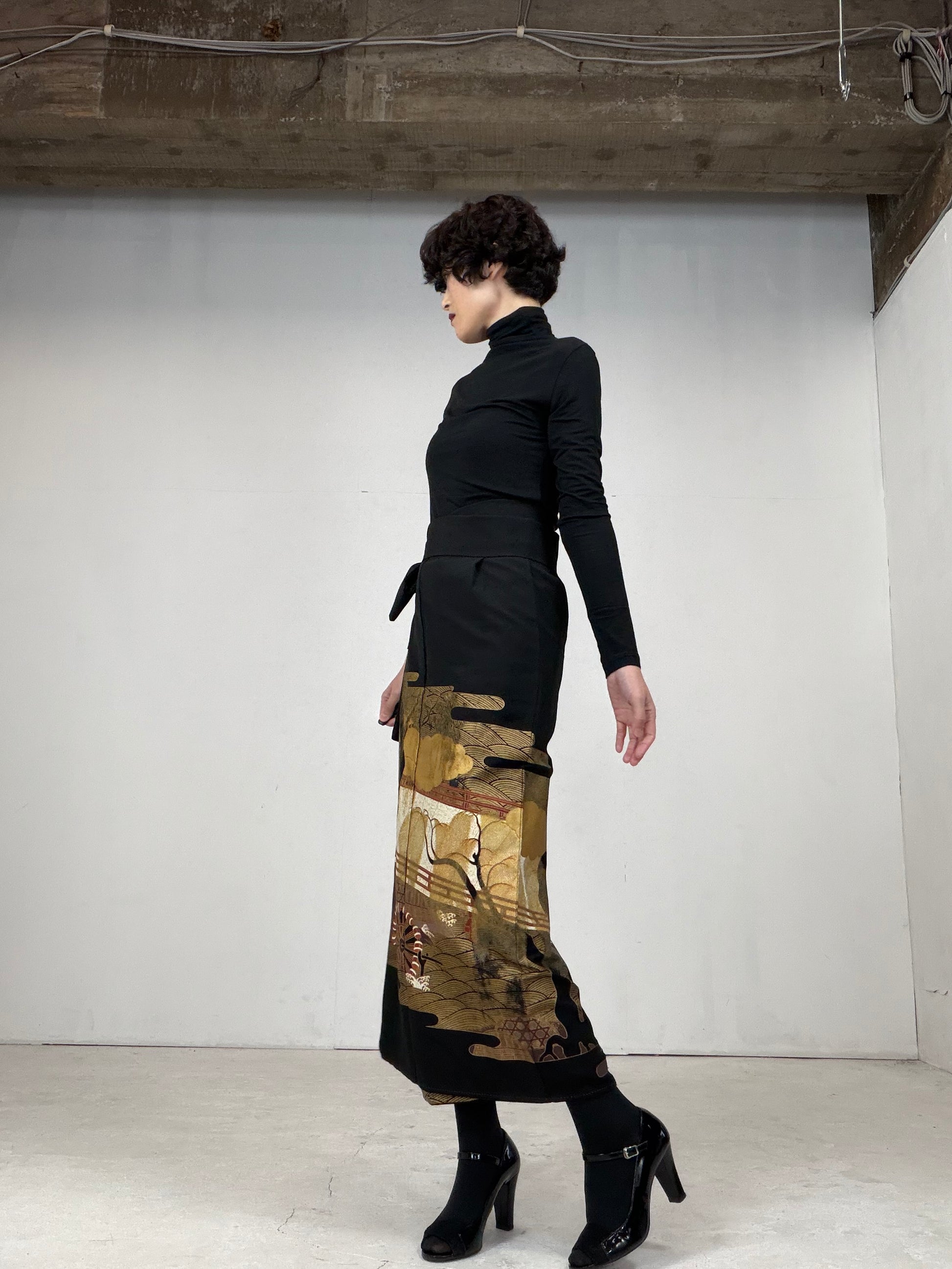 EDO-ZUMA SKIRT UPCYCLED FROM JAPANESE KIMONO "012"*damage