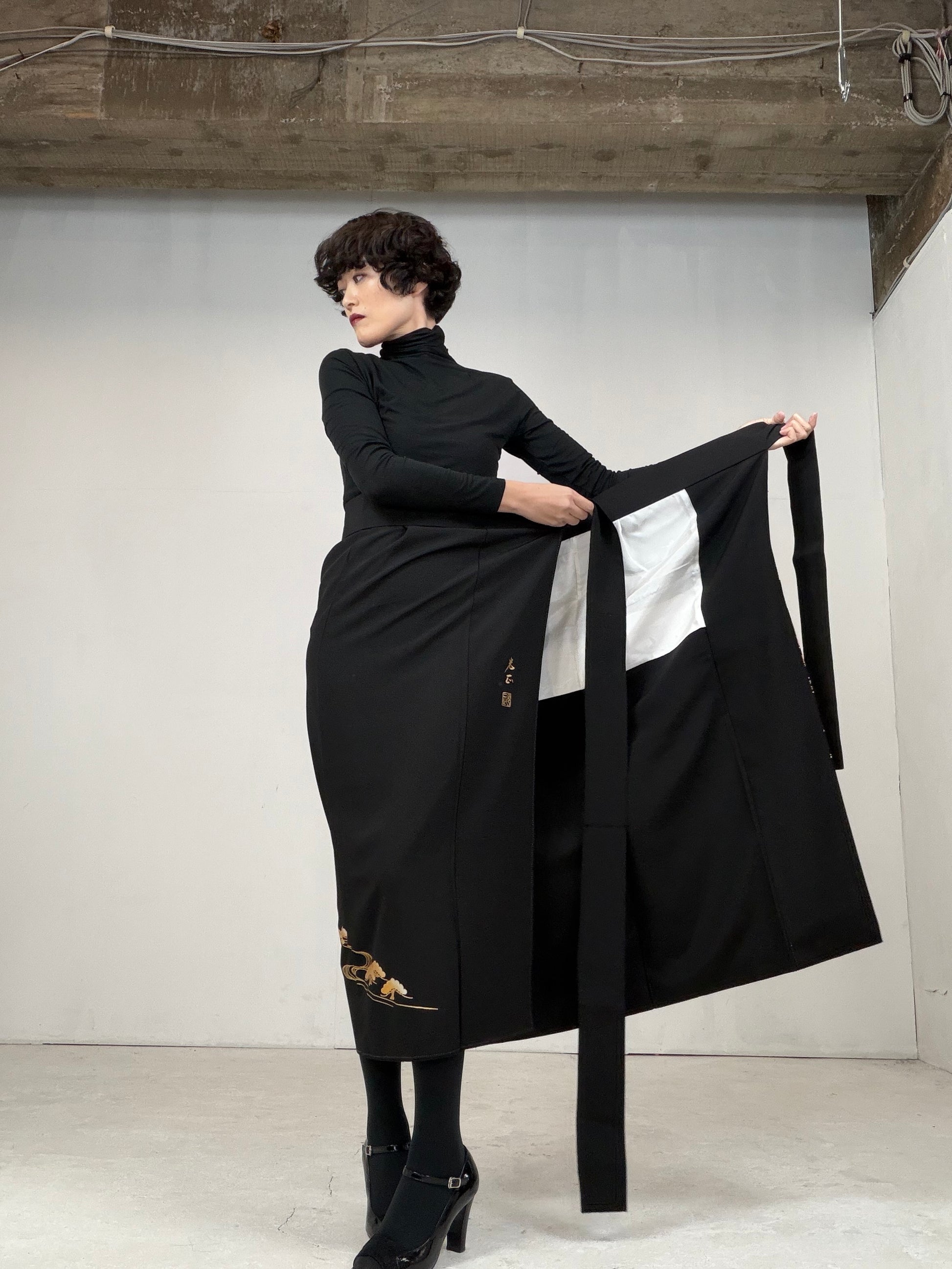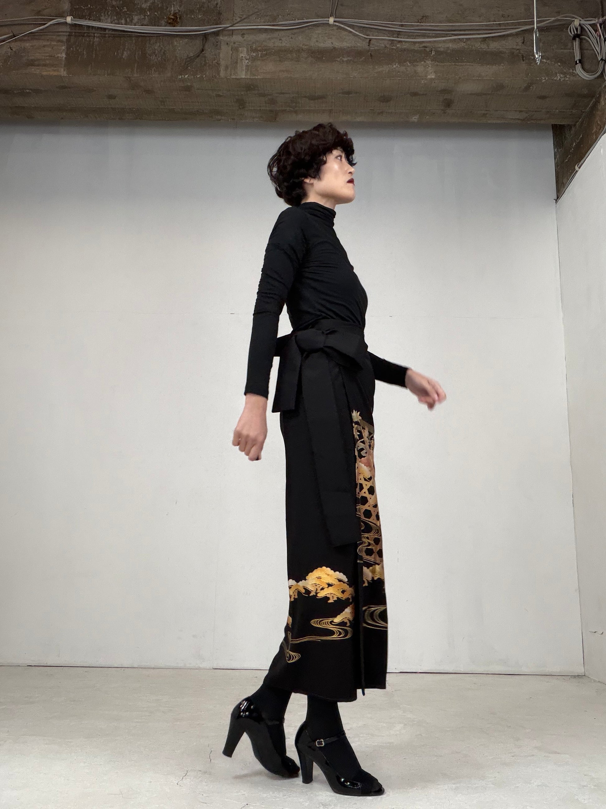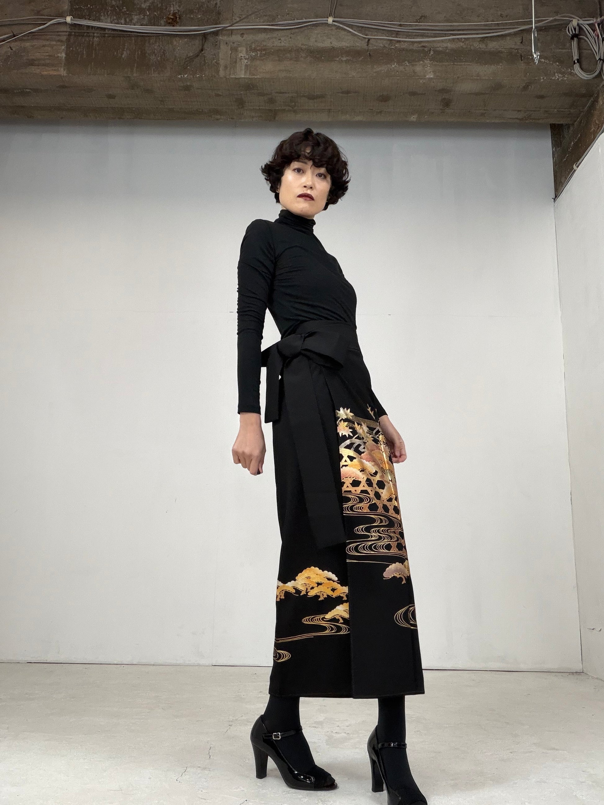 This EDO-ZUMA SKIRT is made of a vintage silk kimono