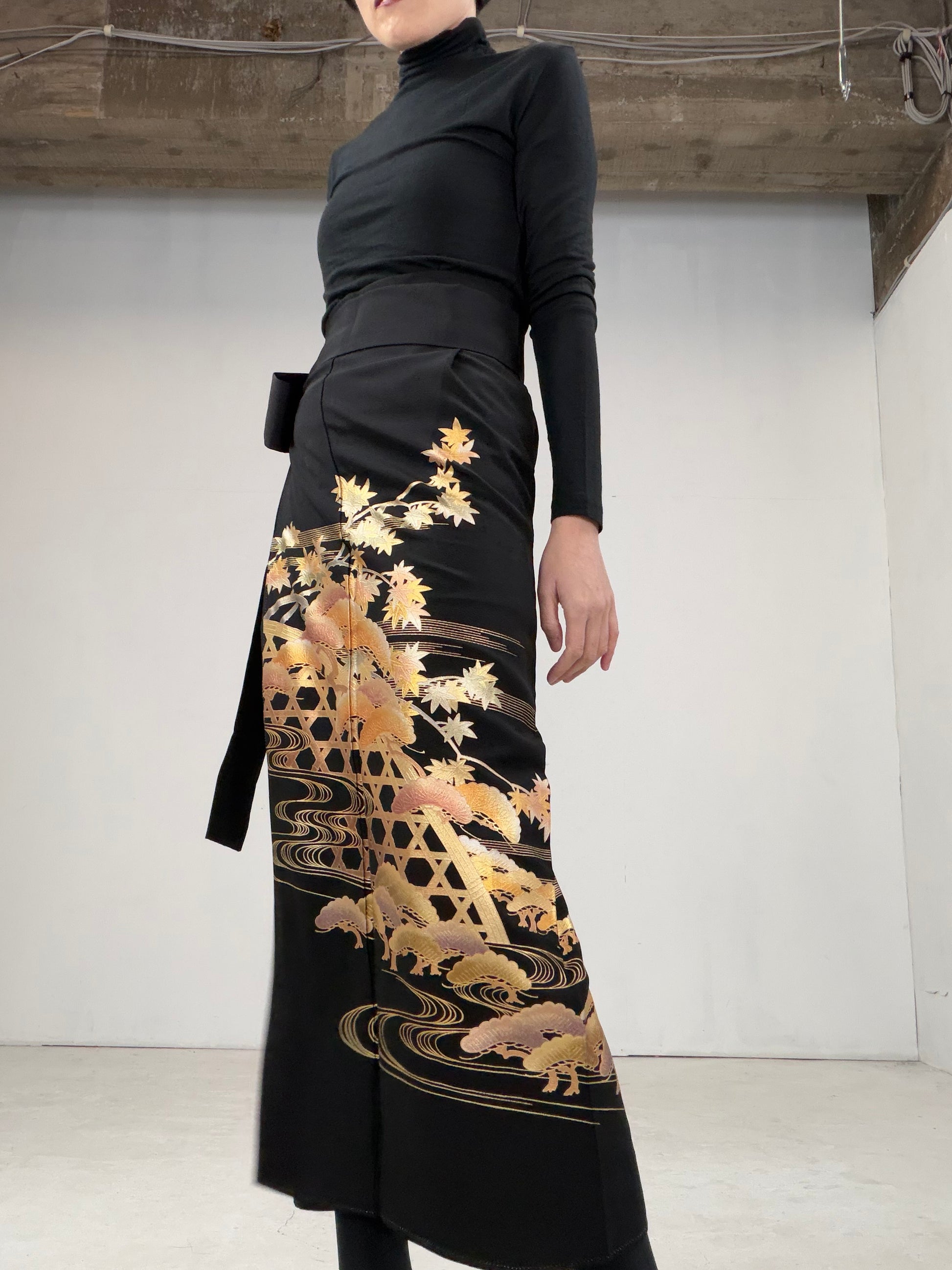 EDO-ZUMA SKIRT UPCYCLED FROM JAPANESE KIMONO "016"