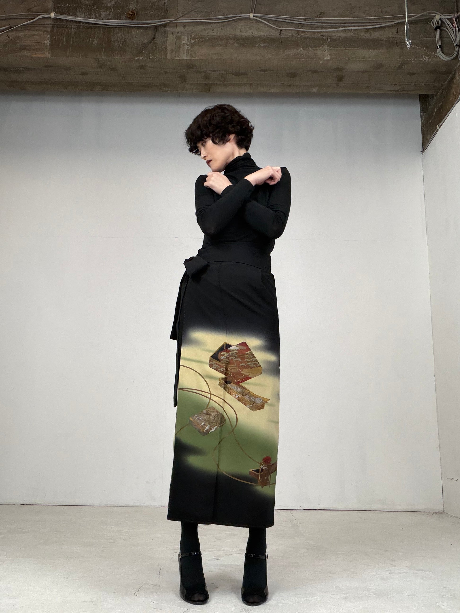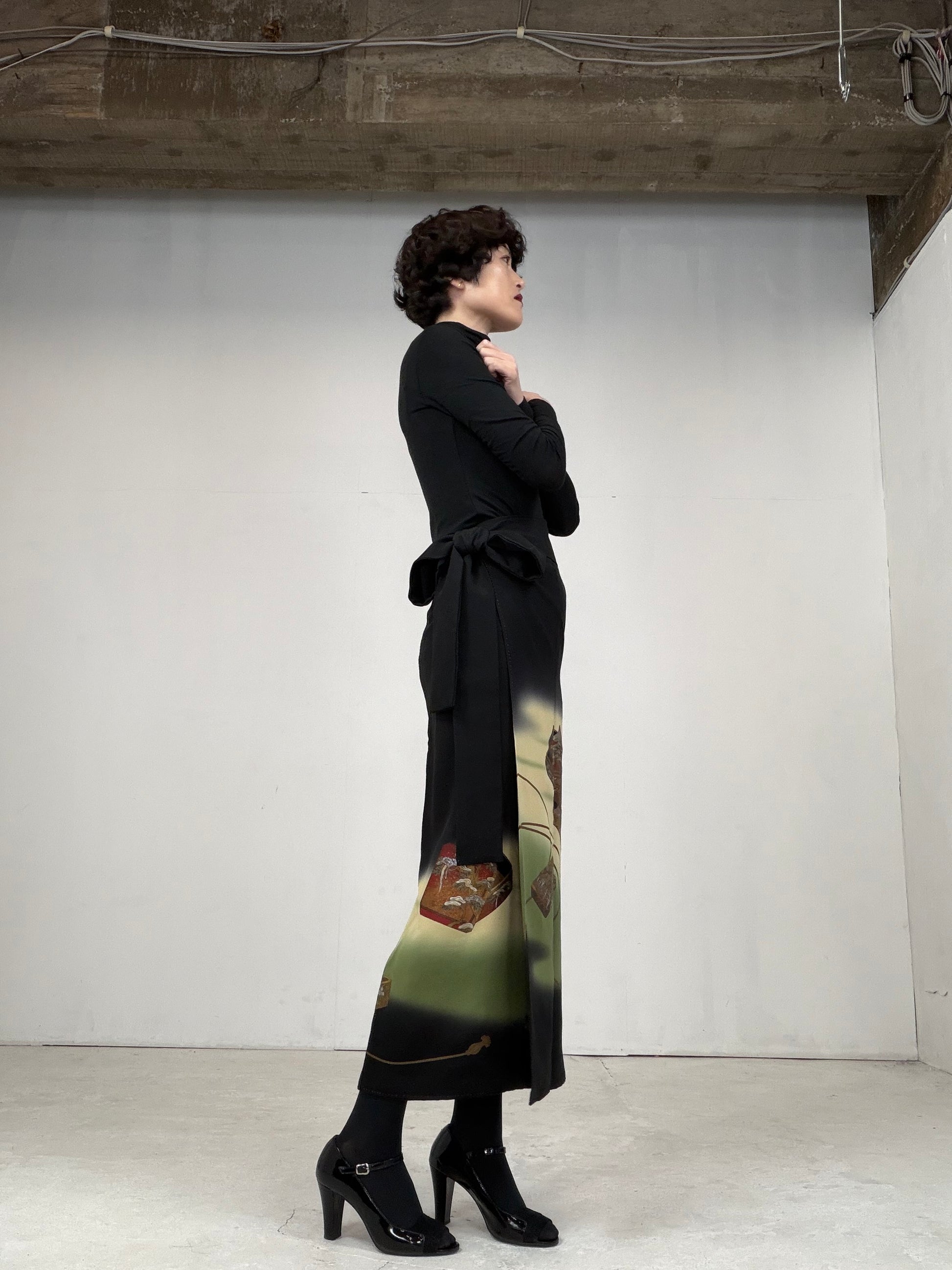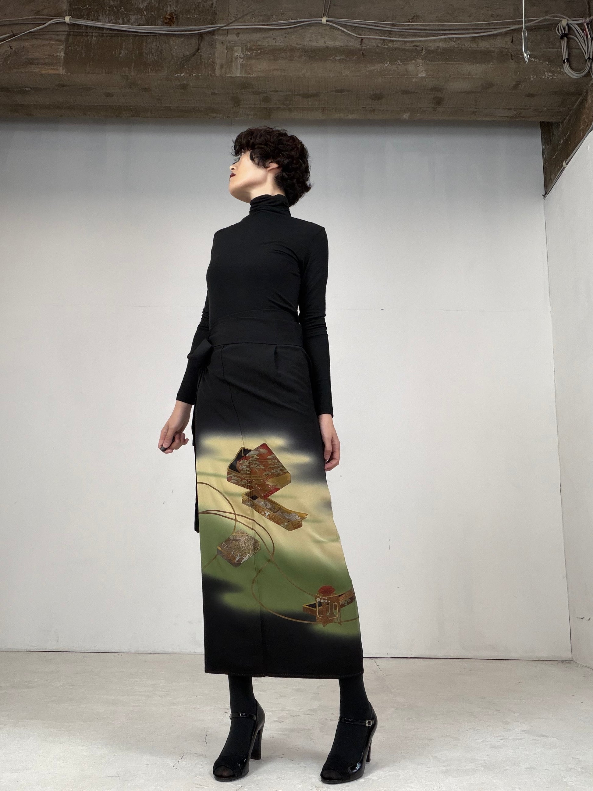 This EDO-ZUMA SKIRT is made of a vintage silk kimono