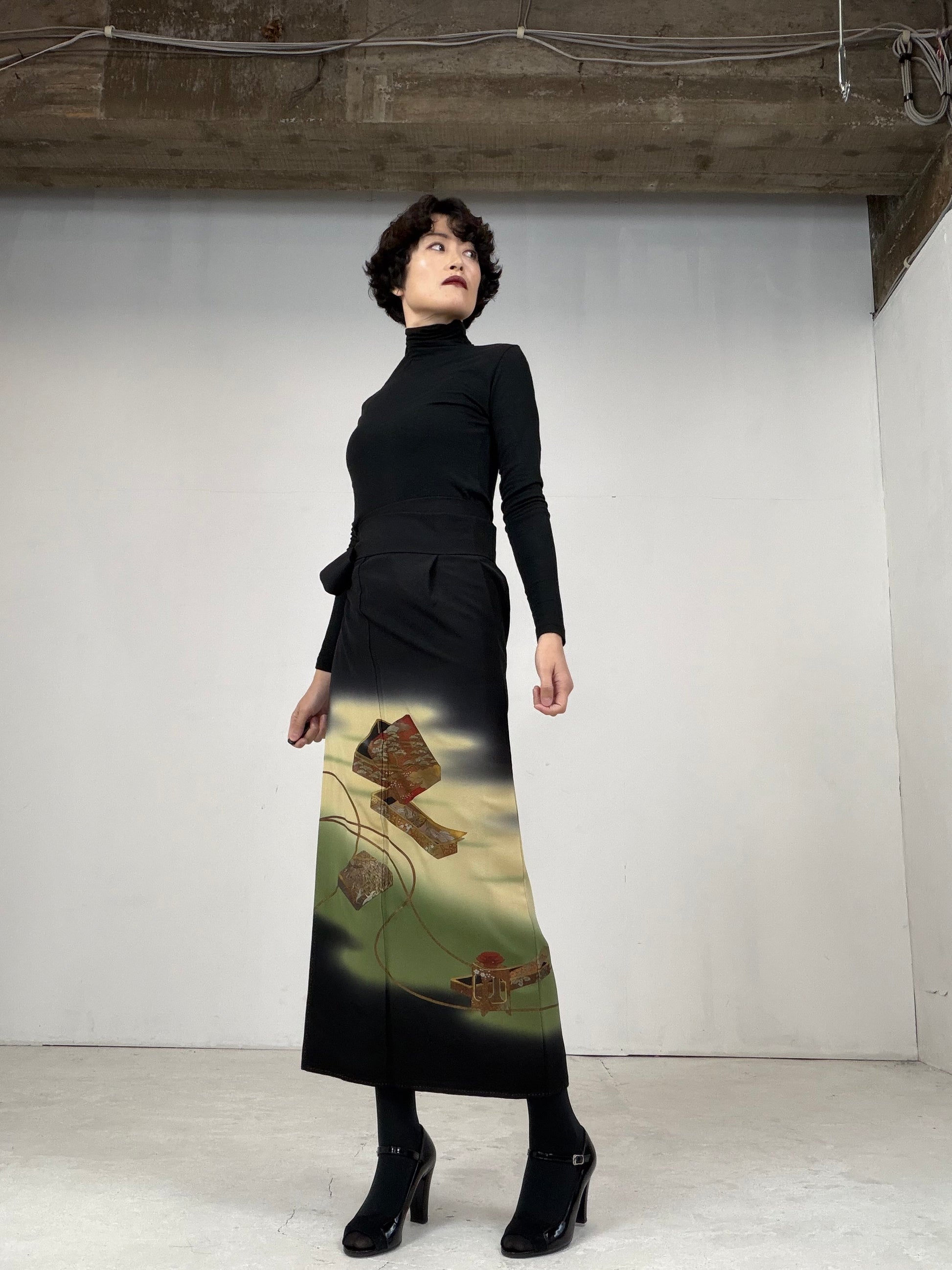 EDO-ZUMA SKIRT UPCYCLED FROM JAPANESE KIMONO "018"