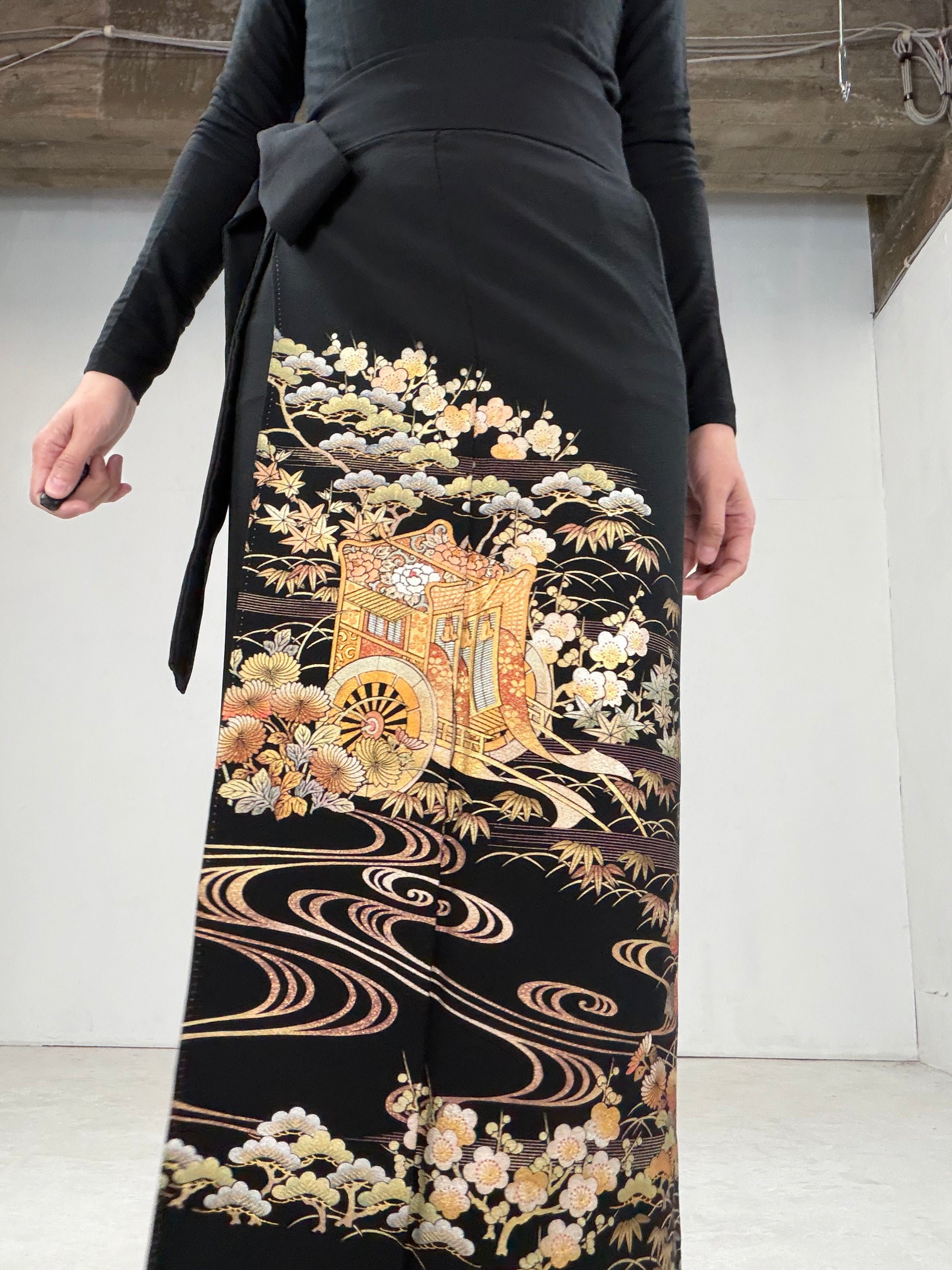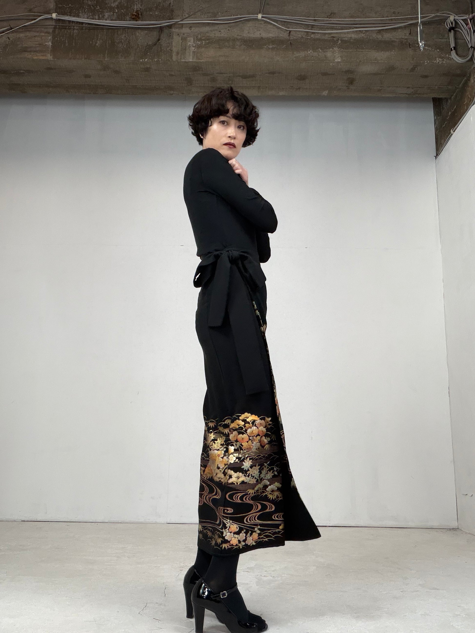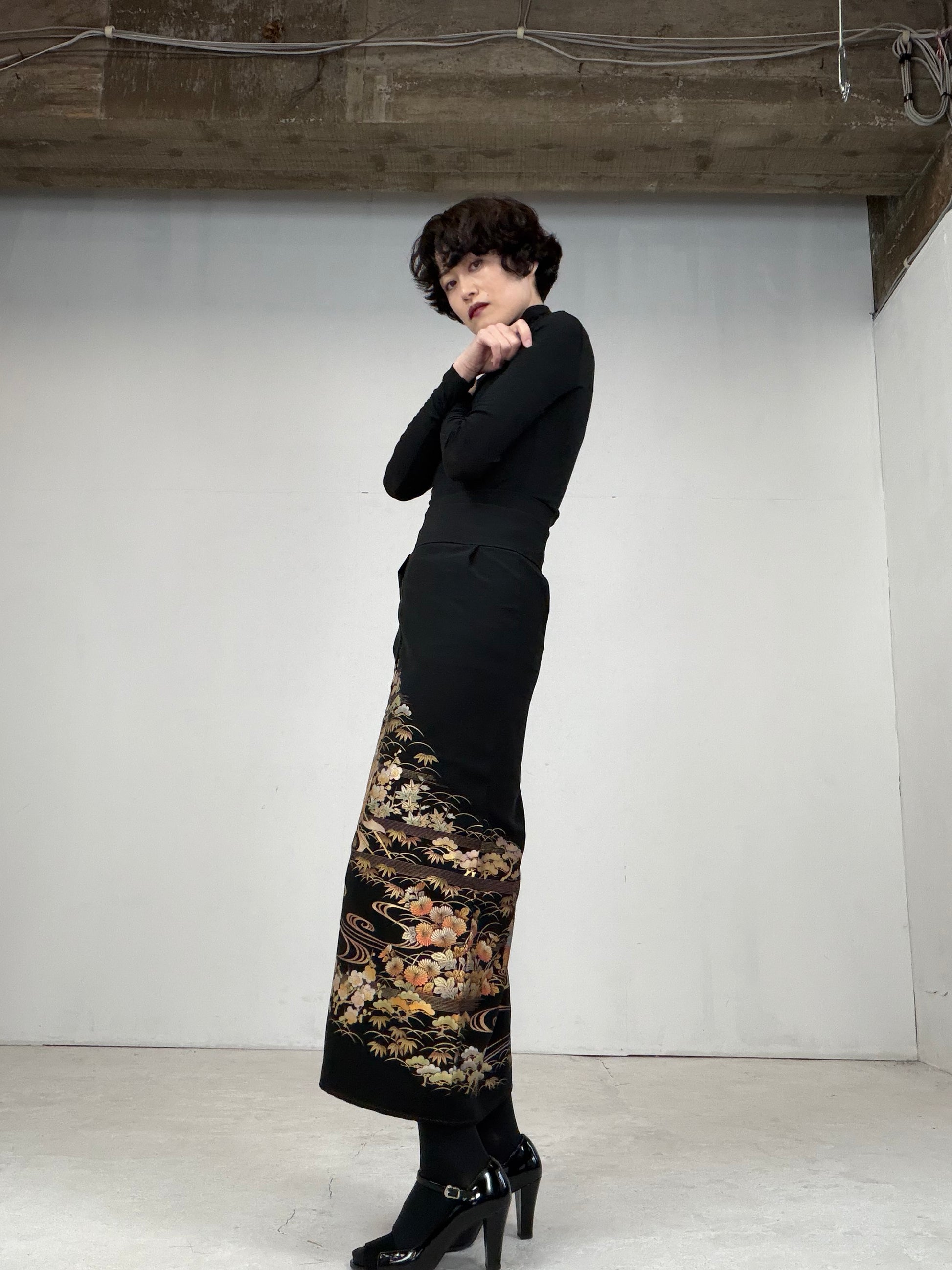 This EDO-ZUMA SKIRT is made of a vintage silk kimono