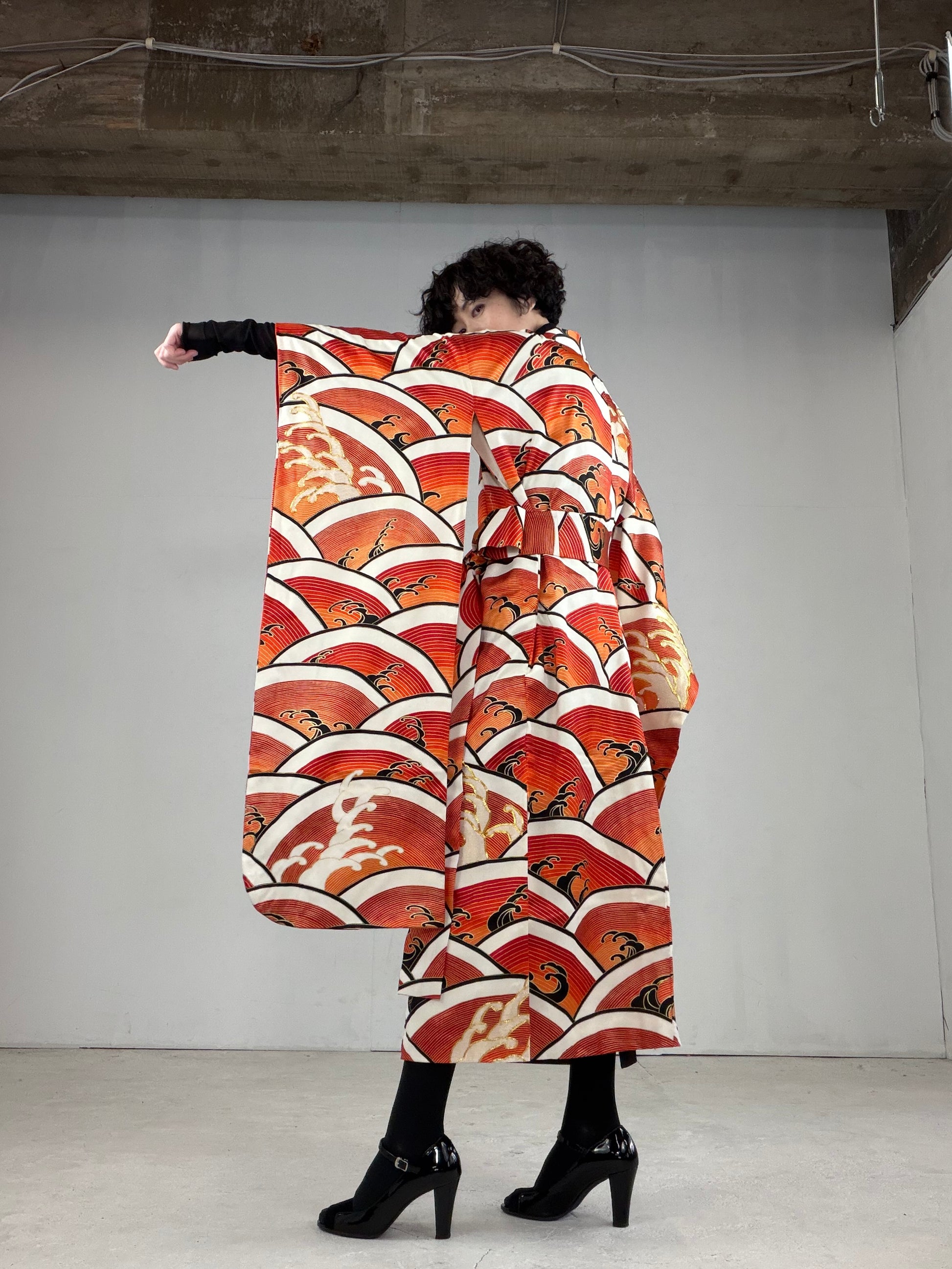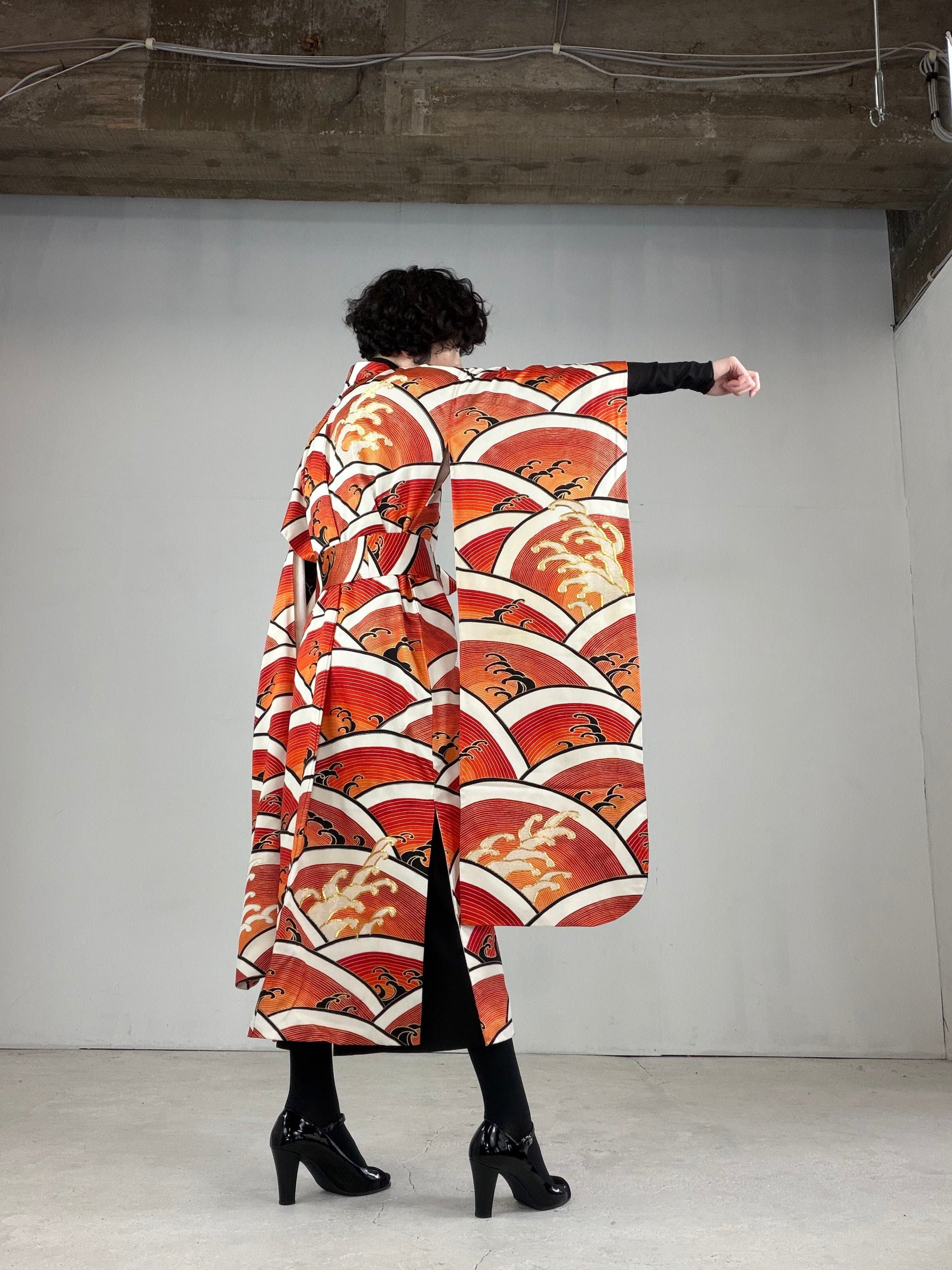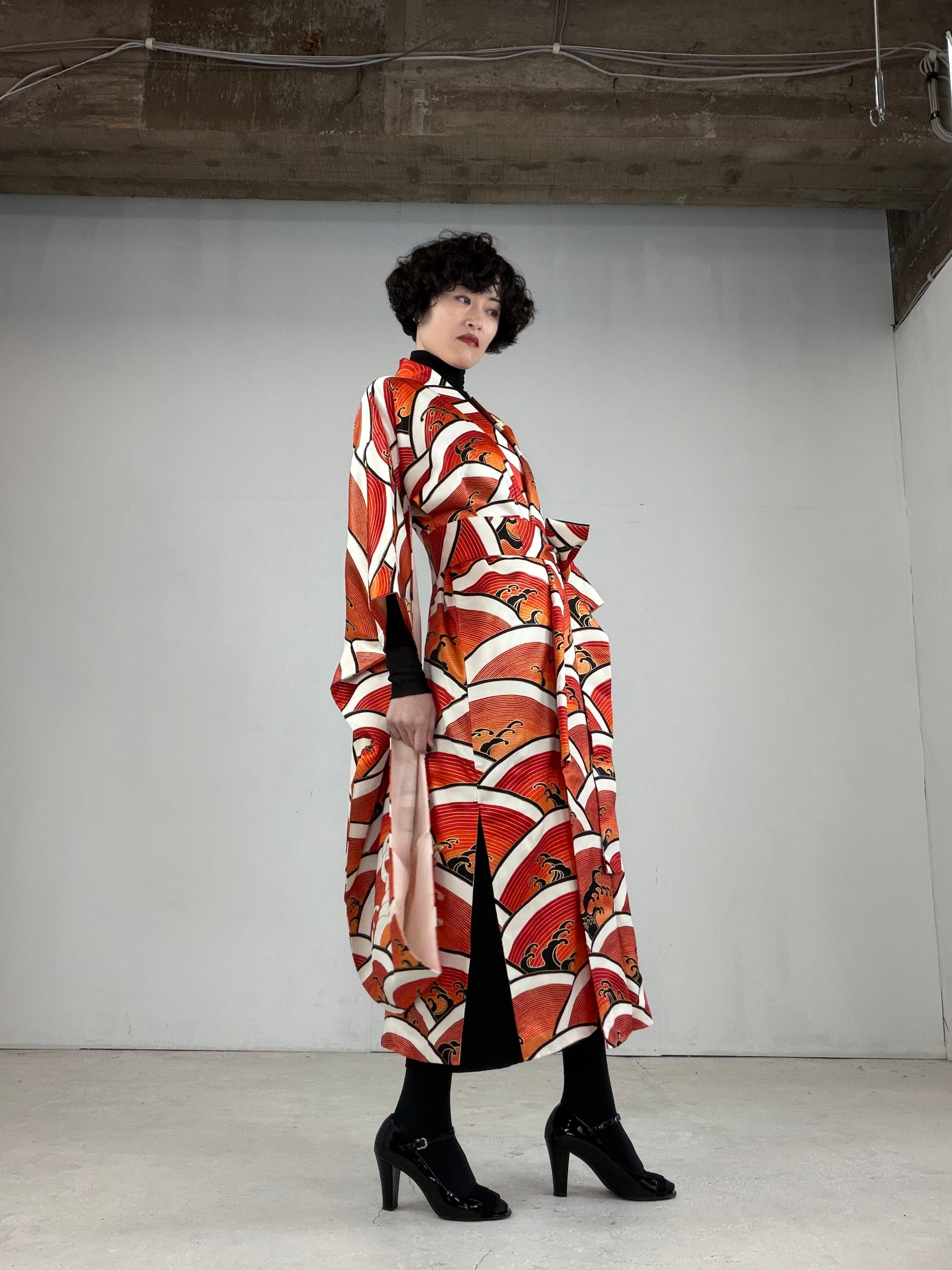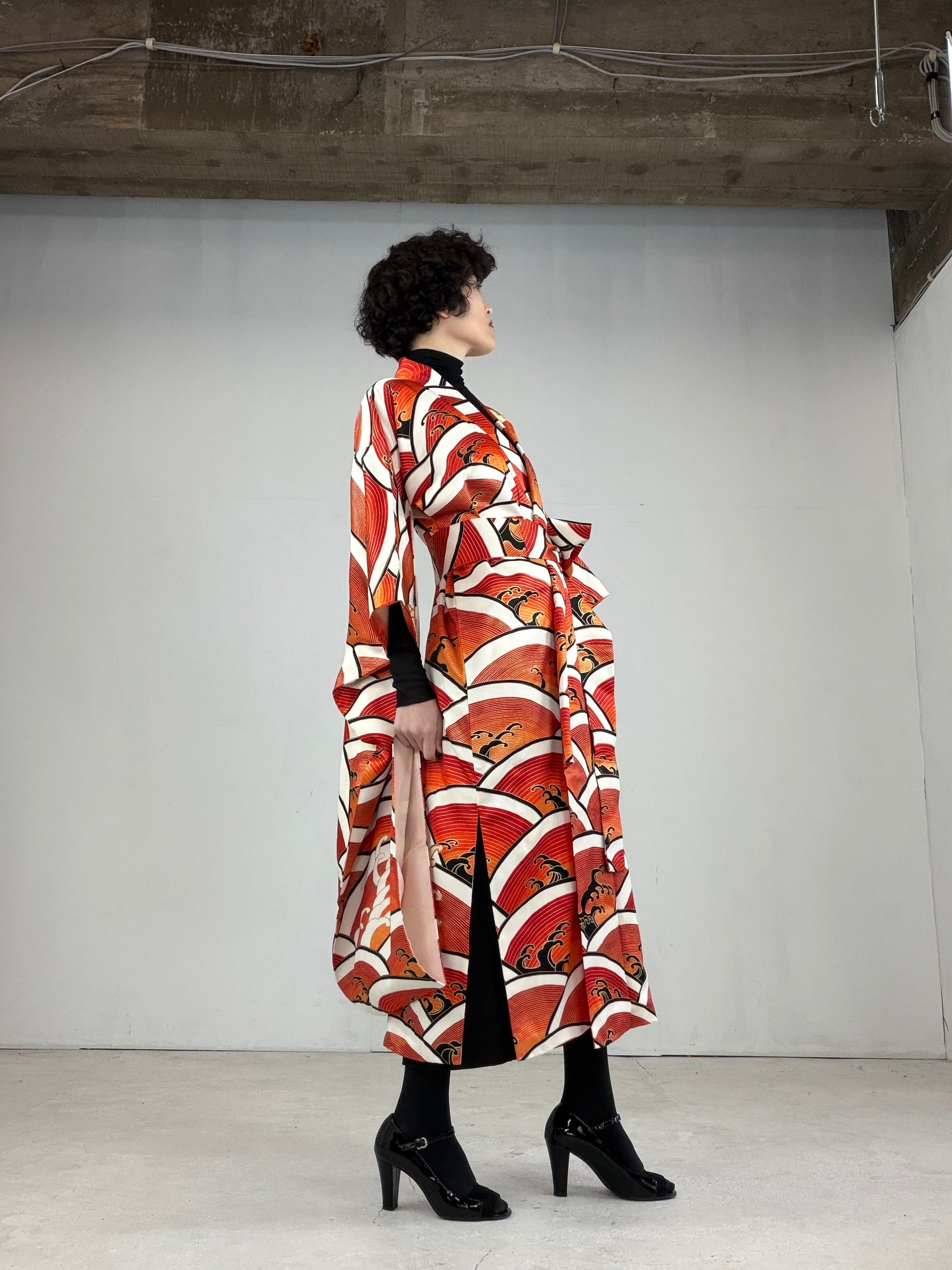 This dress gown is made of a vintage silk kimono 振袖 furisode.