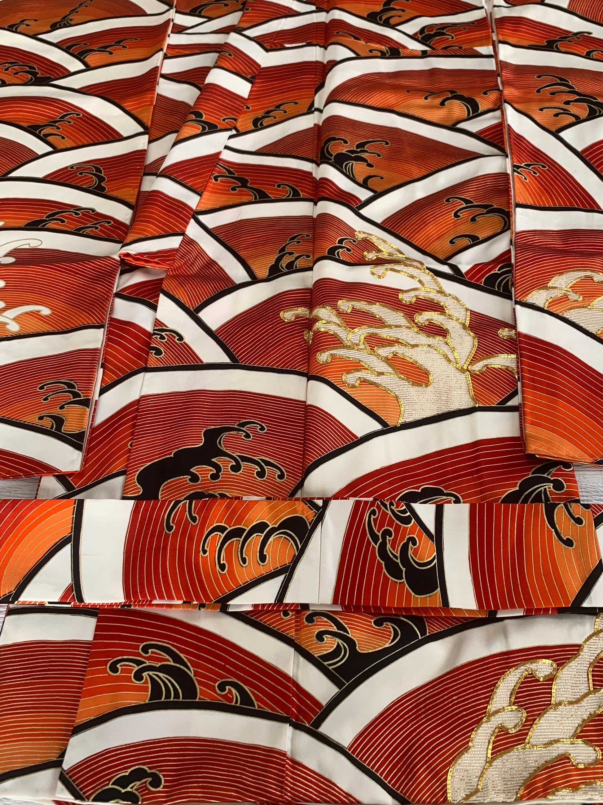 As a result, determining the exact composition of vintage fabrics is not always possible. Based on my experience as a licensed antique art dealer and upcycling artist, I examine the fabric using visual texture, burn tests, and the known age of the kimono to make an educated guess.