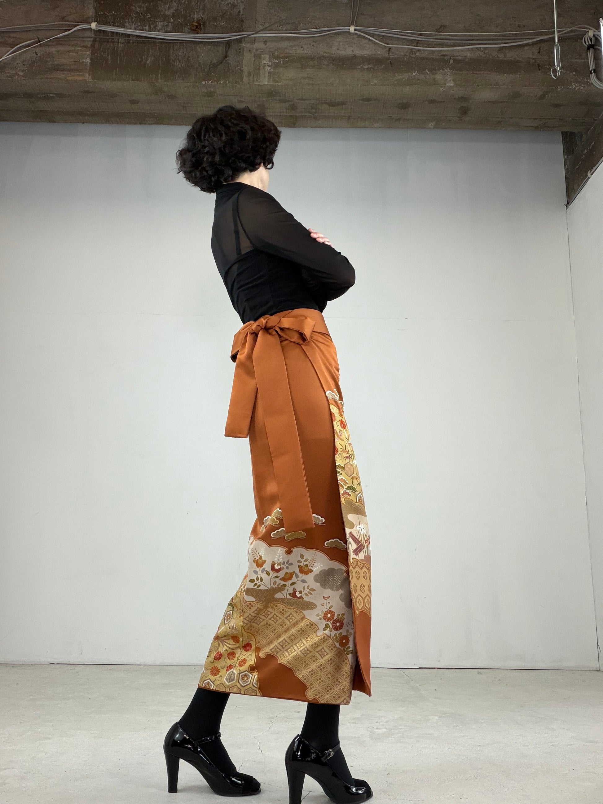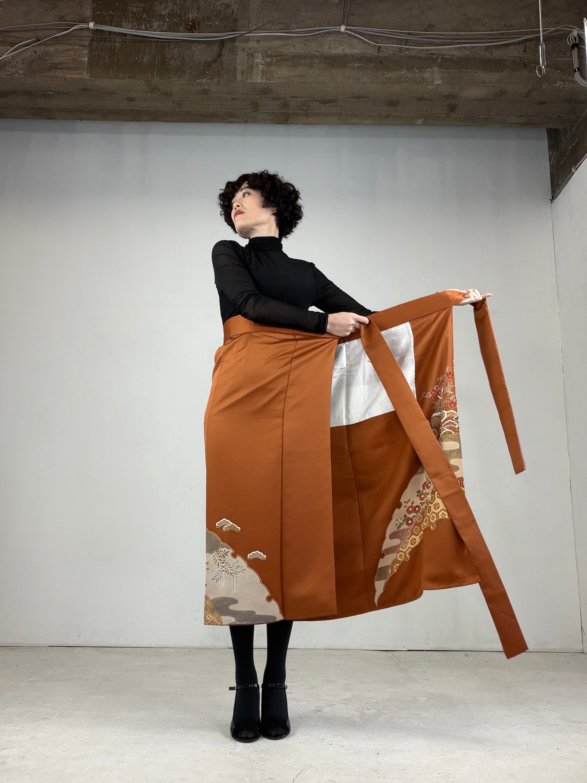 This IROTOME SKIRT is made of a vintage silk kimono.