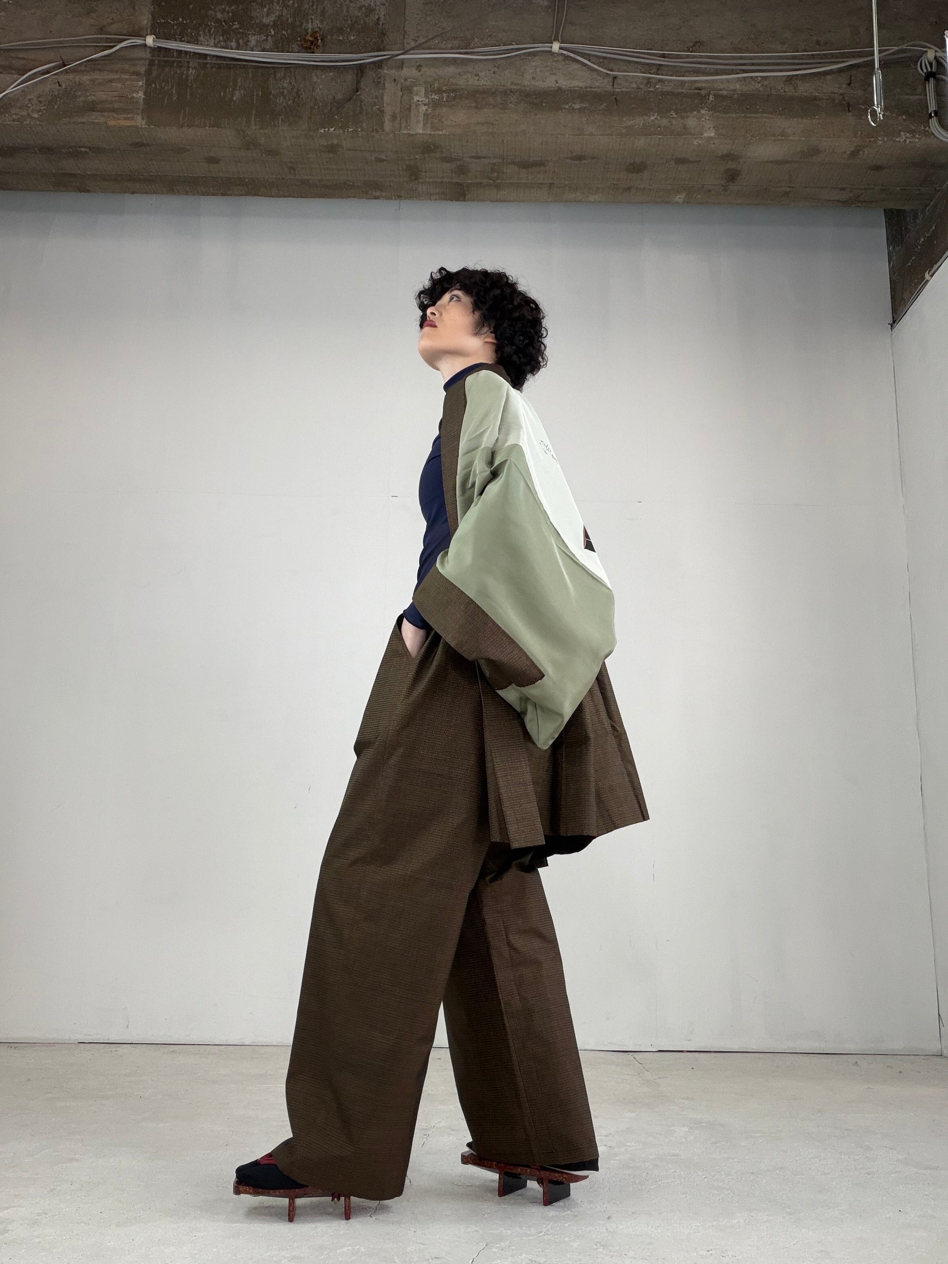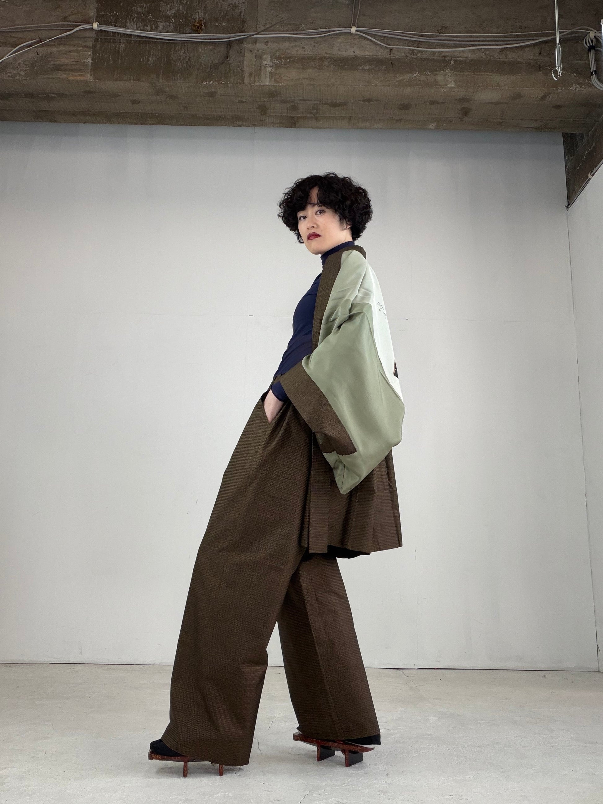 Oshima Tsumugi HAORI and KIMONO elastic waist pants upcycled from Japanese kimono" ASB006"