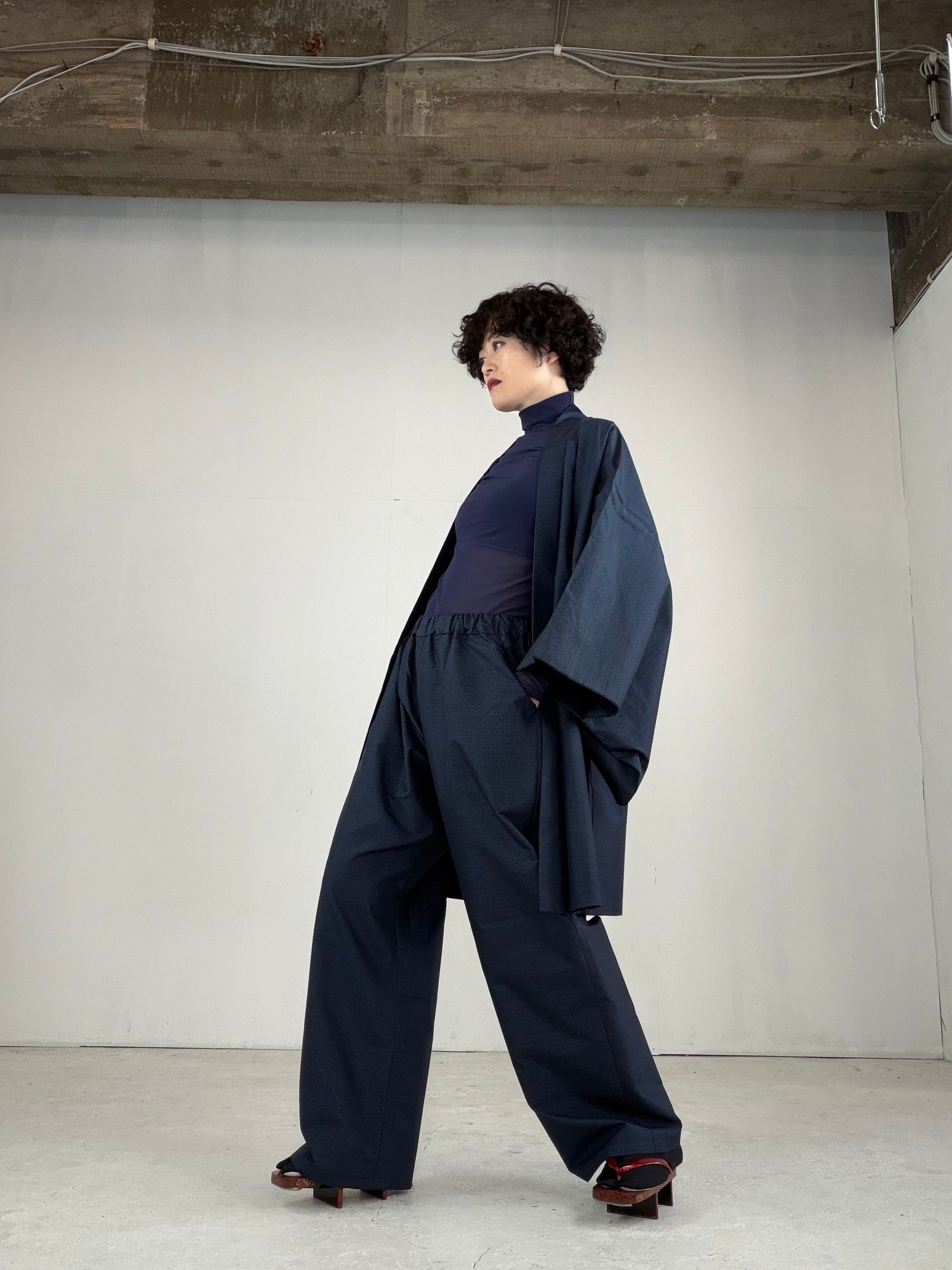 Oshima Tsumugi HAORI and KIMONO elastic waist pants upcycled from Japanese kimono" ASB008"