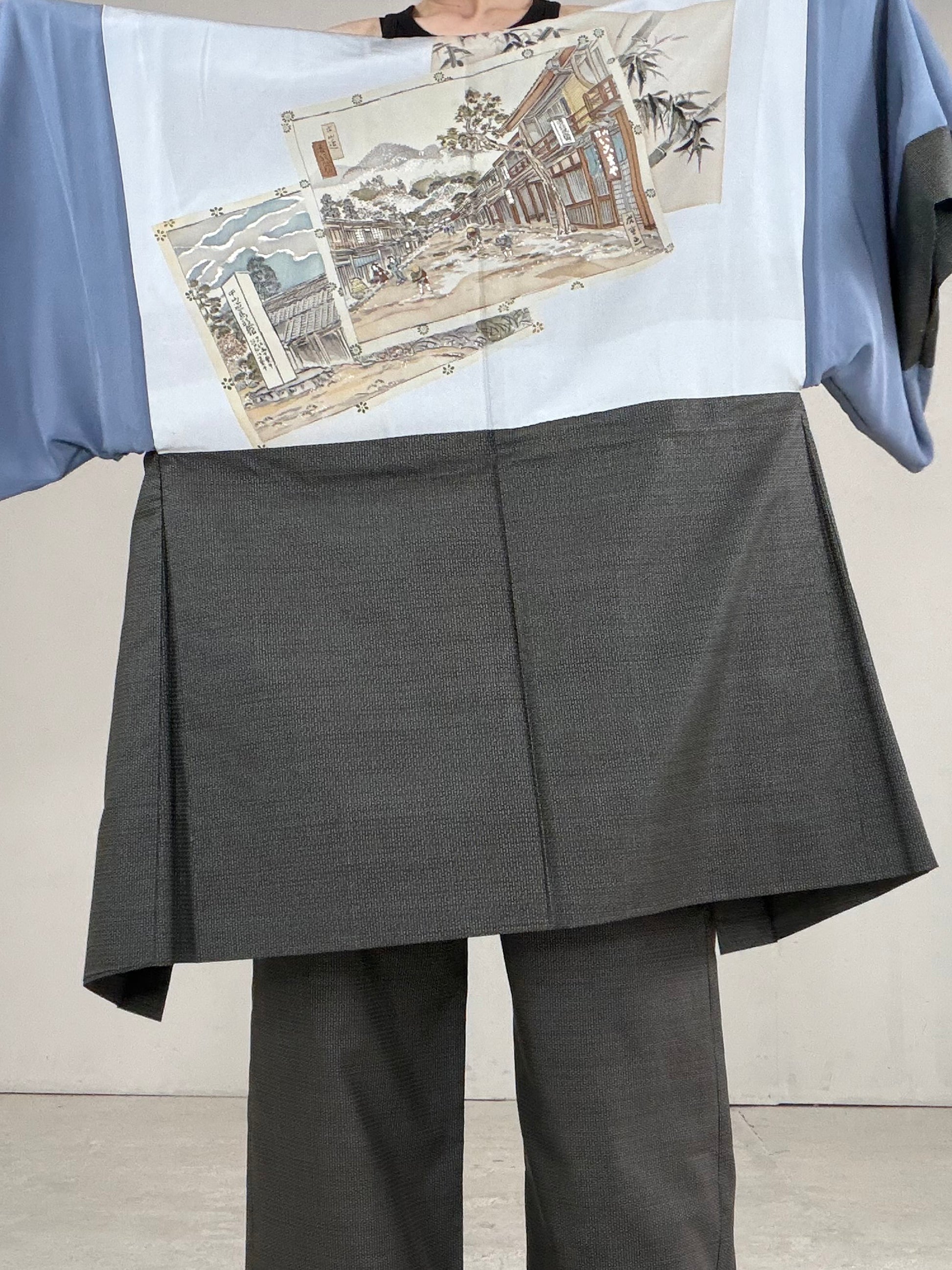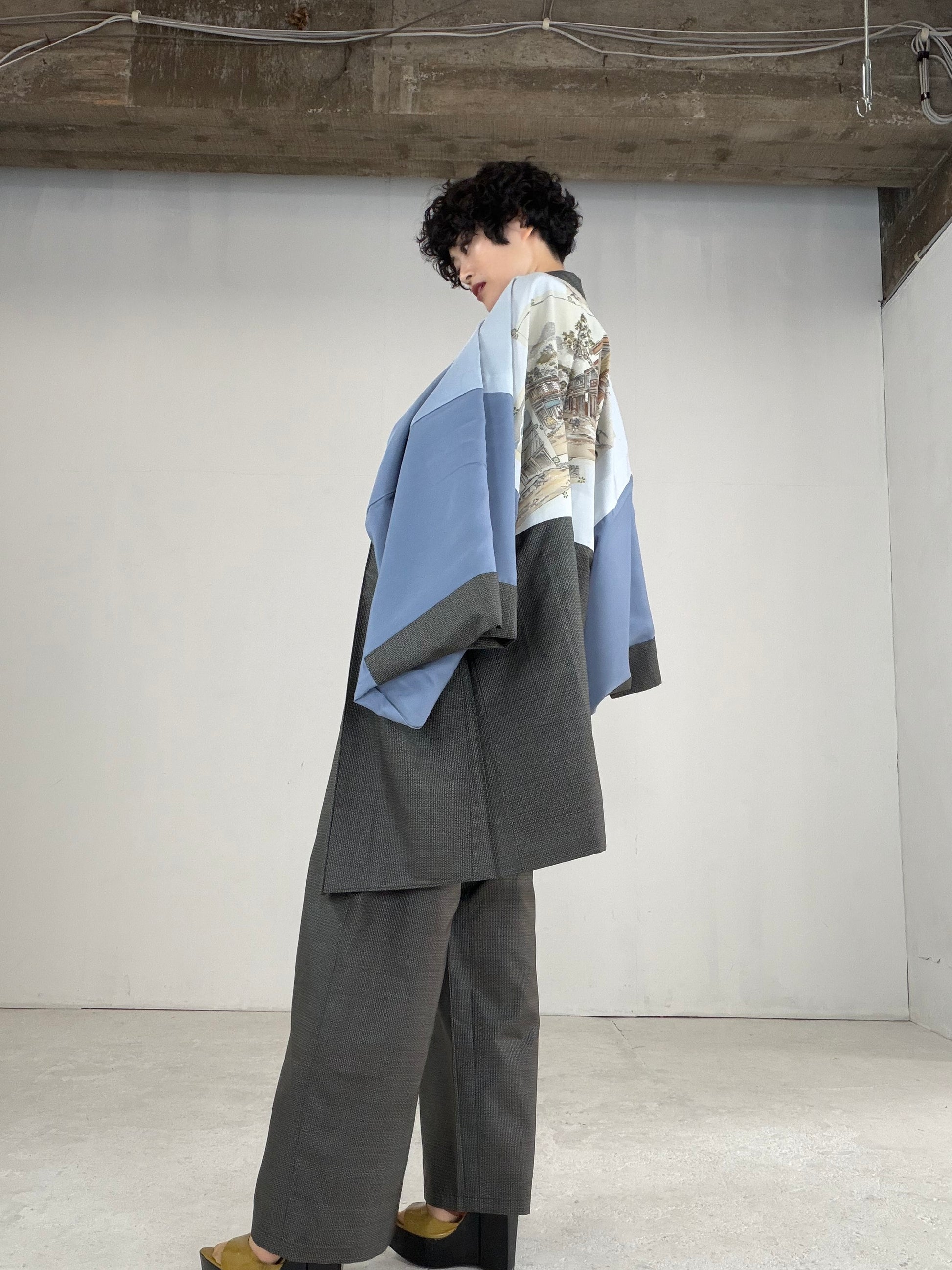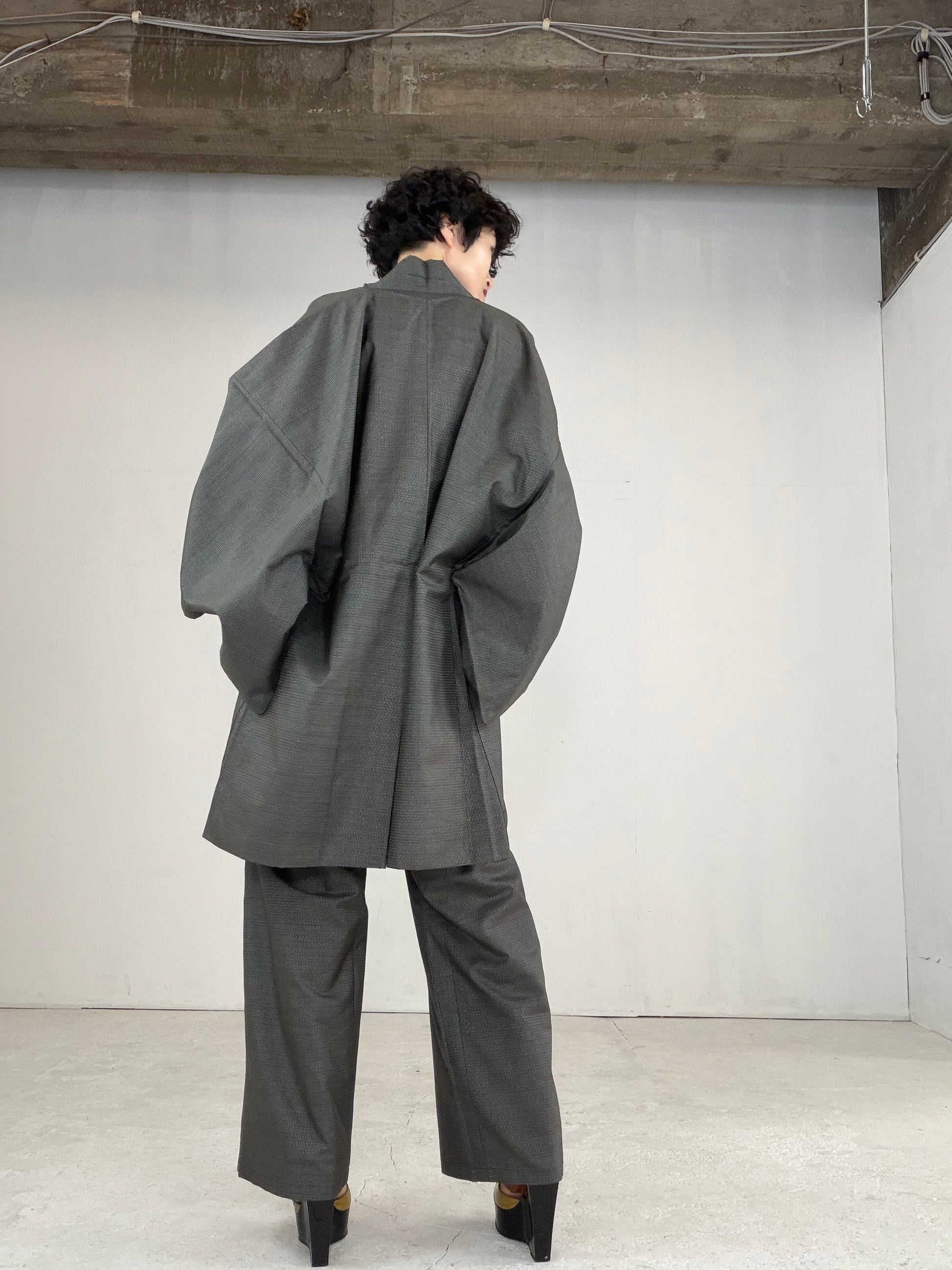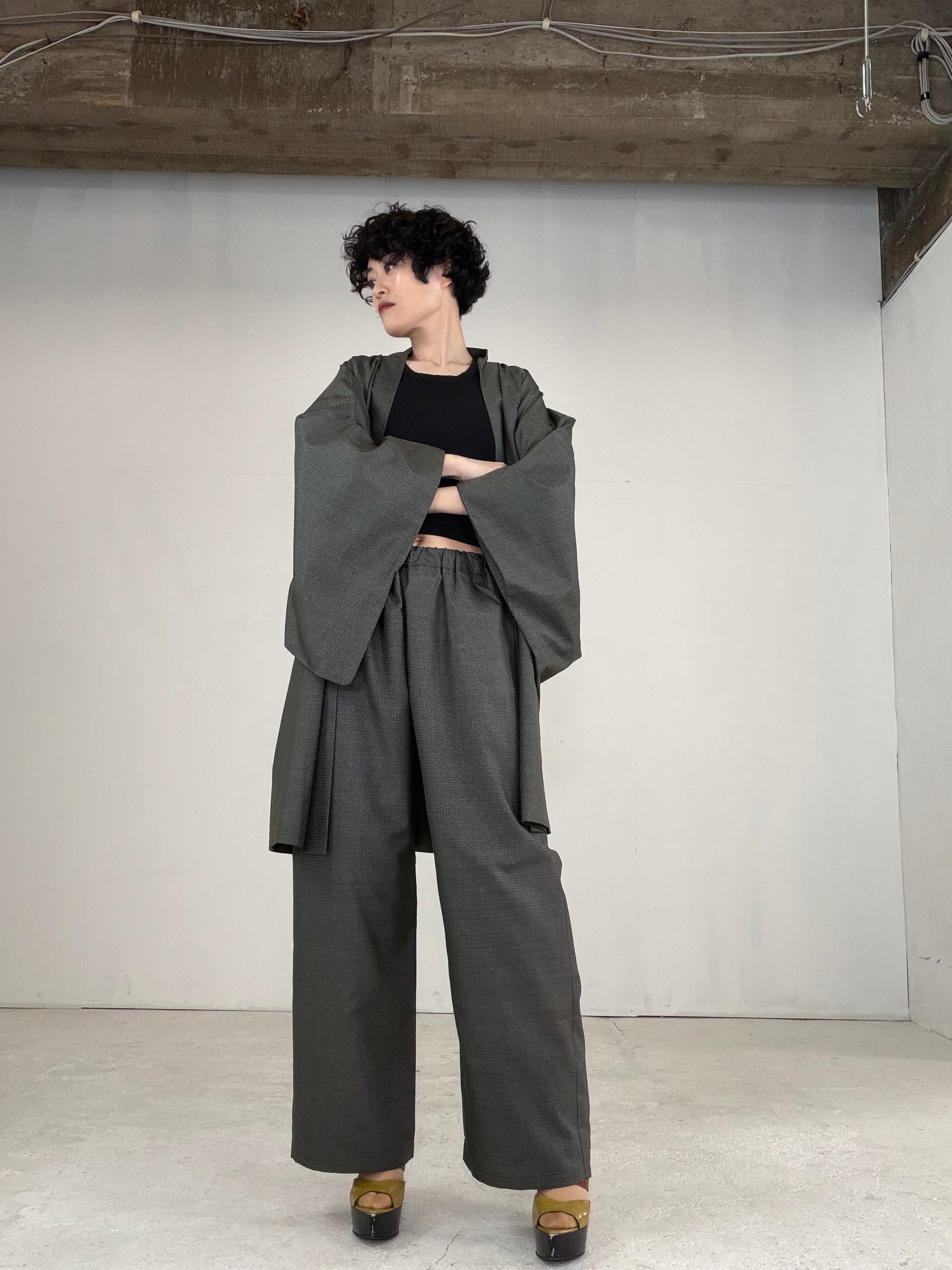 Oshima Tsumugi HAORI and KIMONO elastic waist pants upcycled from Japanese kimono" ASB007"