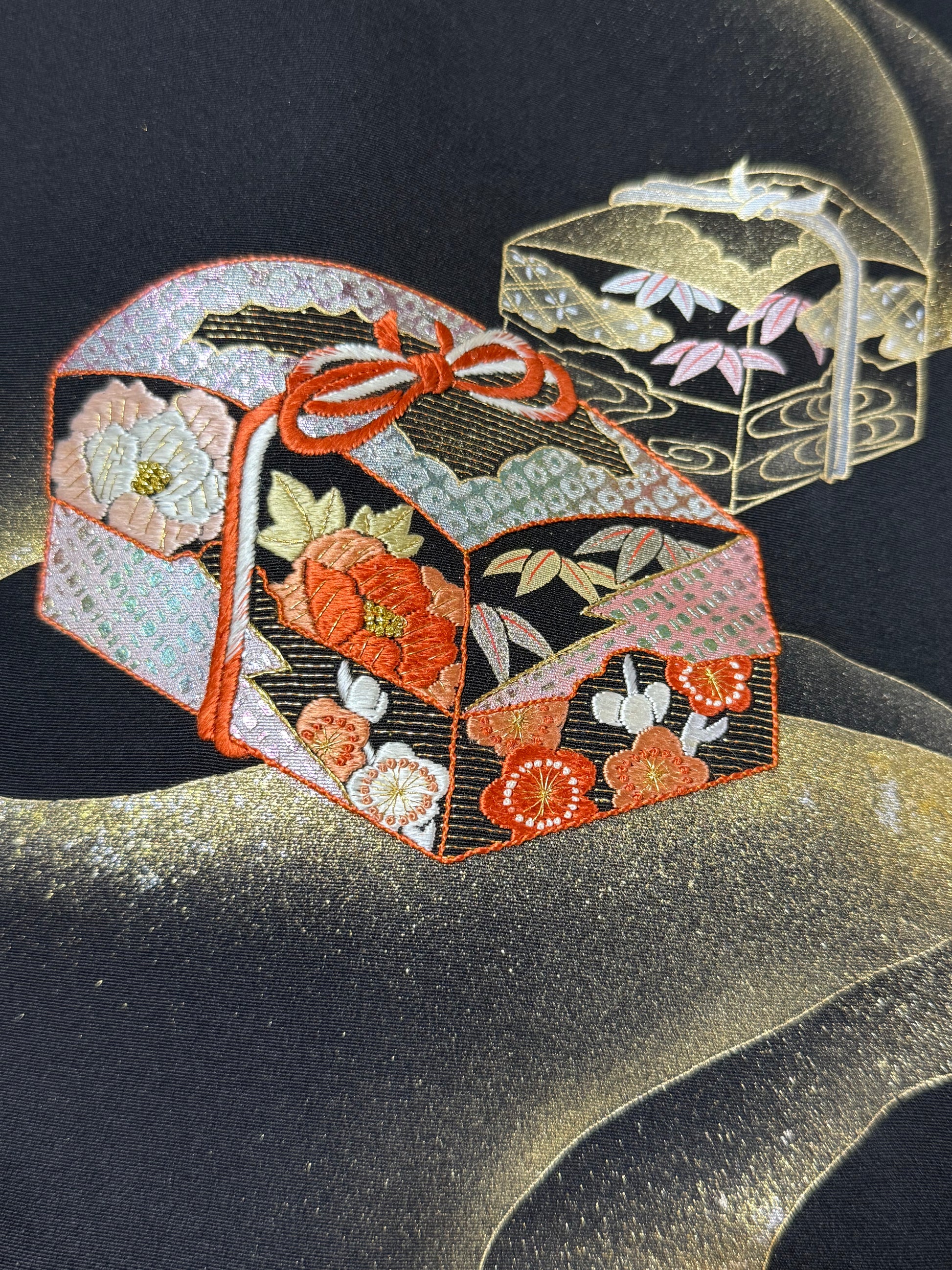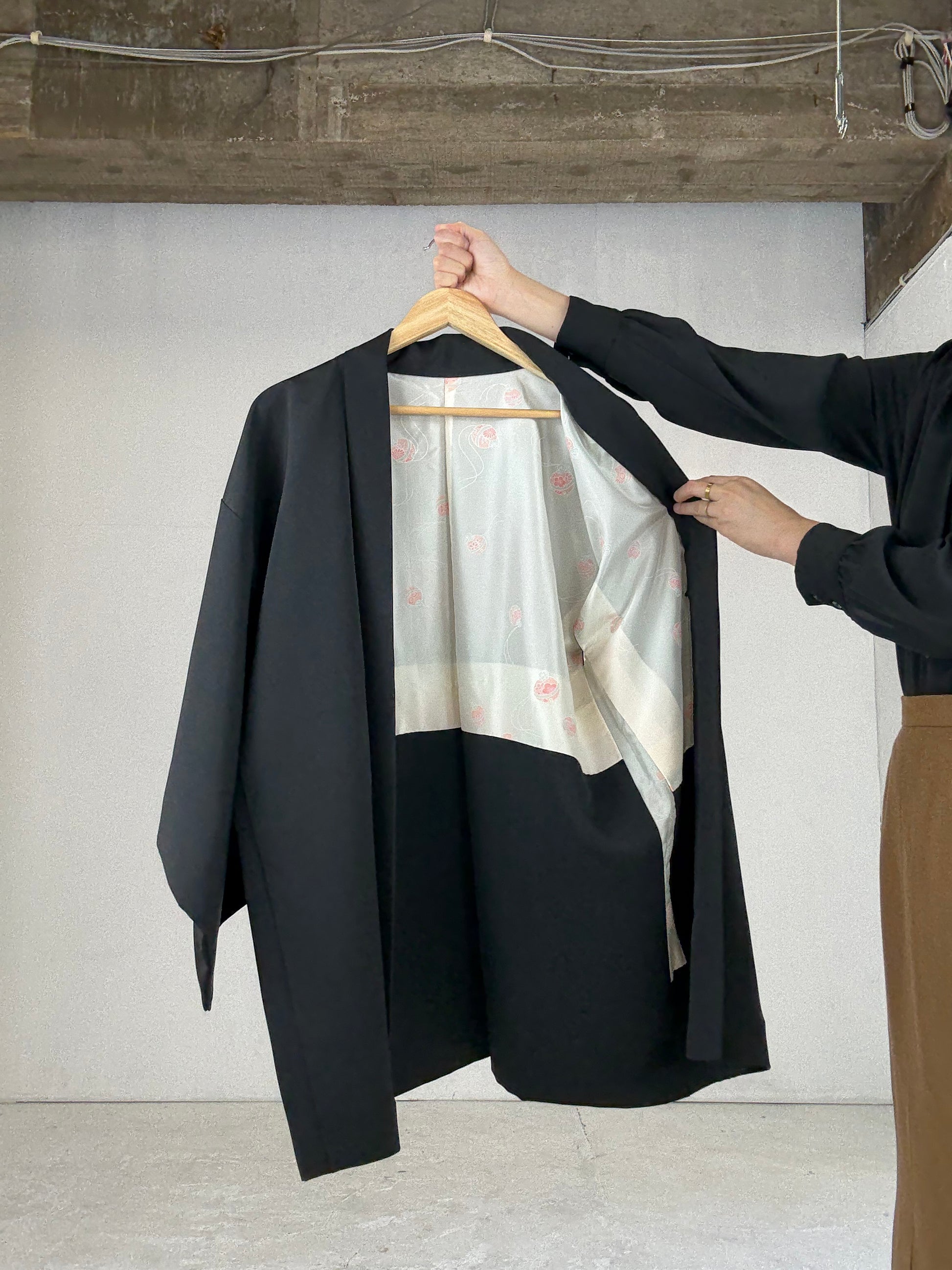 VINTAGE BLACK HAORI "fubako, embroidery"