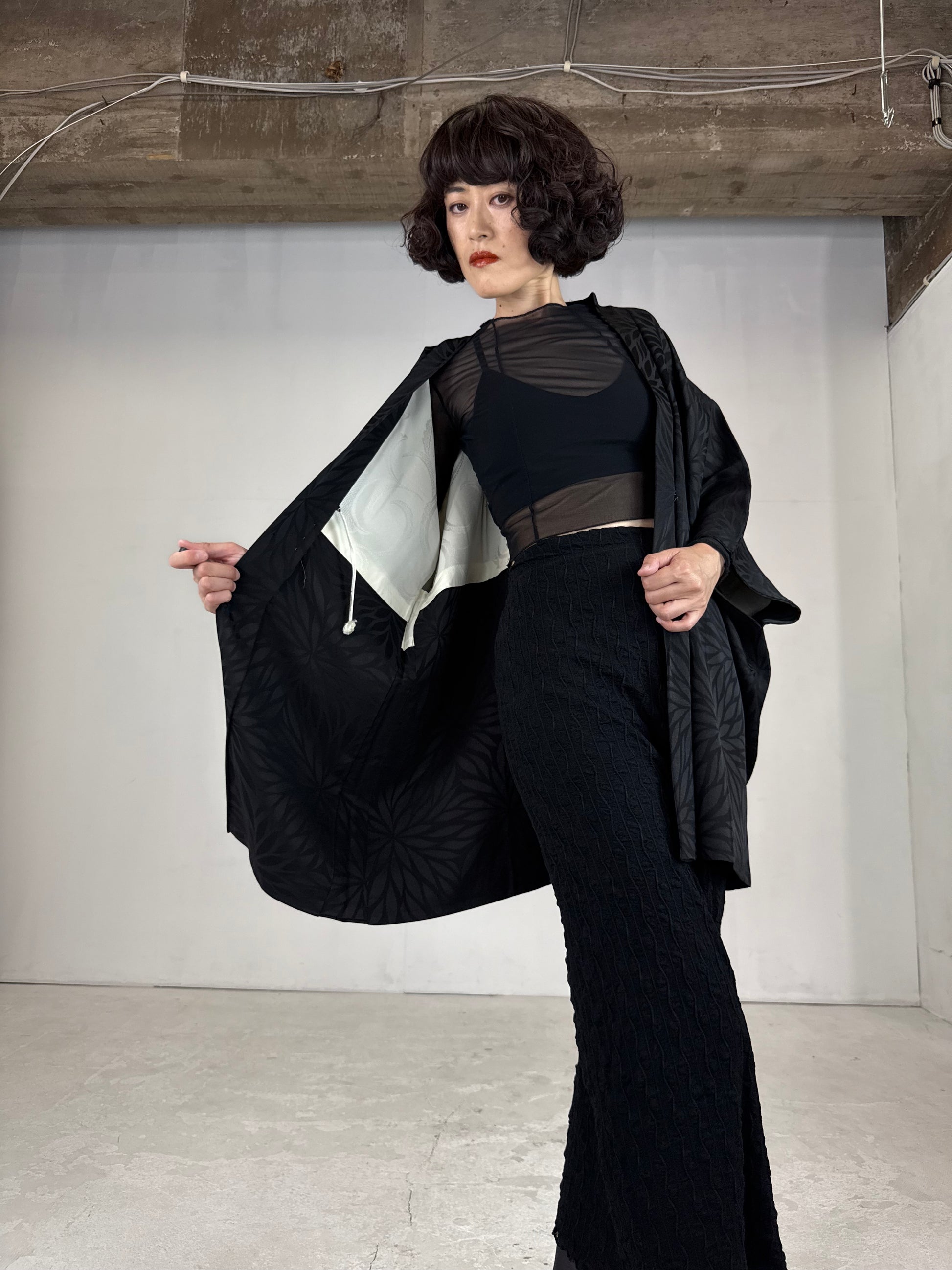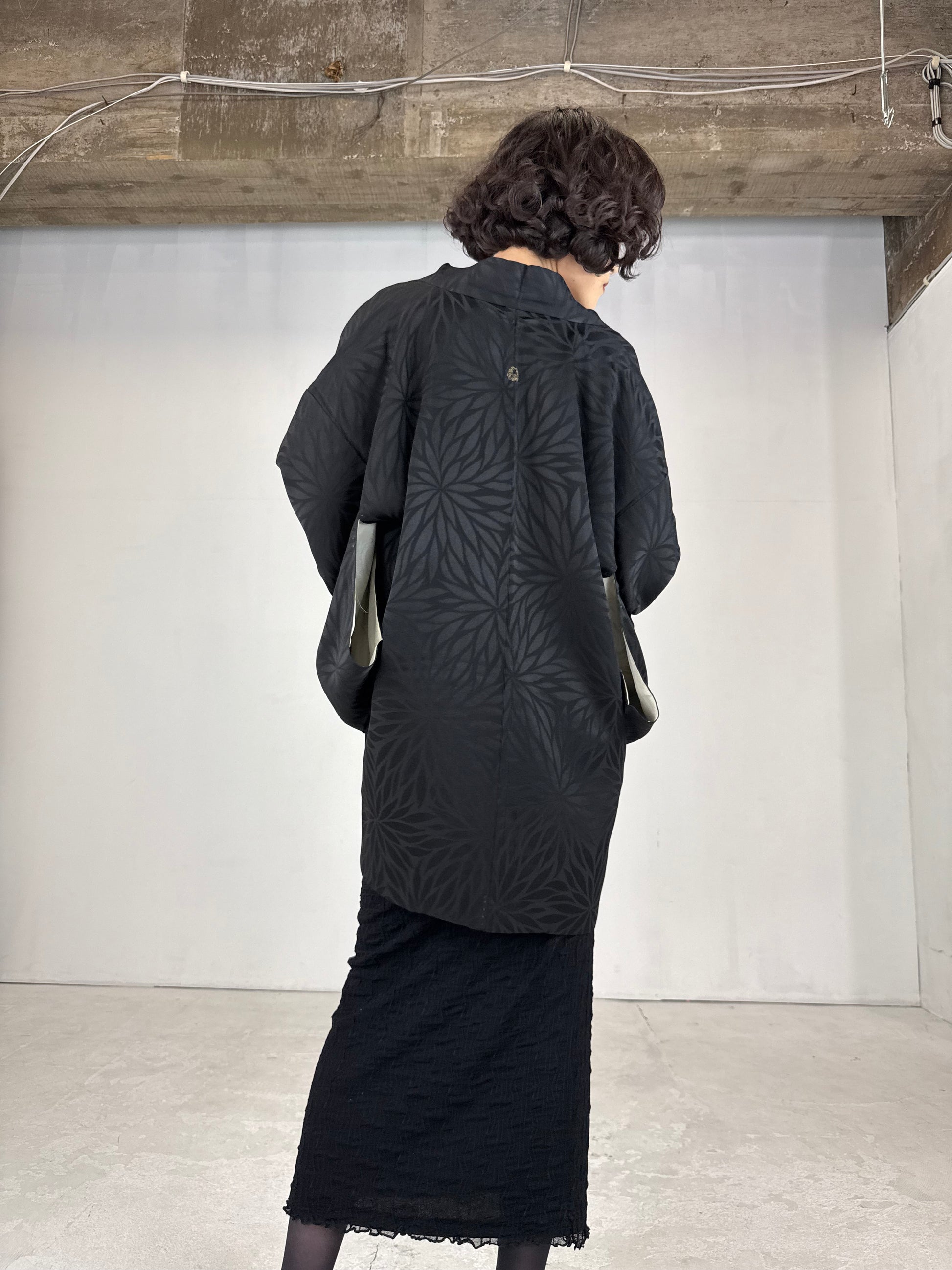 VINTAGE BLACK HAORI "ground pattern, dynamic kiku"