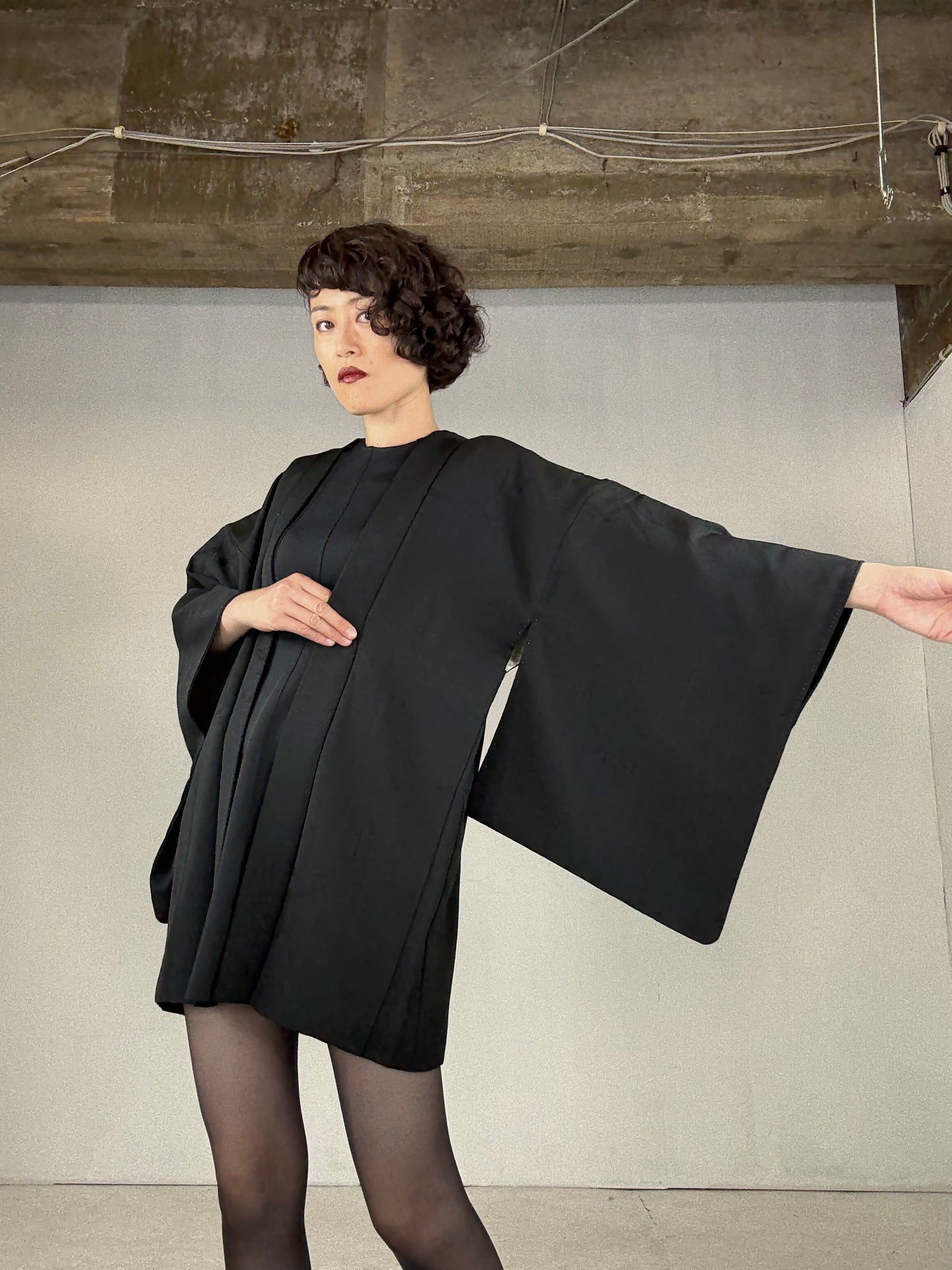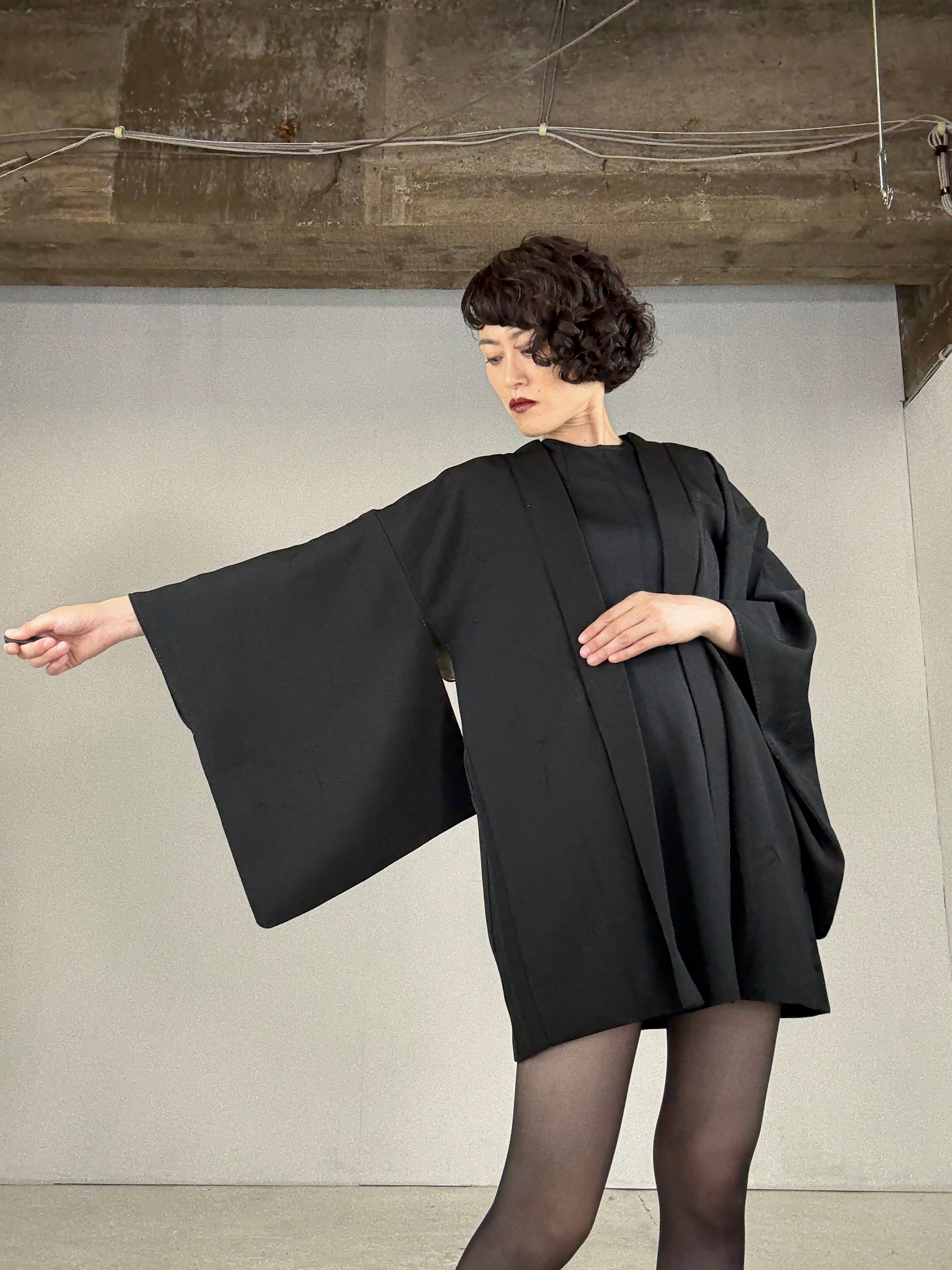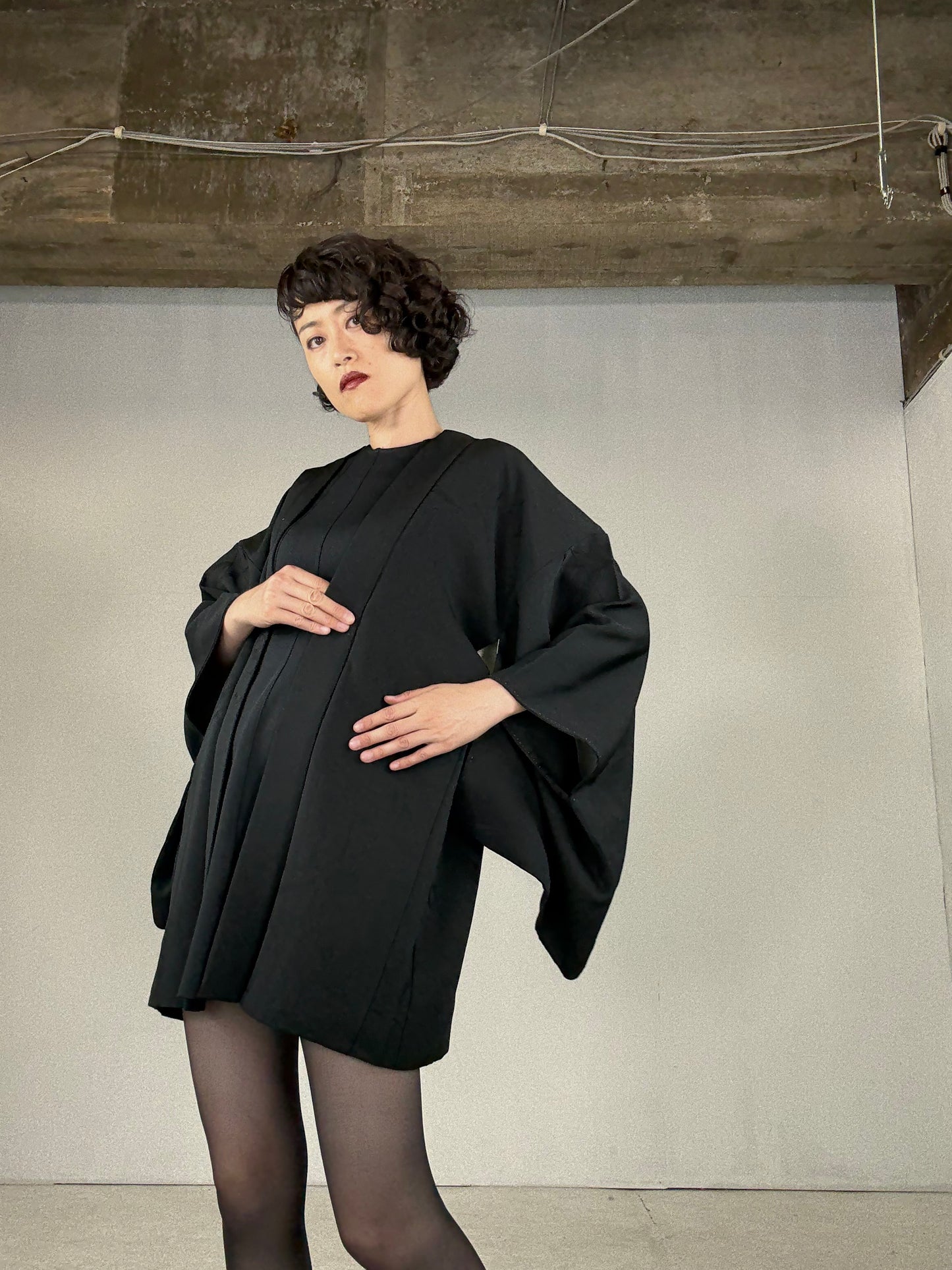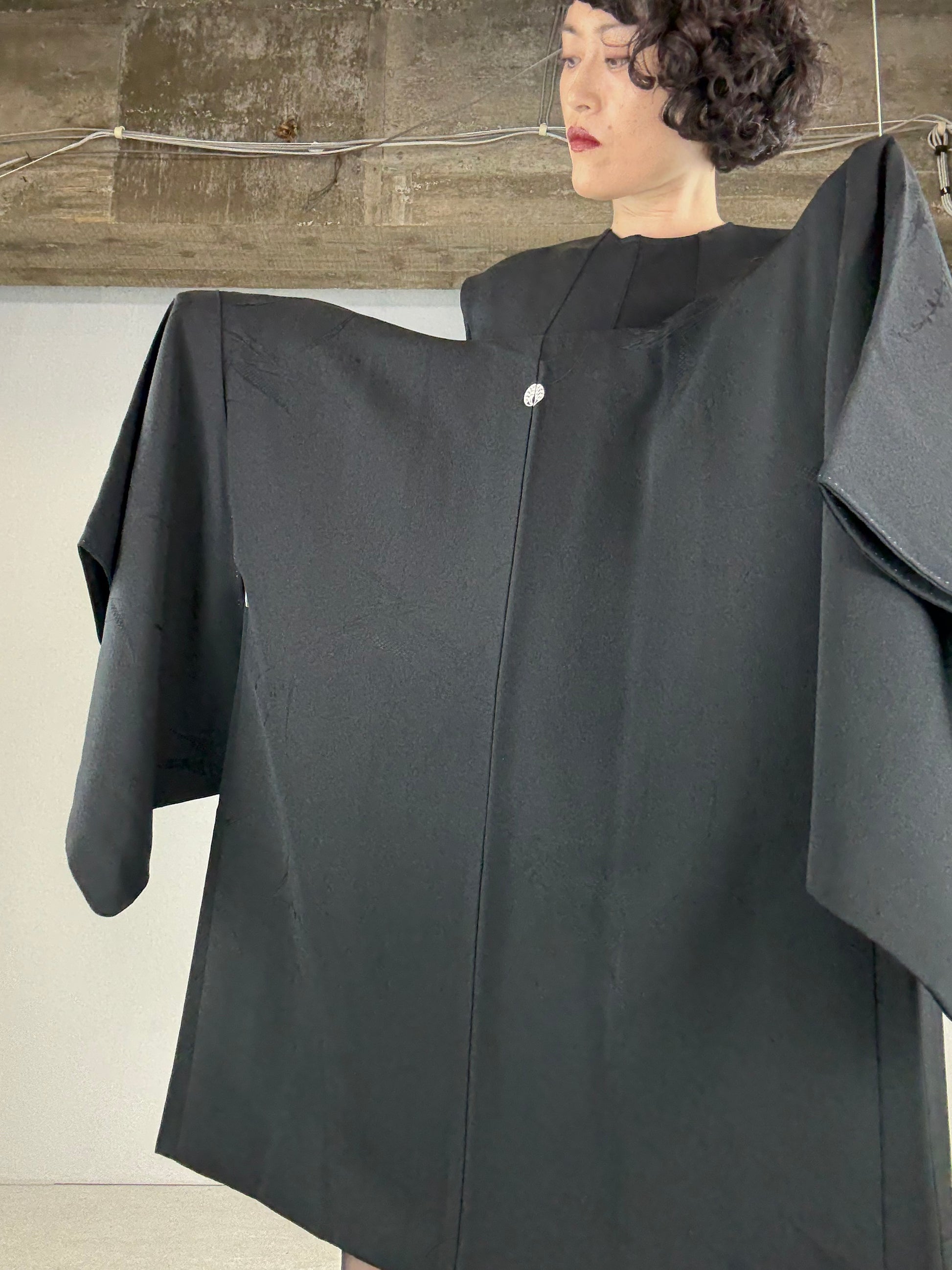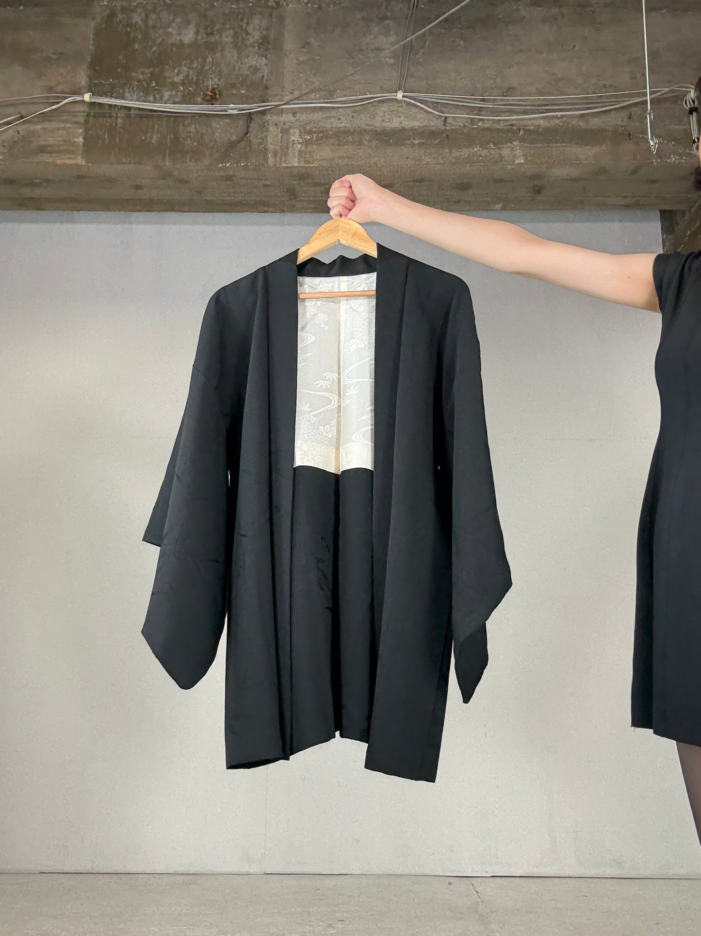 VINTAGE BLACK HAORI "ground pattern, sasa"