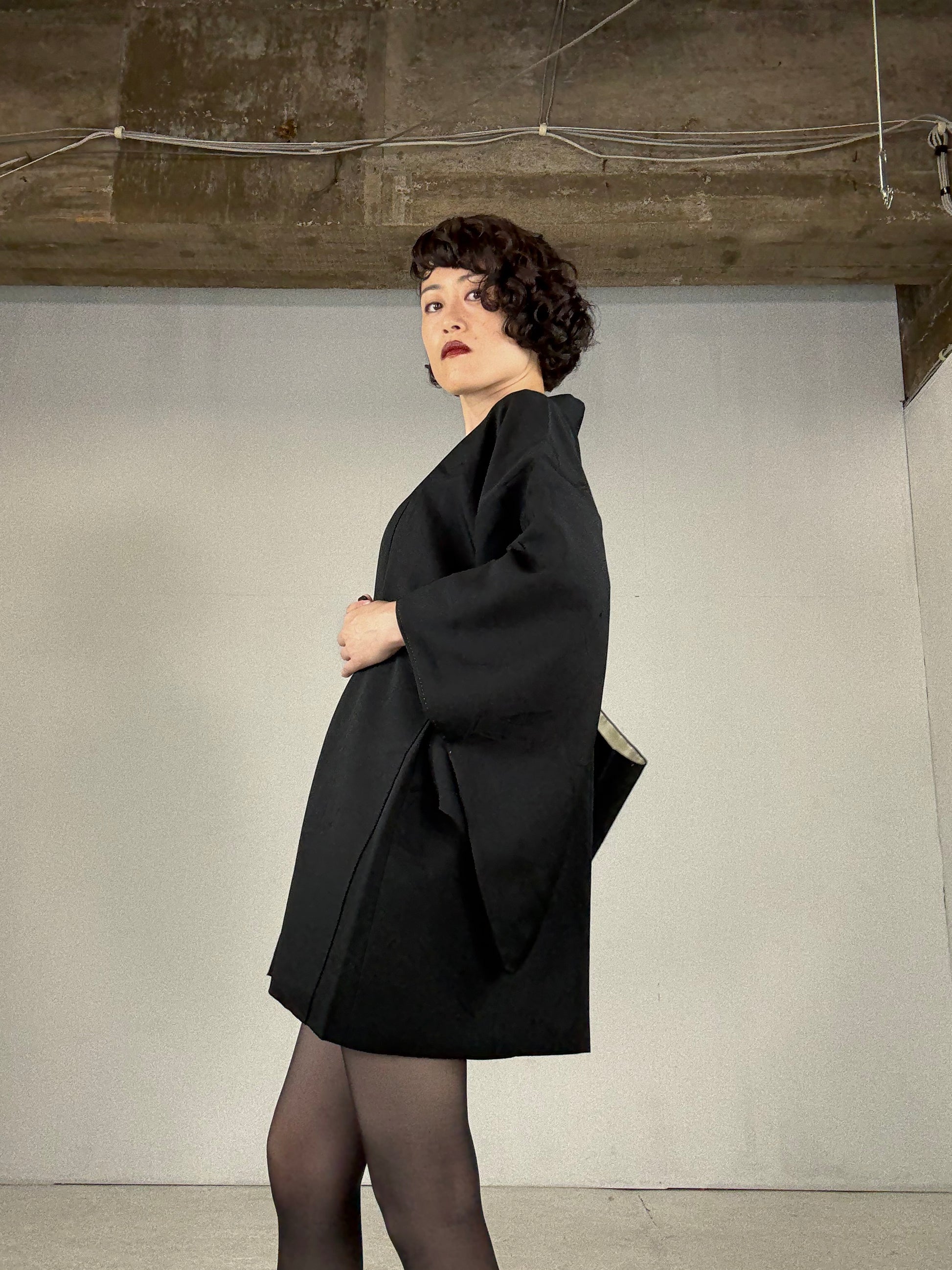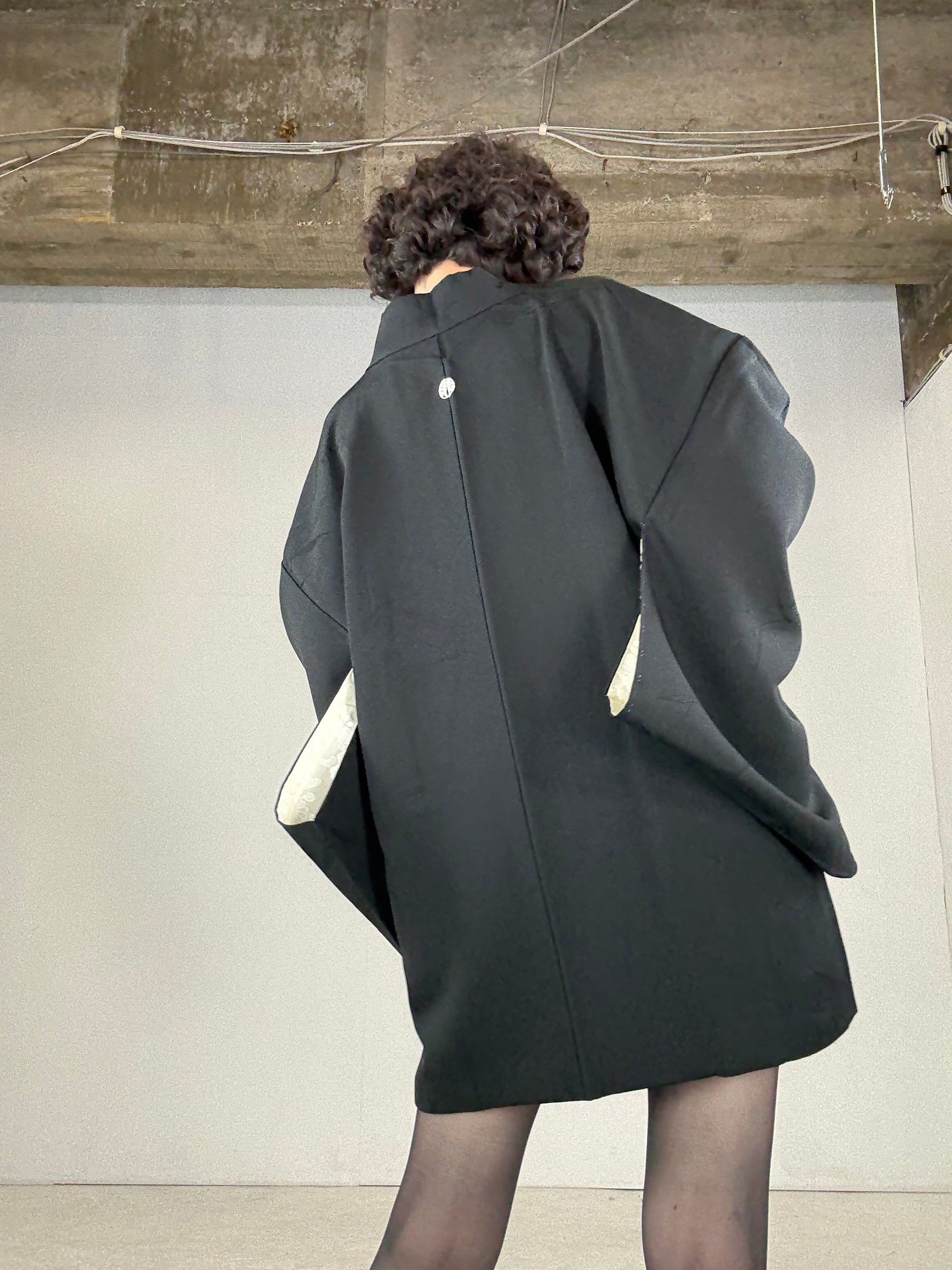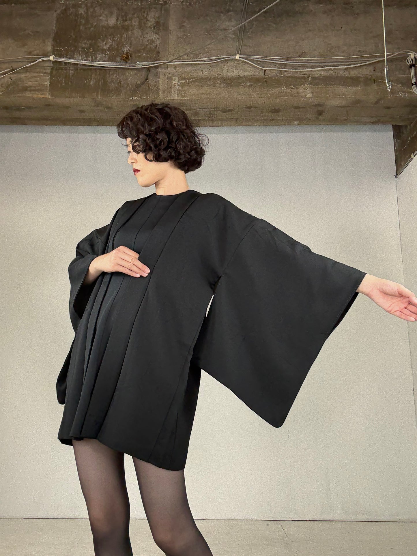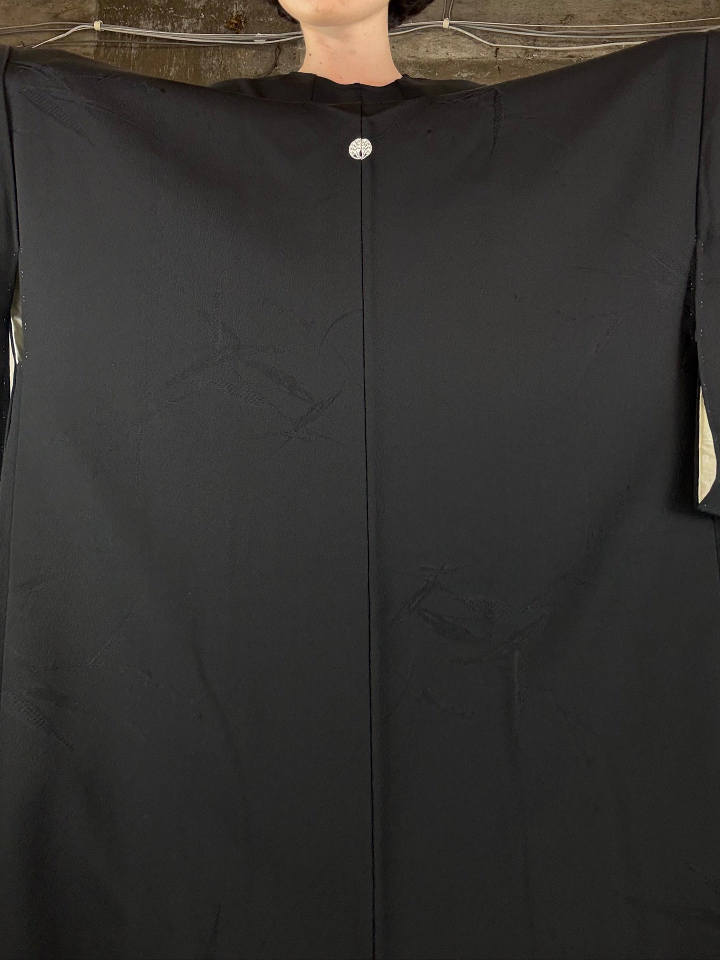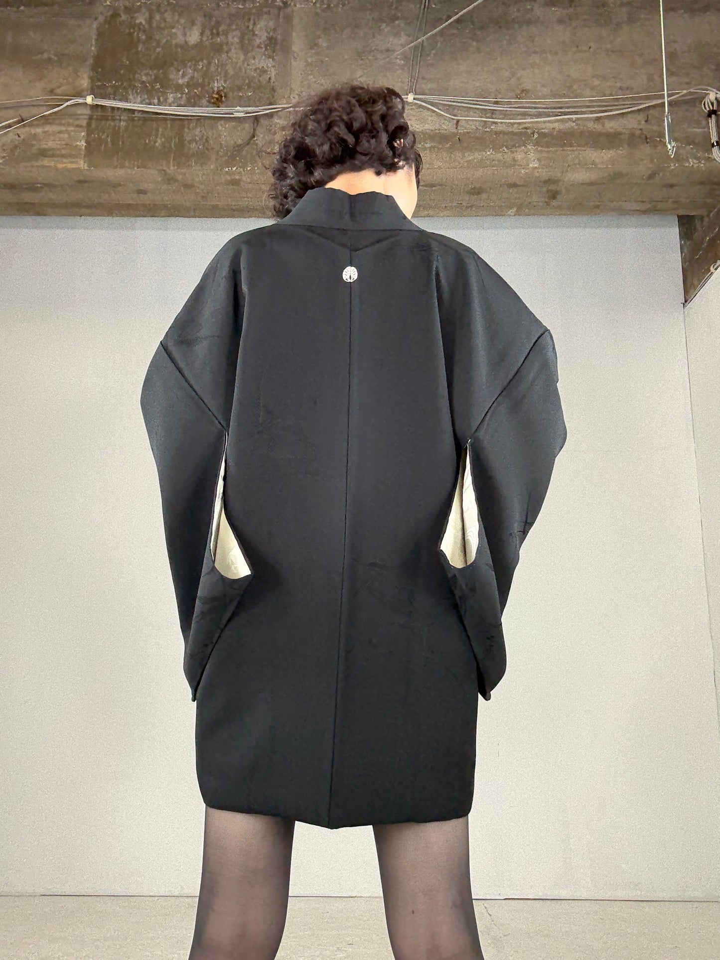 VINTAGE BLACK HAORI "ground pattern, sasa"