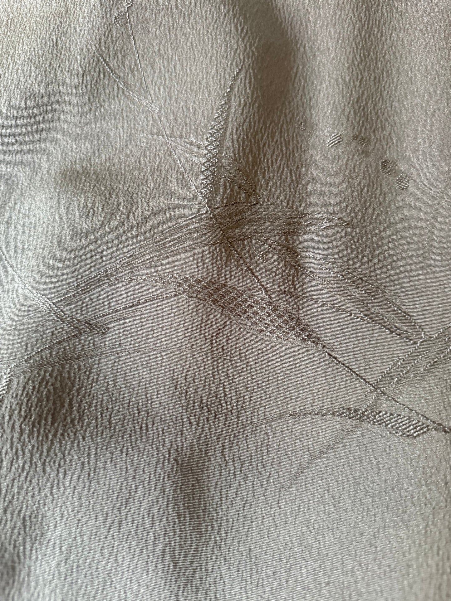 As a result, determining the exact composition of vintage fabrics is not always possible. Based on my experience as a licensed antique art dealer and upcycling artist, I examine the fabric using visual texture, burn tests, and the known age of the kimono to make an educated guess.