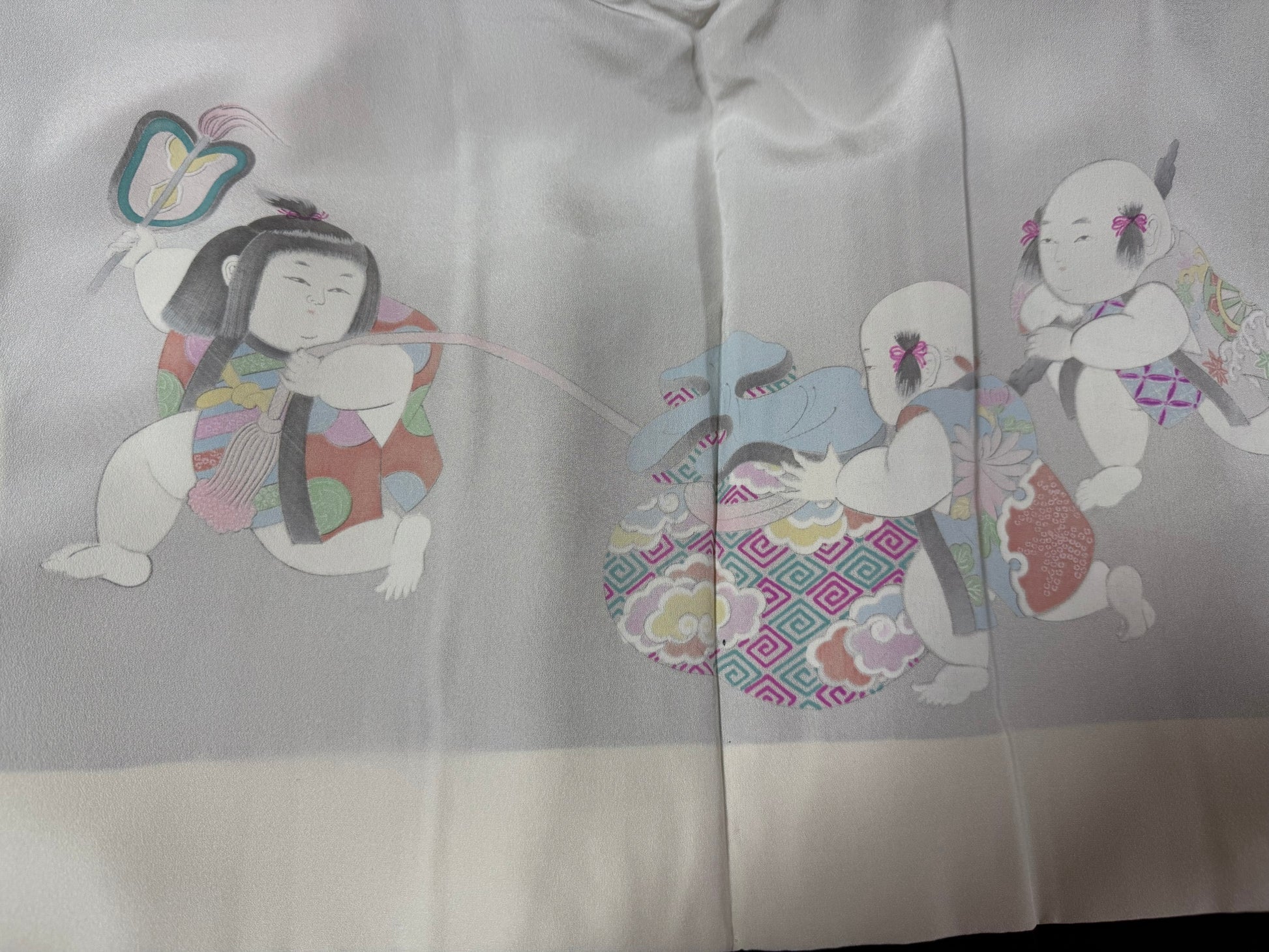 Many kimono are hand-sewn by specialized Japanese artisans called “wasai-shi”. In rural Japan, it was common during the post-war years for farmers to sew kimono during winter months for clients in cities like Kyoto or Tokyo.