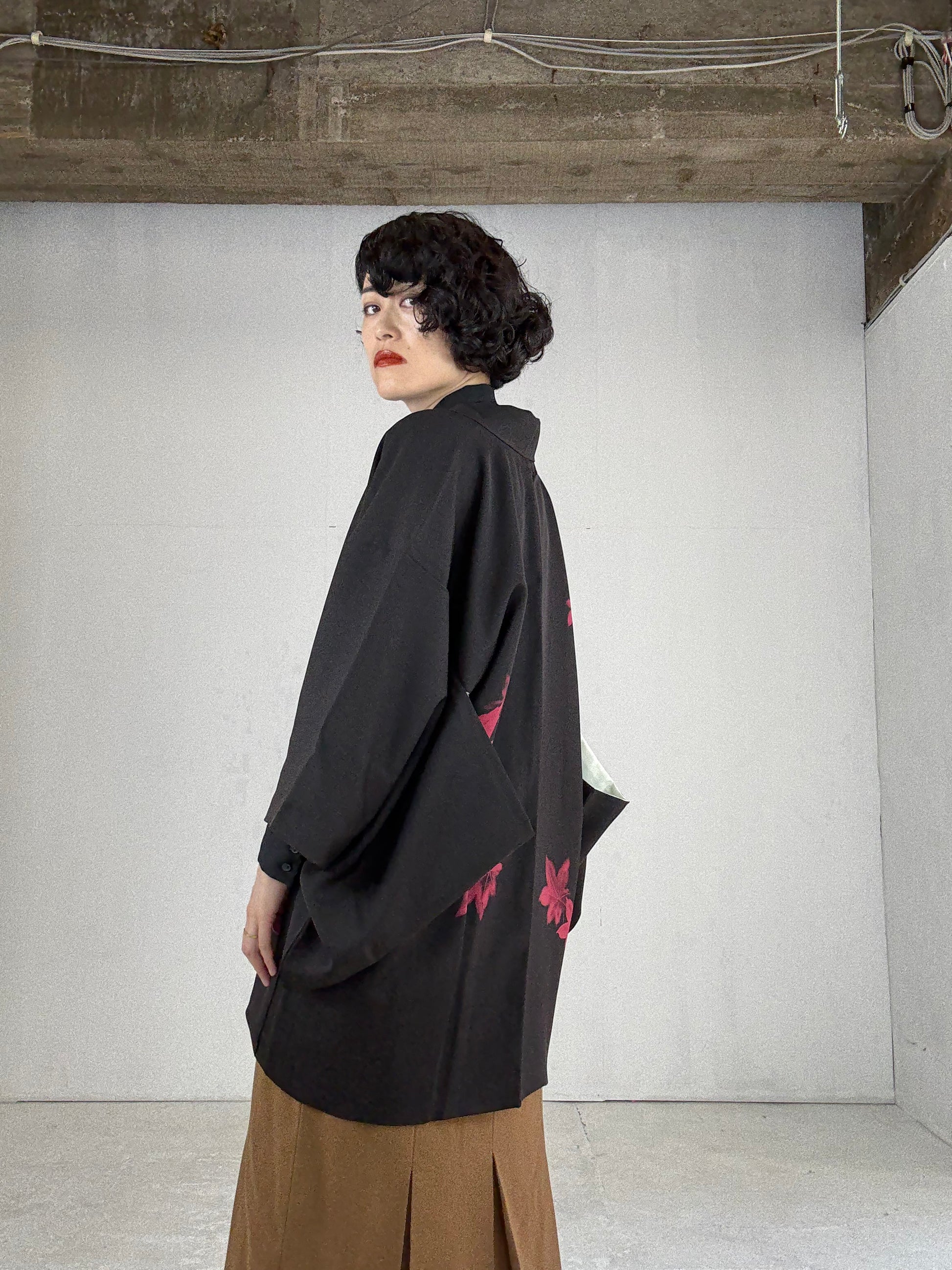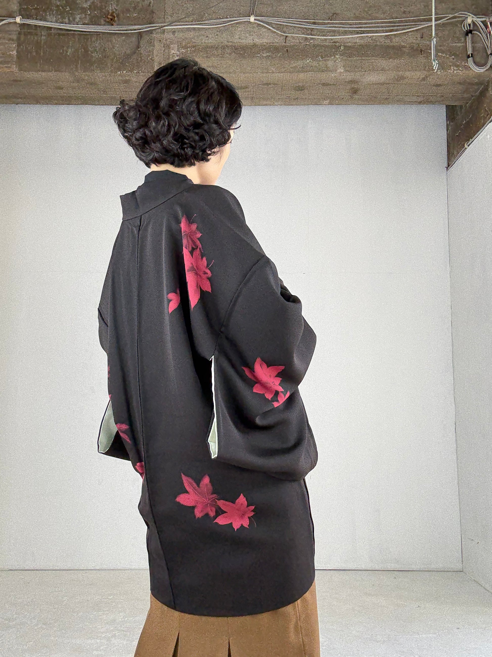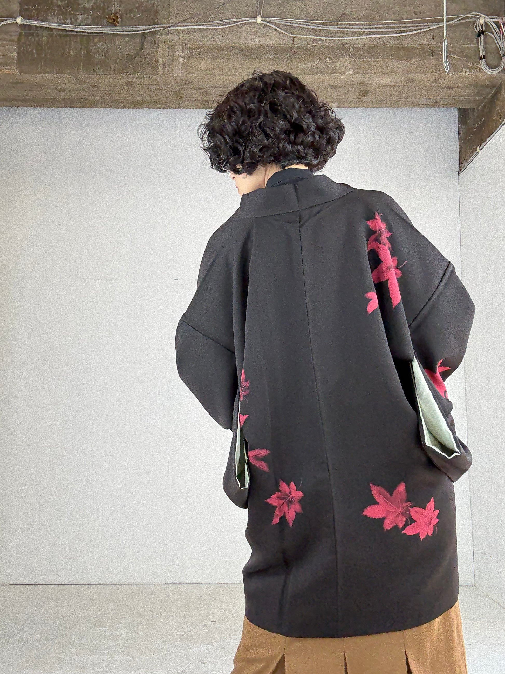 VINTAGE BLACK HAORI "red flower"