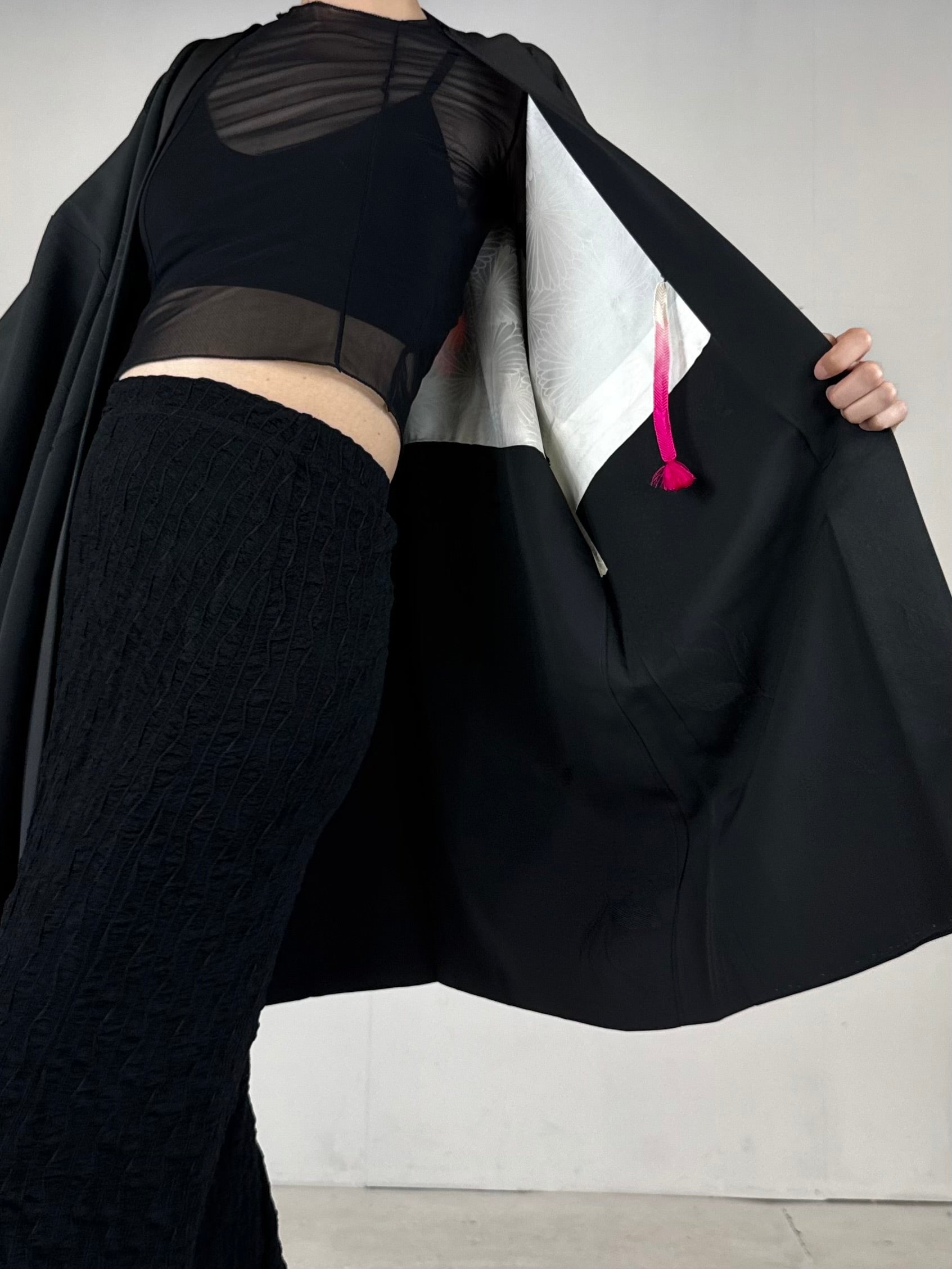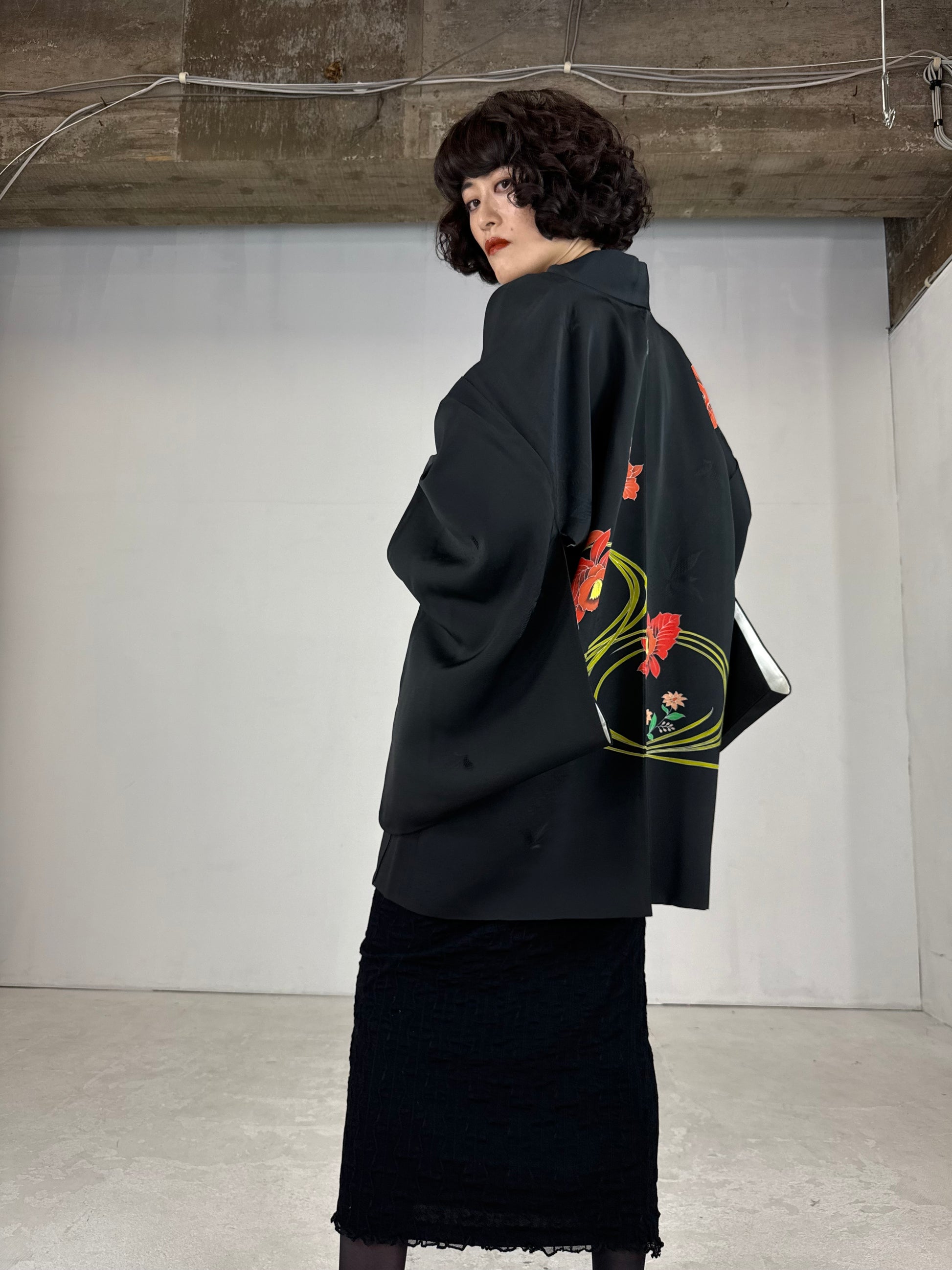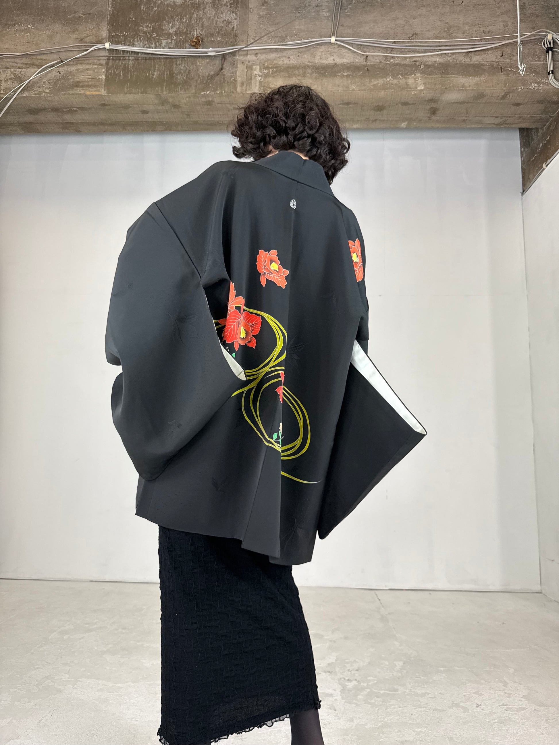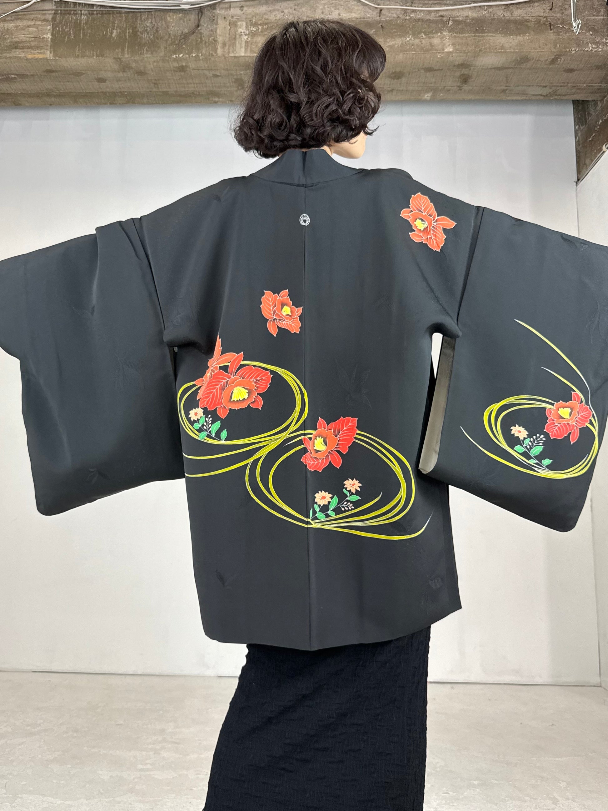 VINTAGE BLACK HAORI "youbana, showa, kamon"