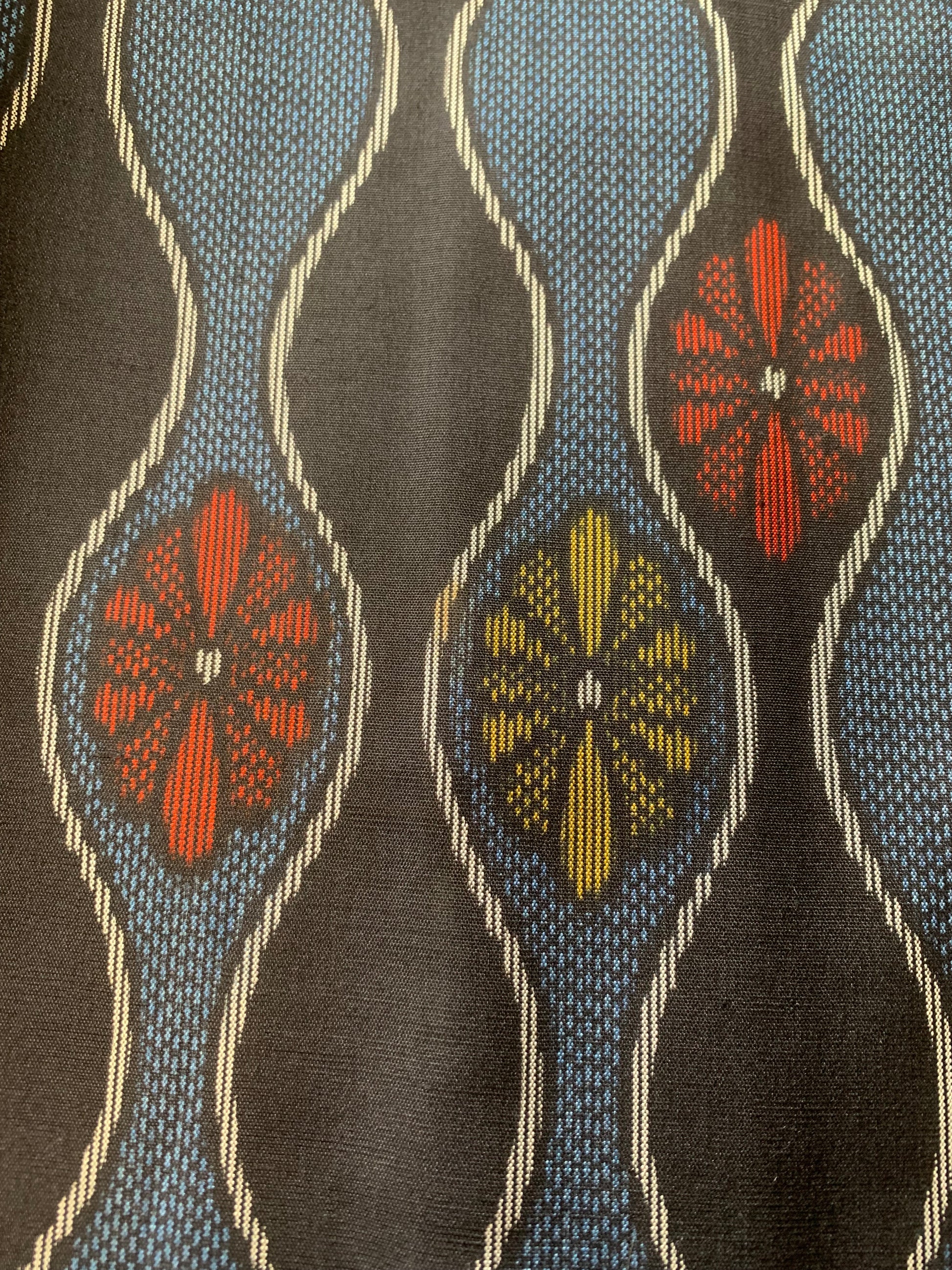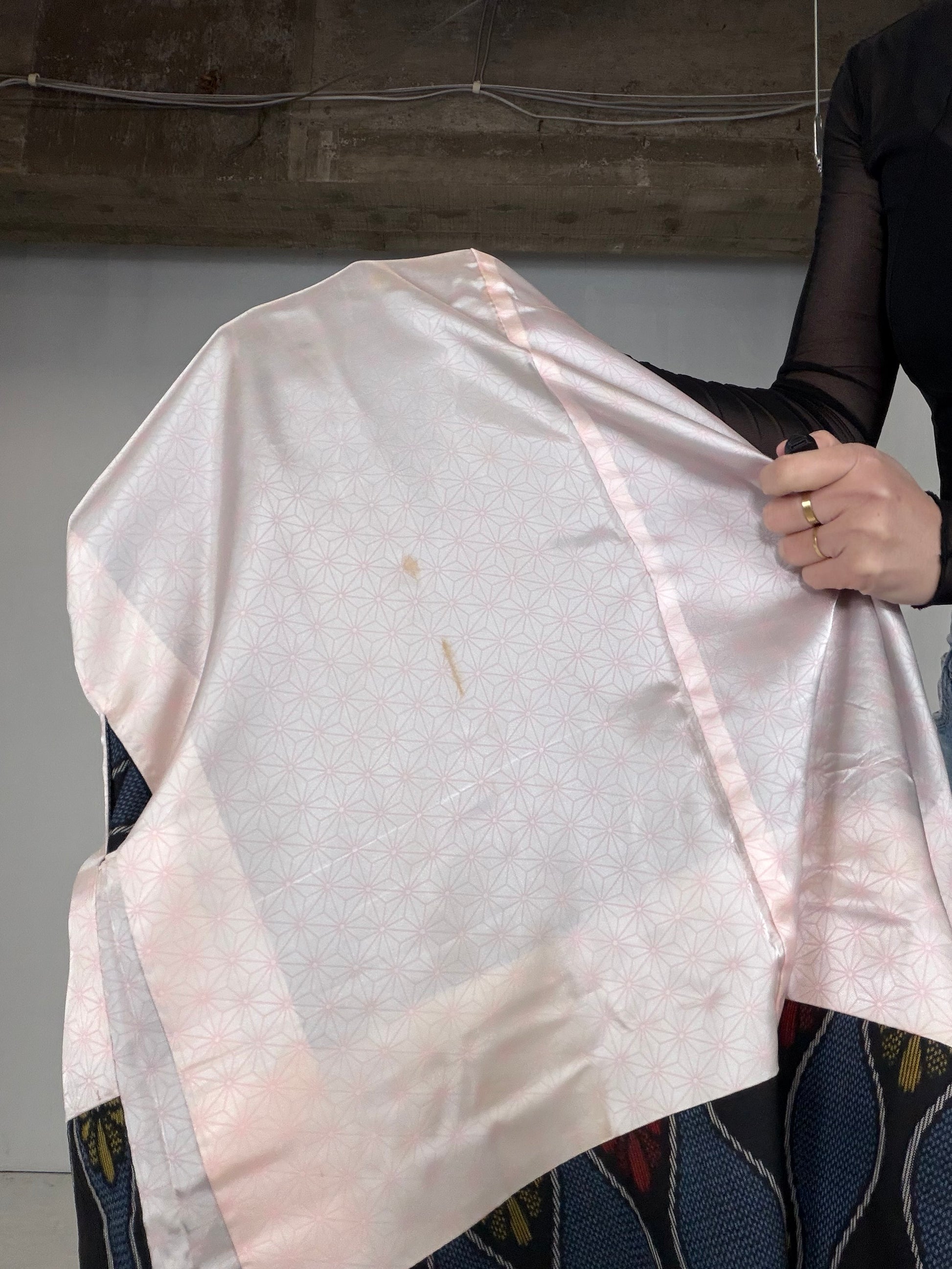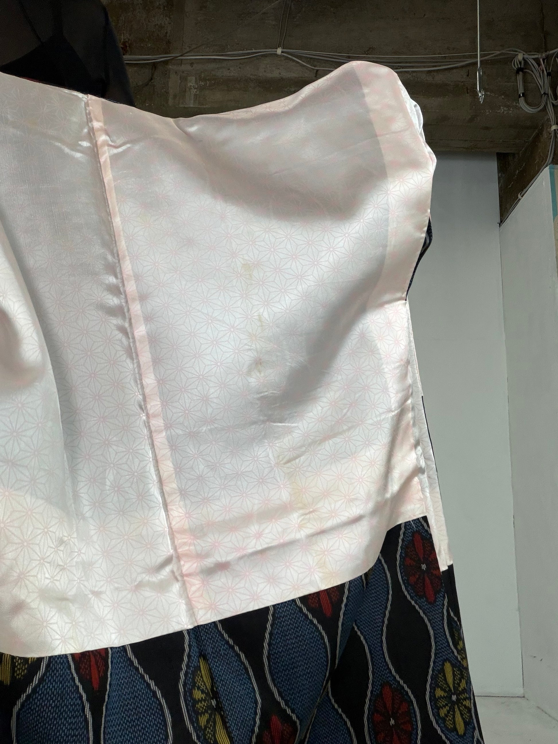 As a result, determining the exact composition of vintage fabrics is not always possible. Based on my experience as a licensed antique art dealer and upcycling artist, I examine the fabric using visual texture, burn tests, and the known age of the kimono to make an educated guess.