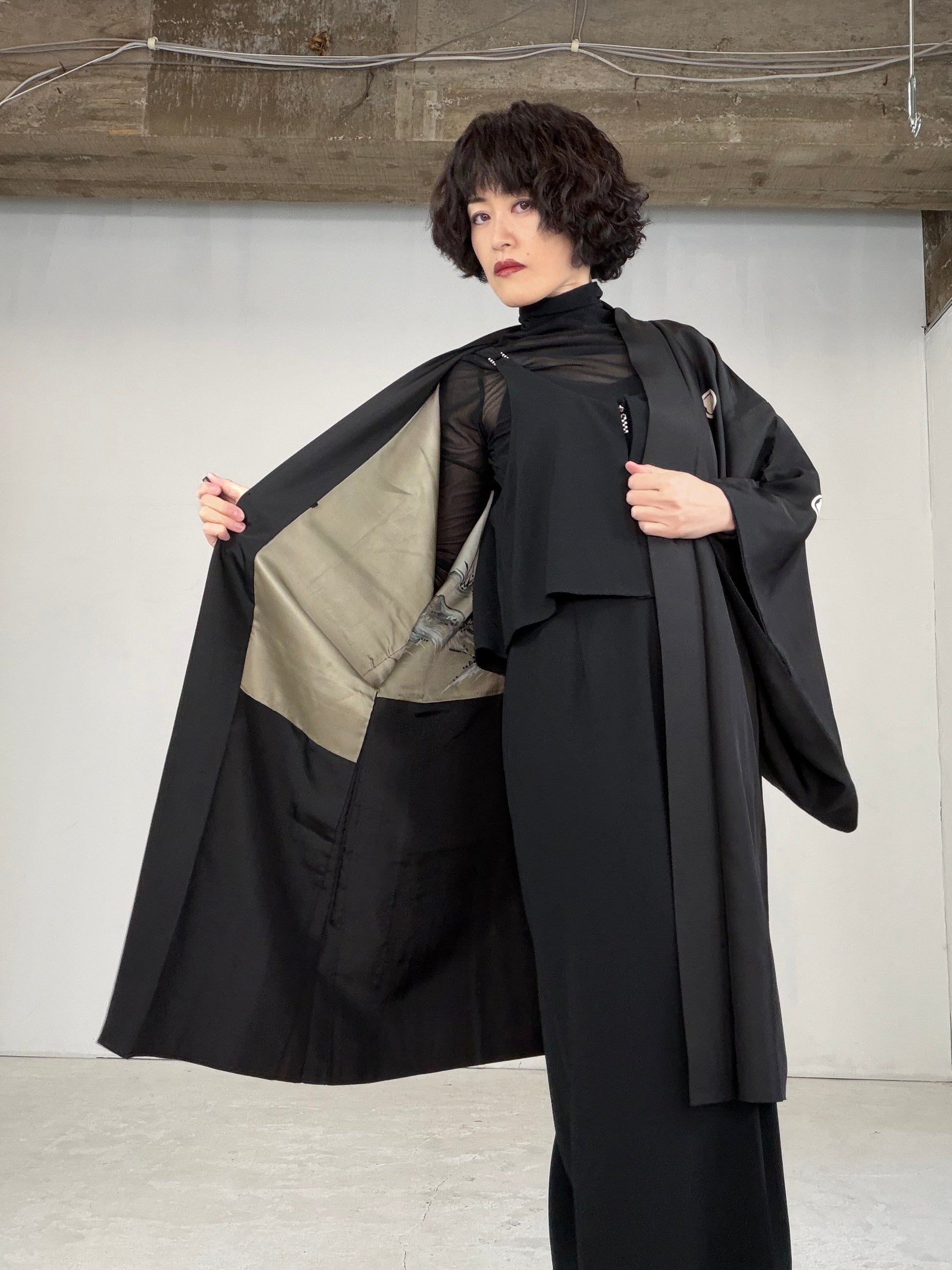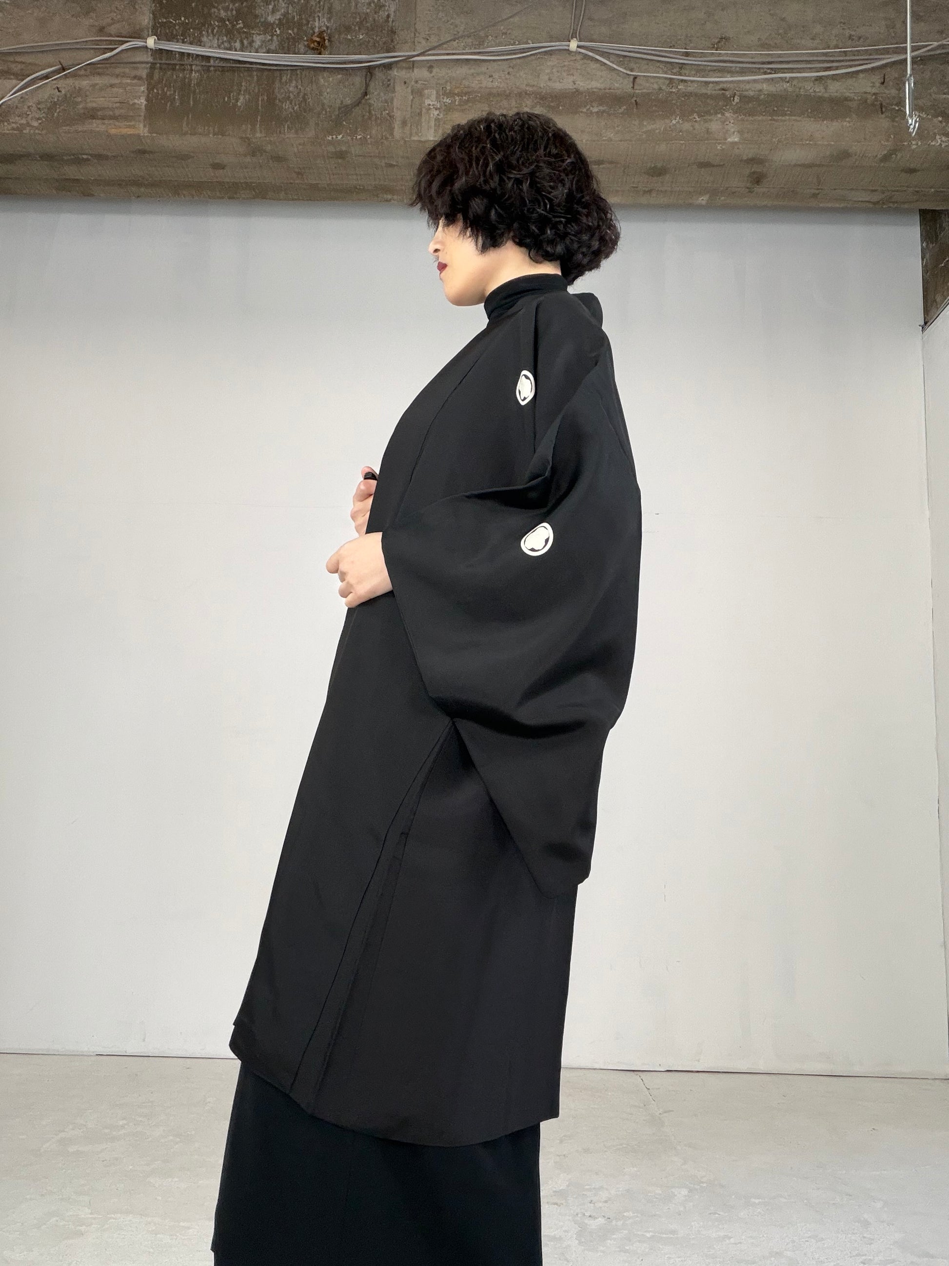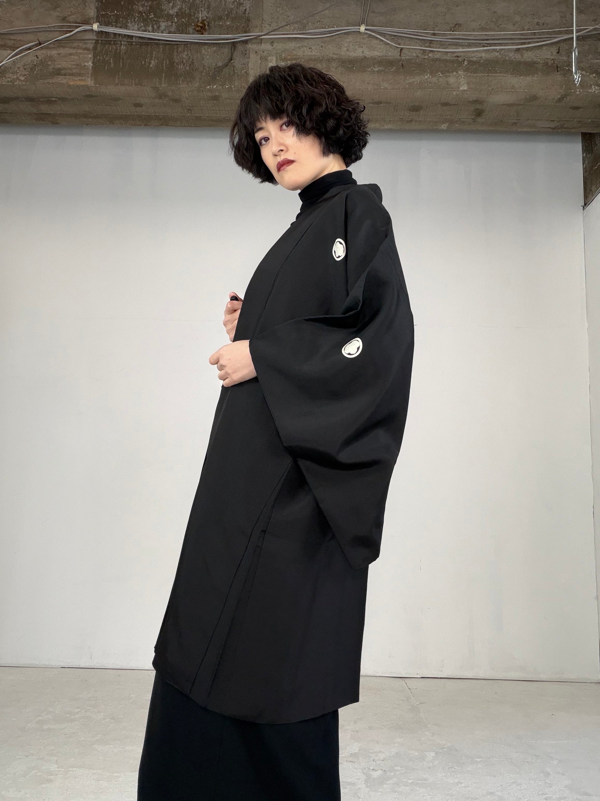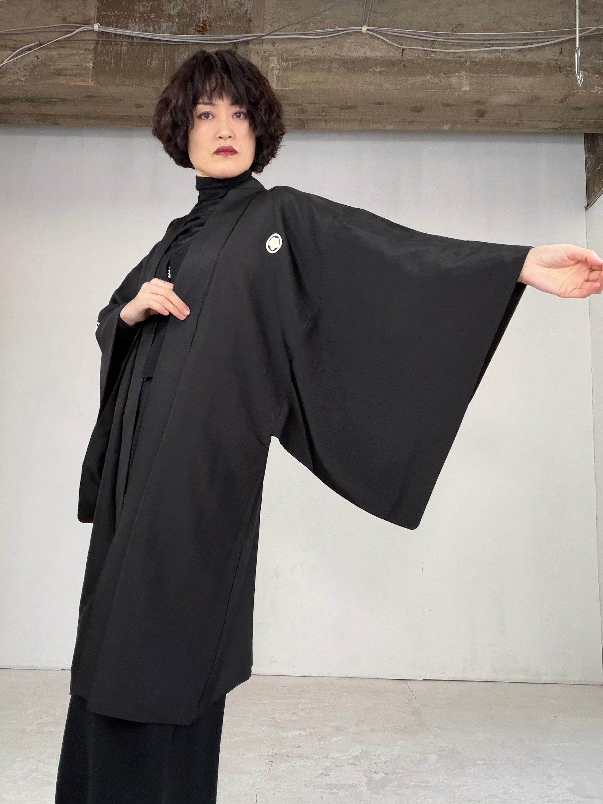 This HAORI is called “KUROMONTSUKI HAORI 黒紋付羽織” in Japan.