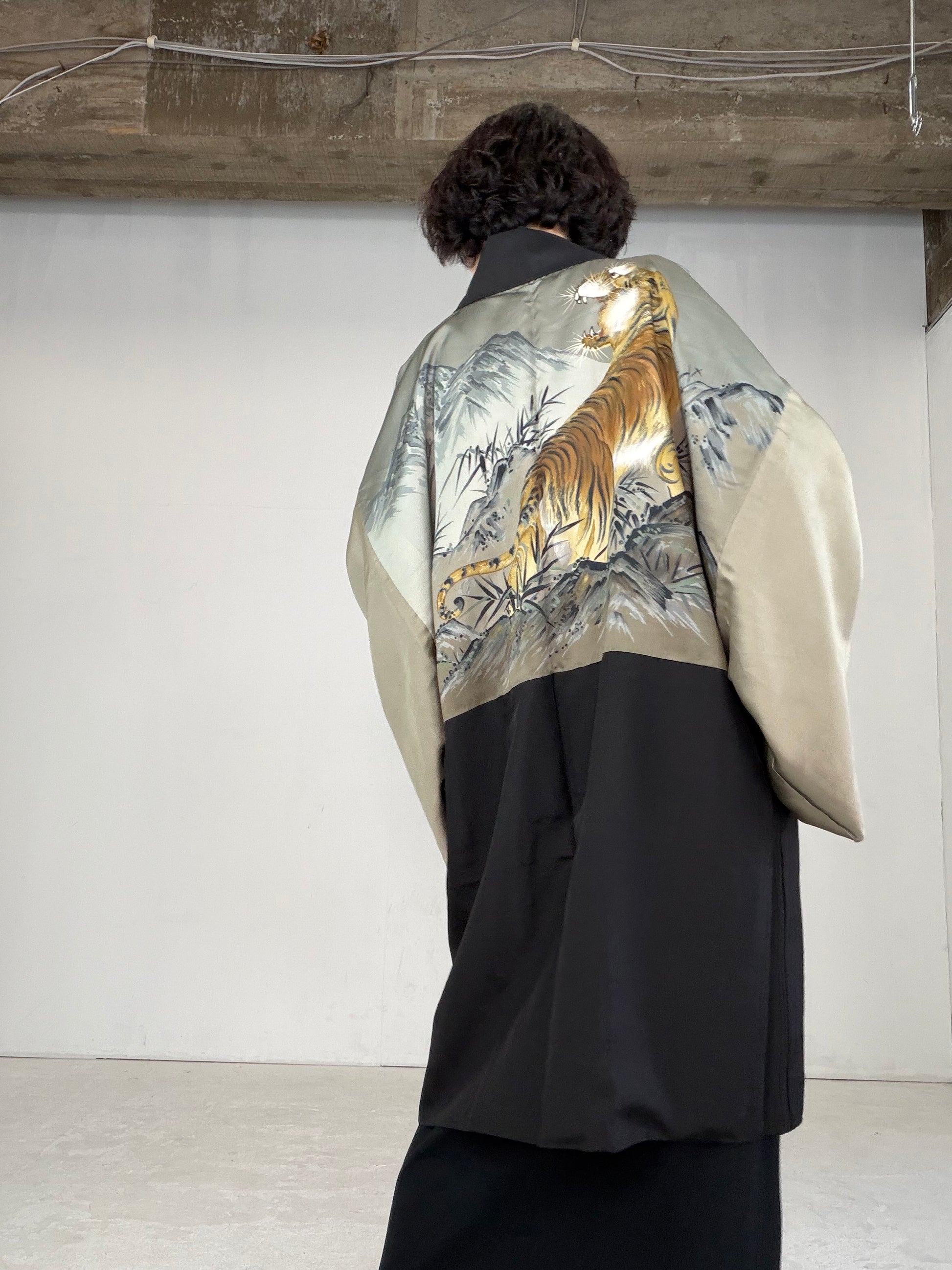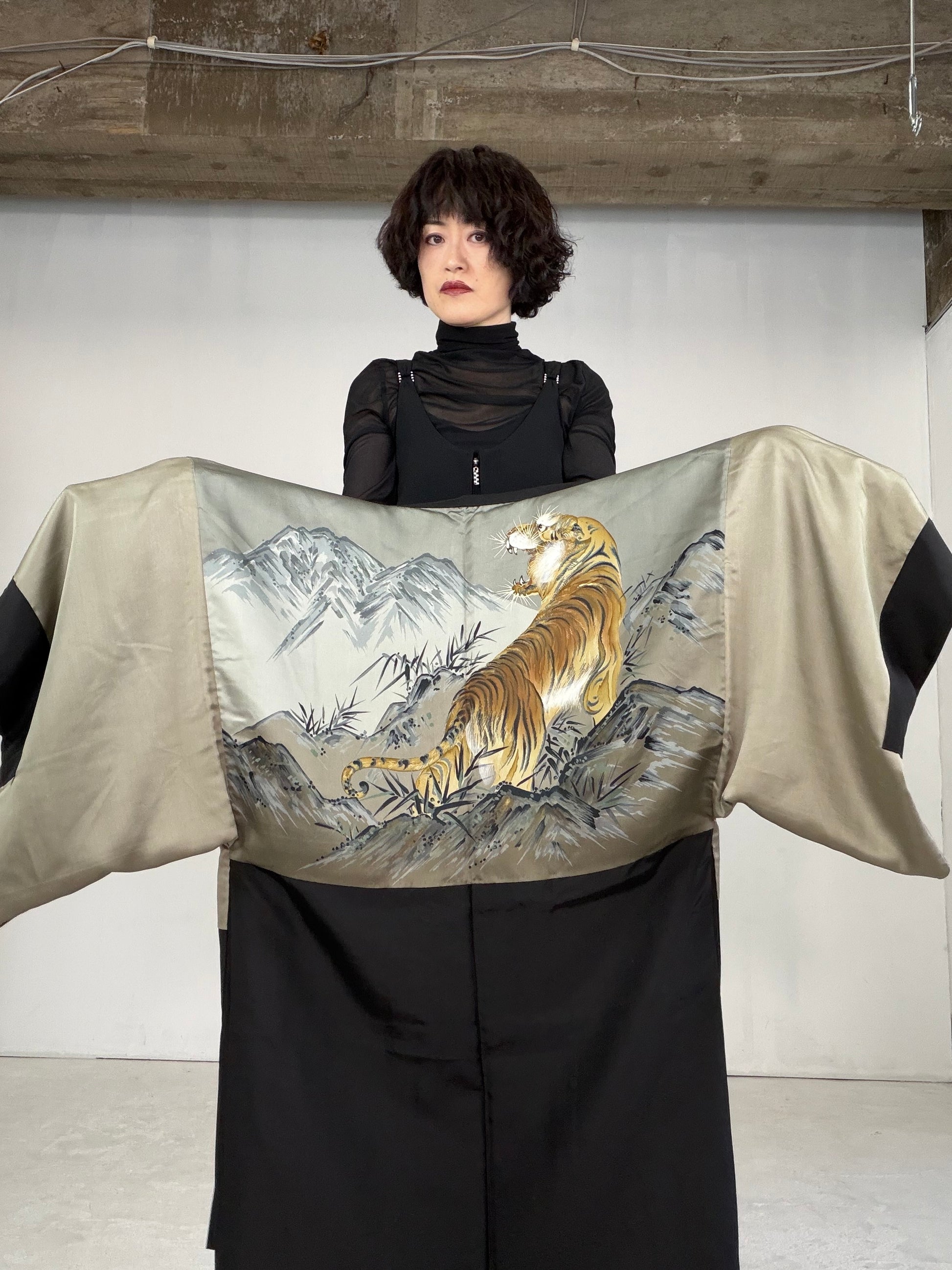 VINTAGE KUROMONTSUKI HAORI "tiger, KUR103" *damage