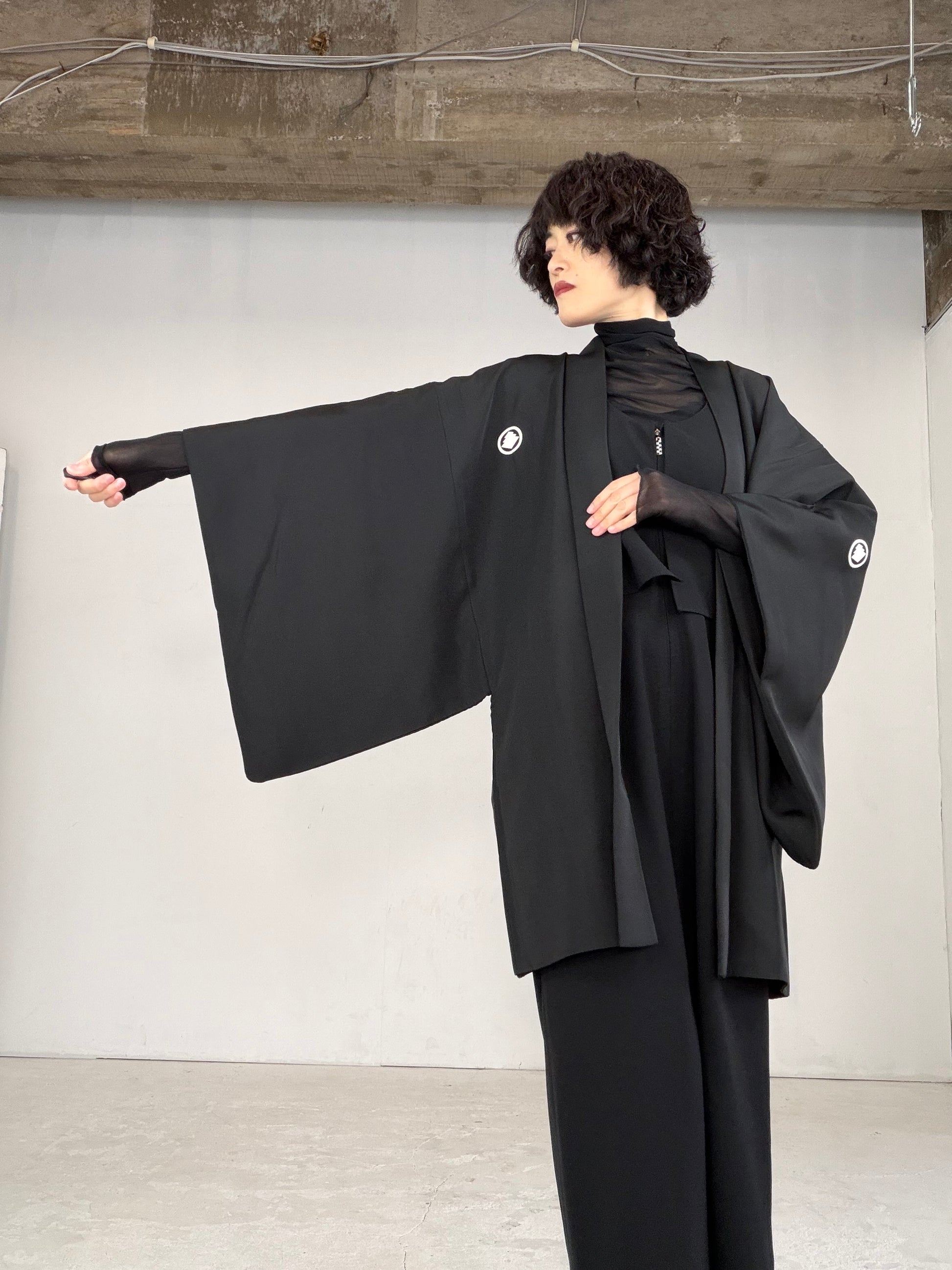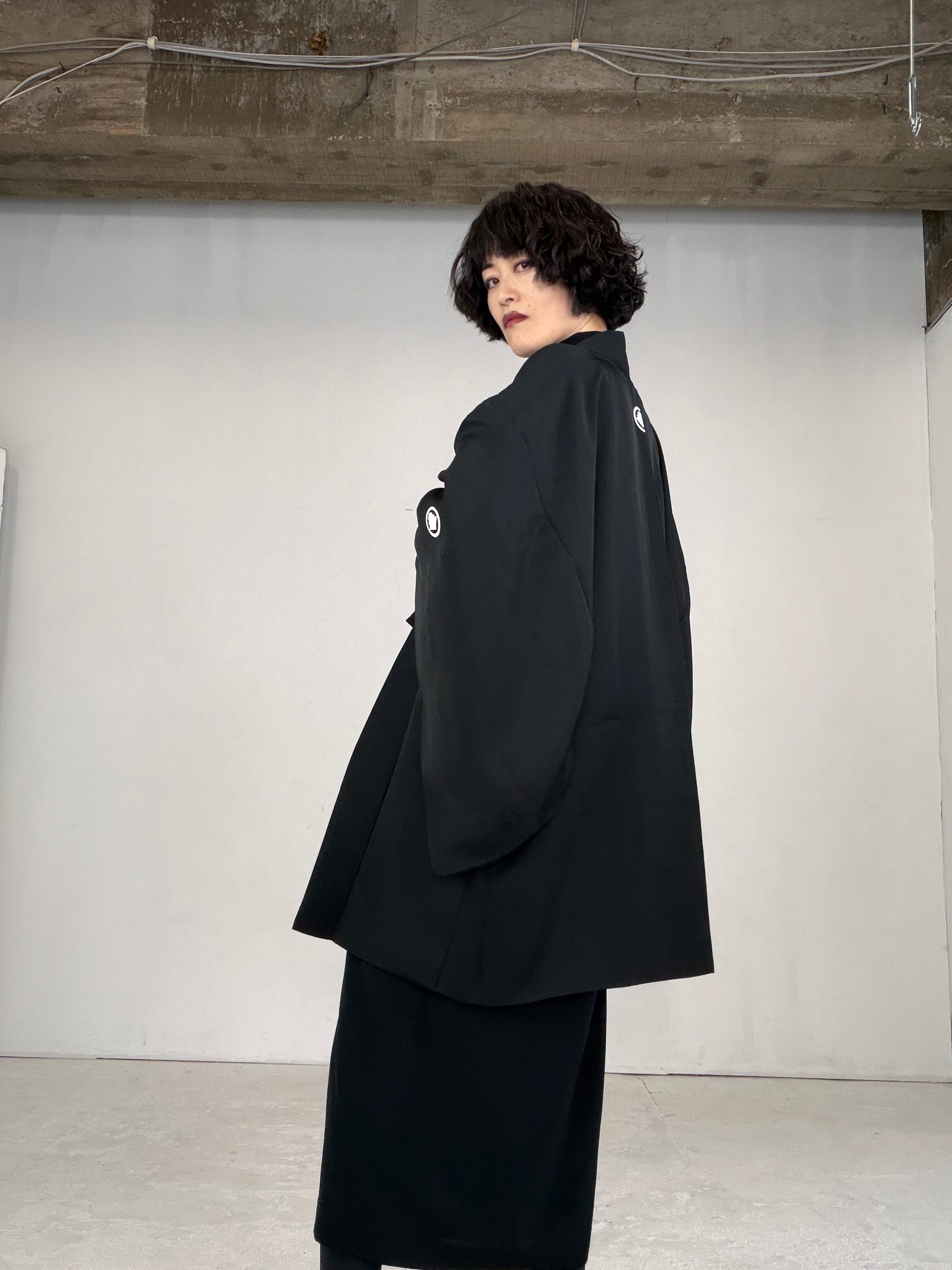 This HAORI is called “KUROMONTSUKI HAORI 黒紋付羽織” in Japan.
