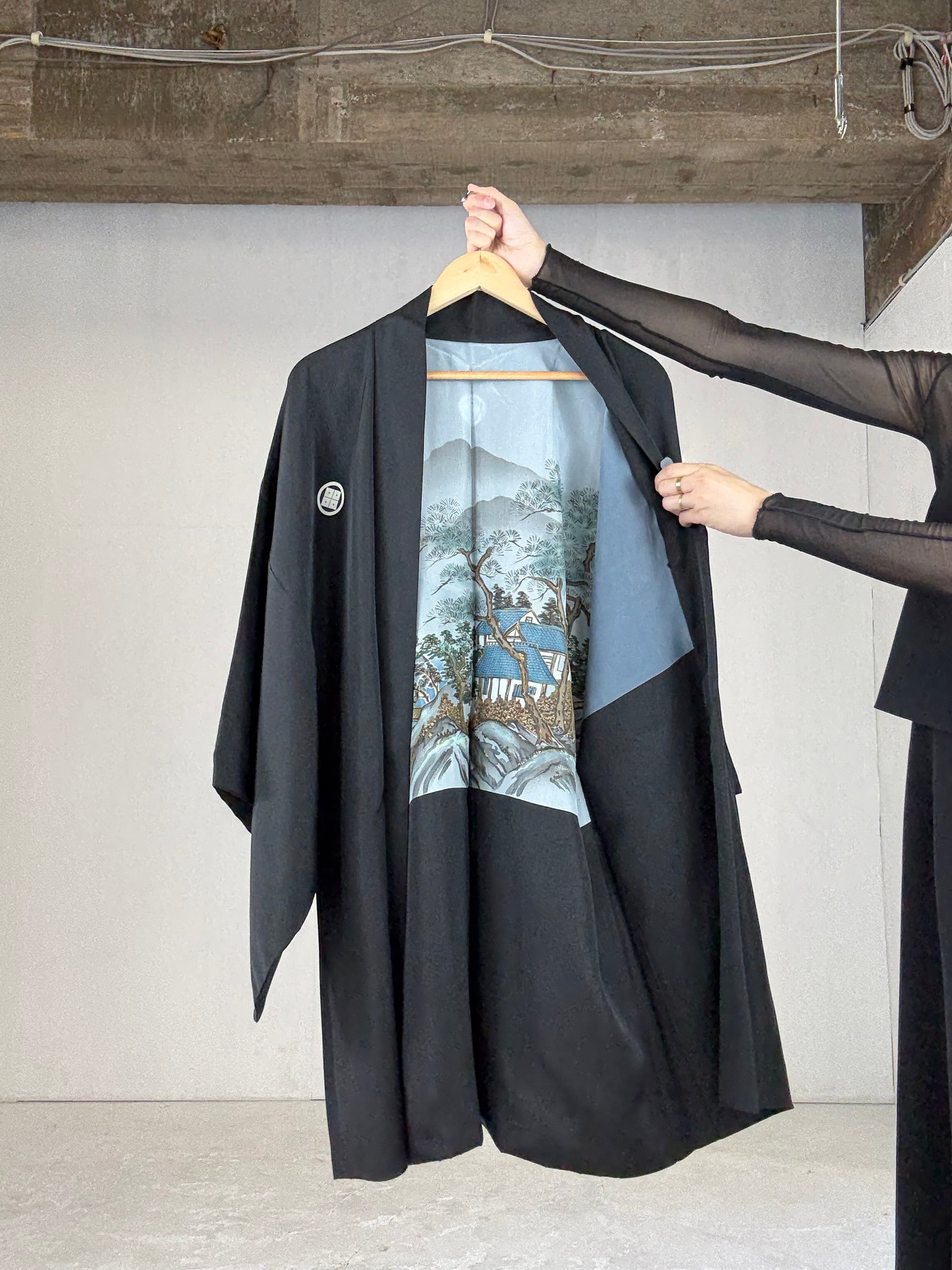 VINTAGE KUROMONTSUKI HAORI "Blue" *damage