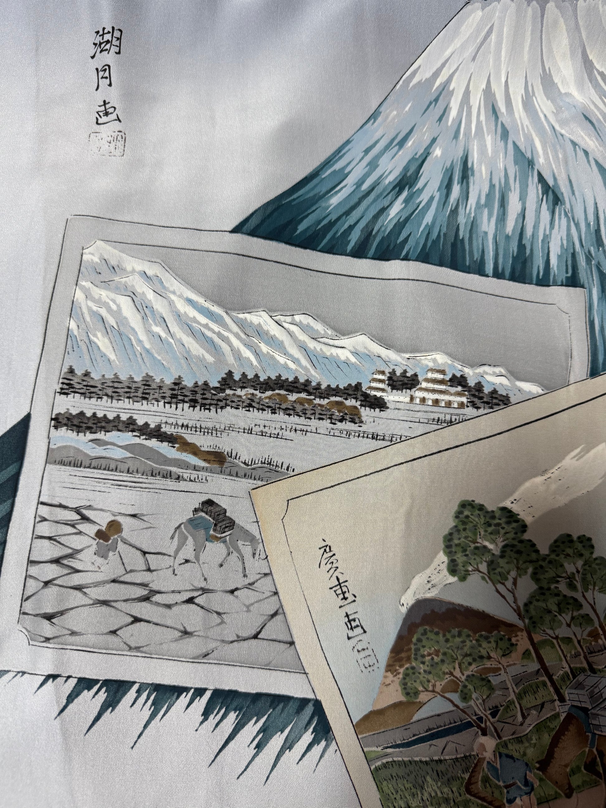 Many kimono are hand-sewn by specialized Japanese artisans called “wasai-shi”. In rural Japan, it was common during the post-war years for farmers to sew kimono during winter months for clients in cities like Kyoto or Tokyo.