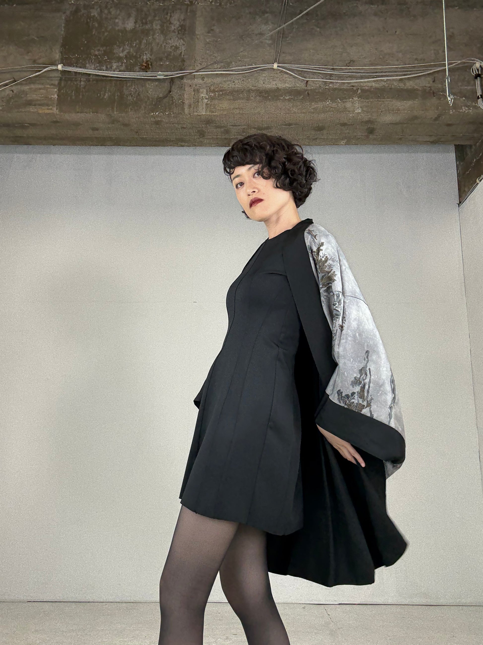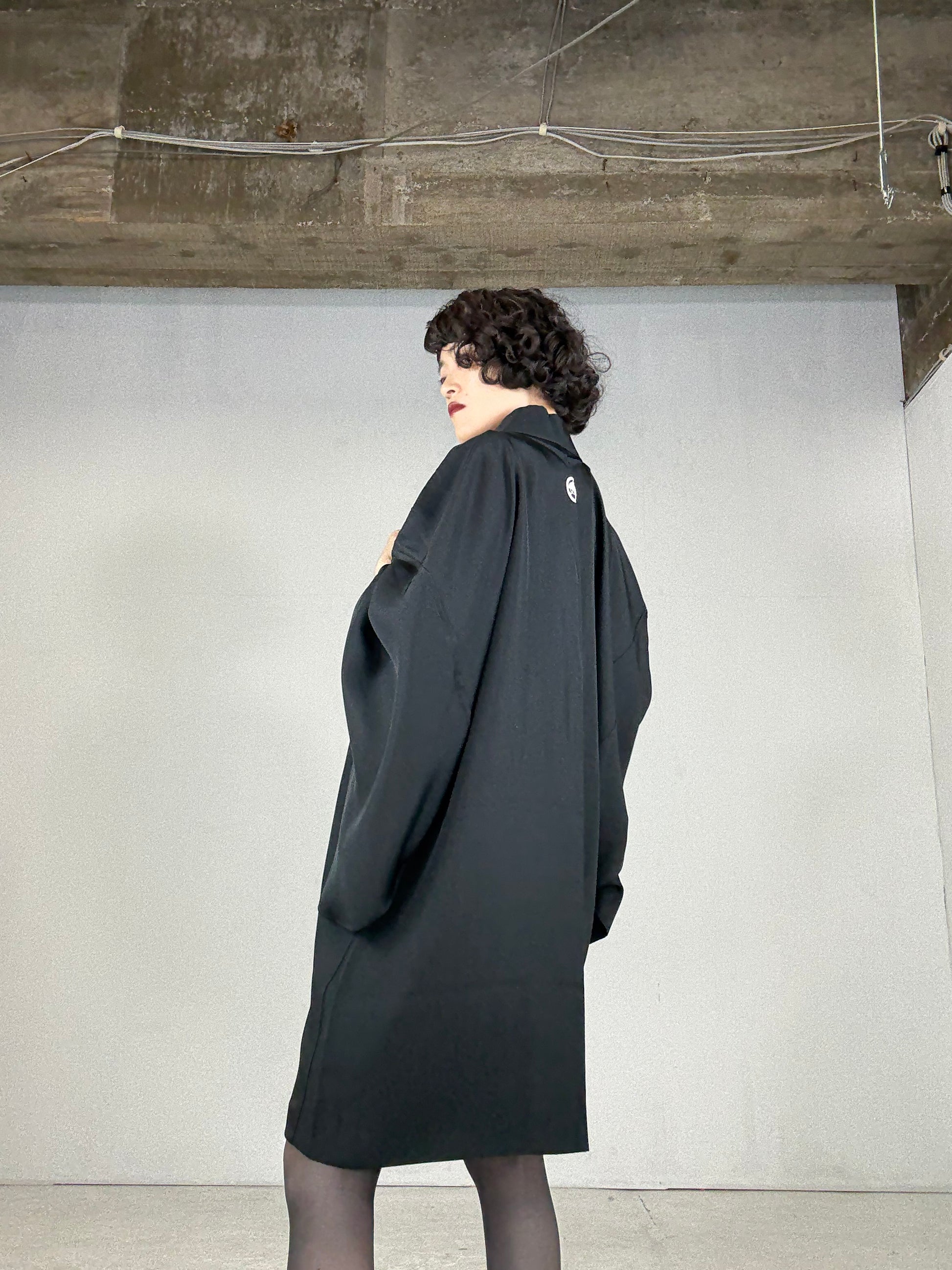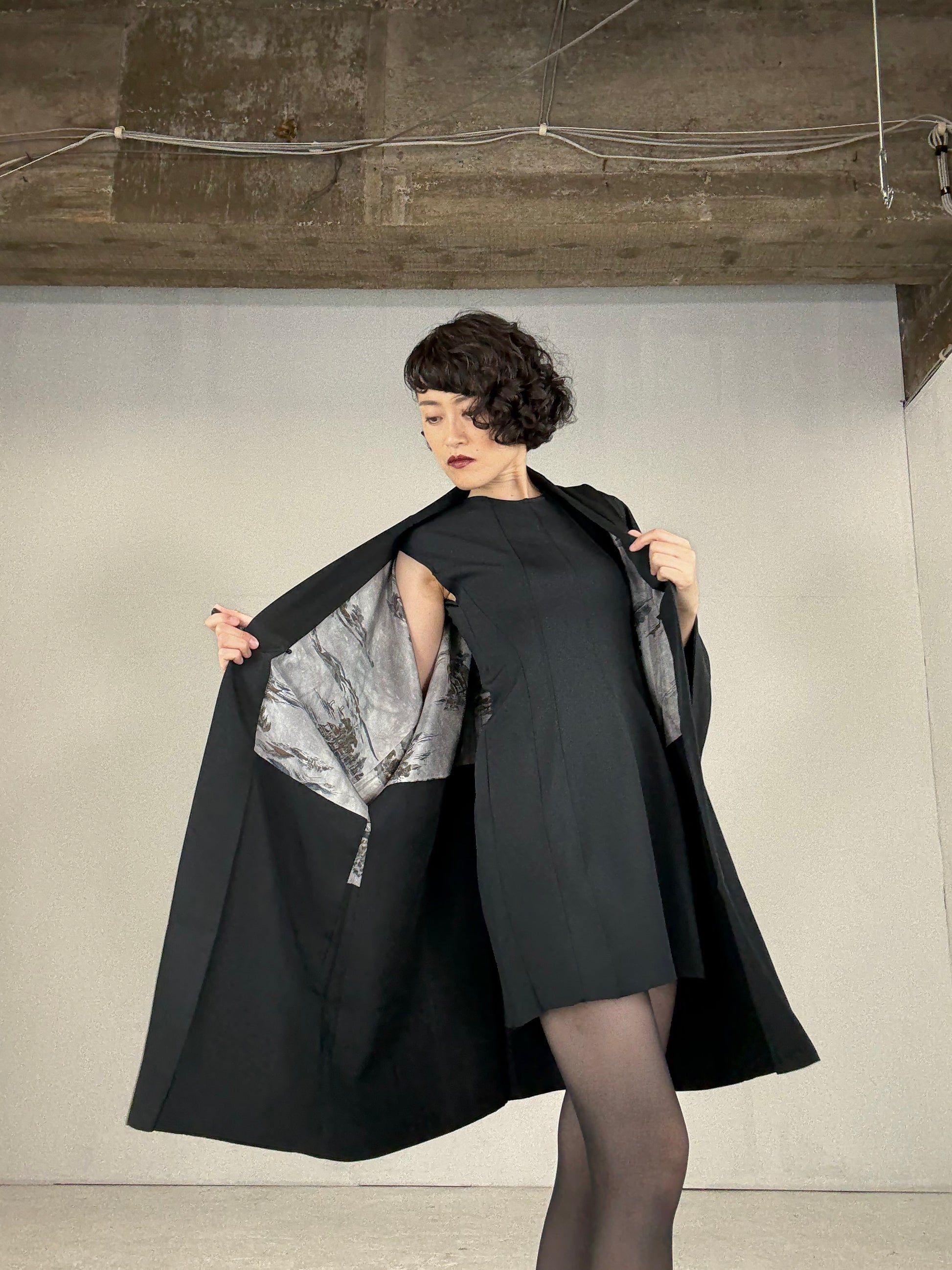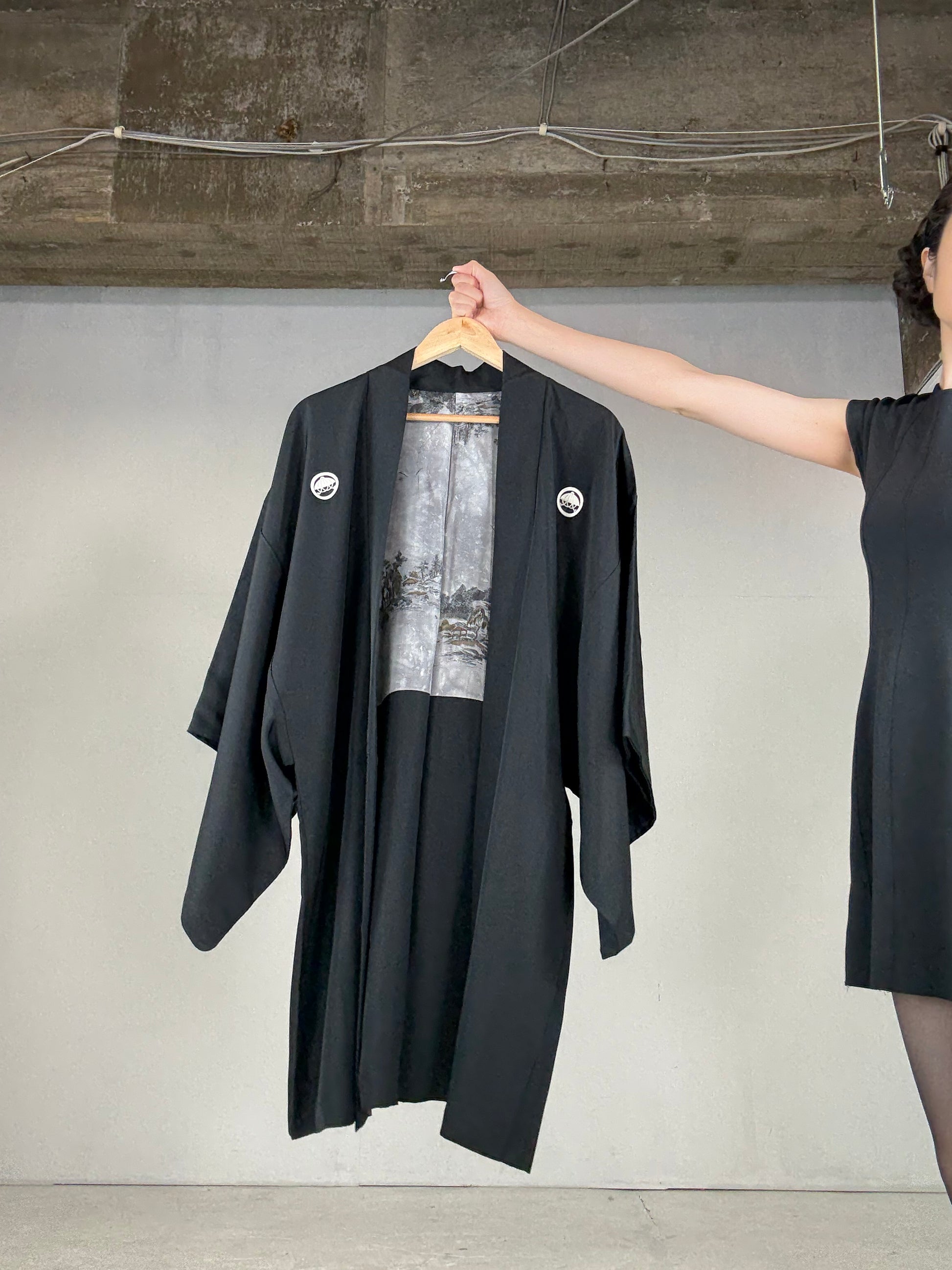 This HAORI is called “KUROMONTSUKI HAORI 黒紋付羽織” in Japan.