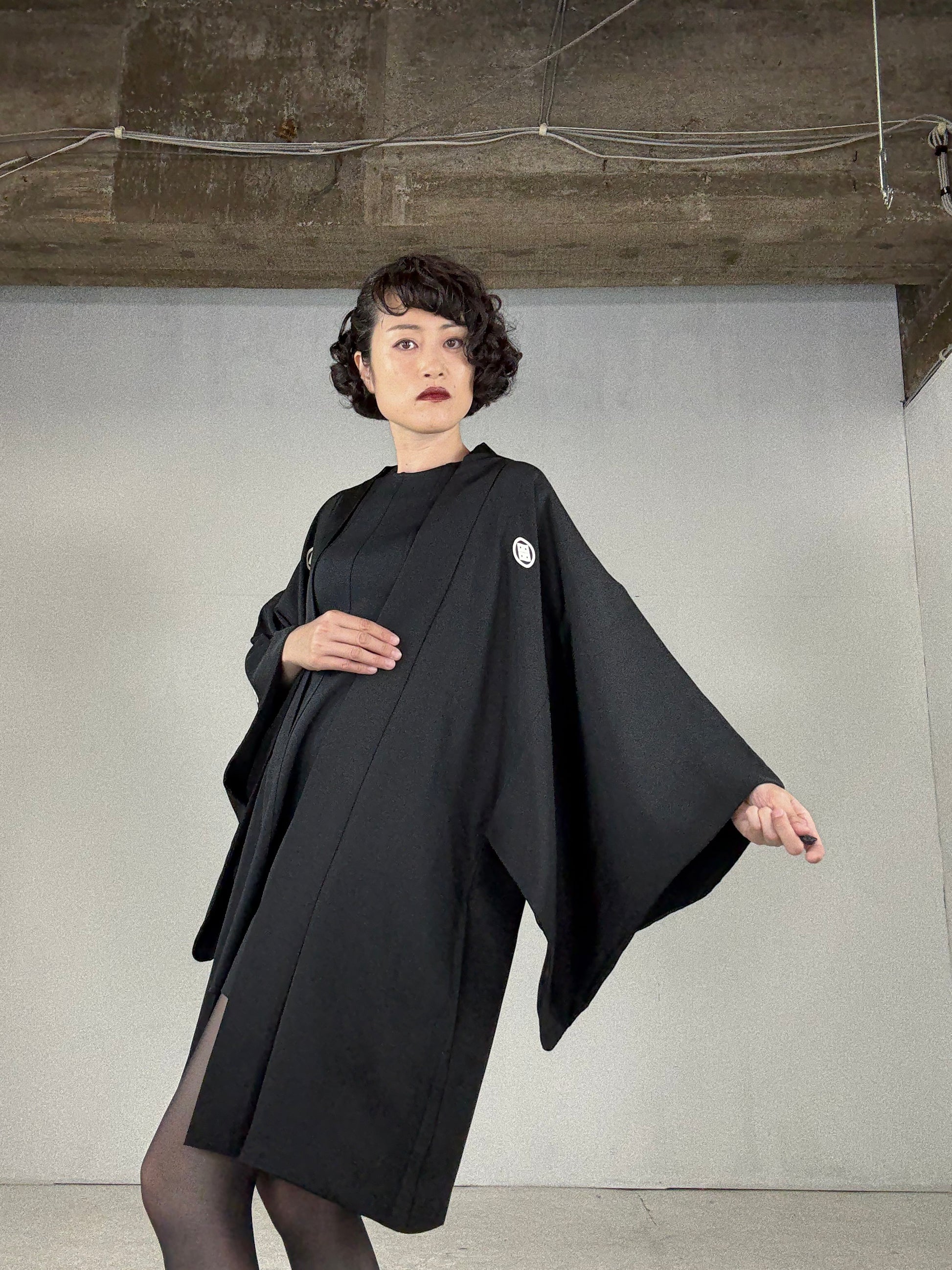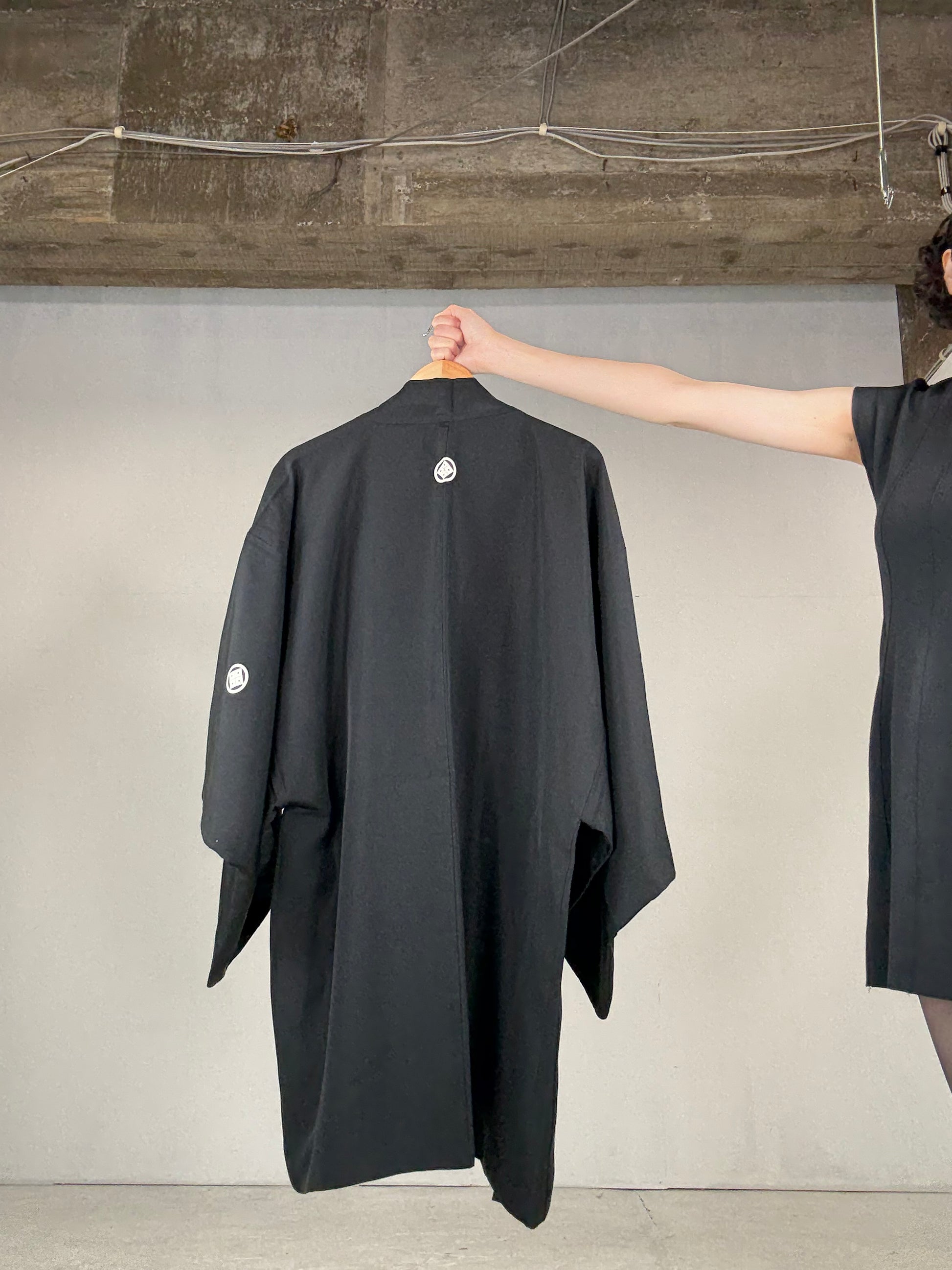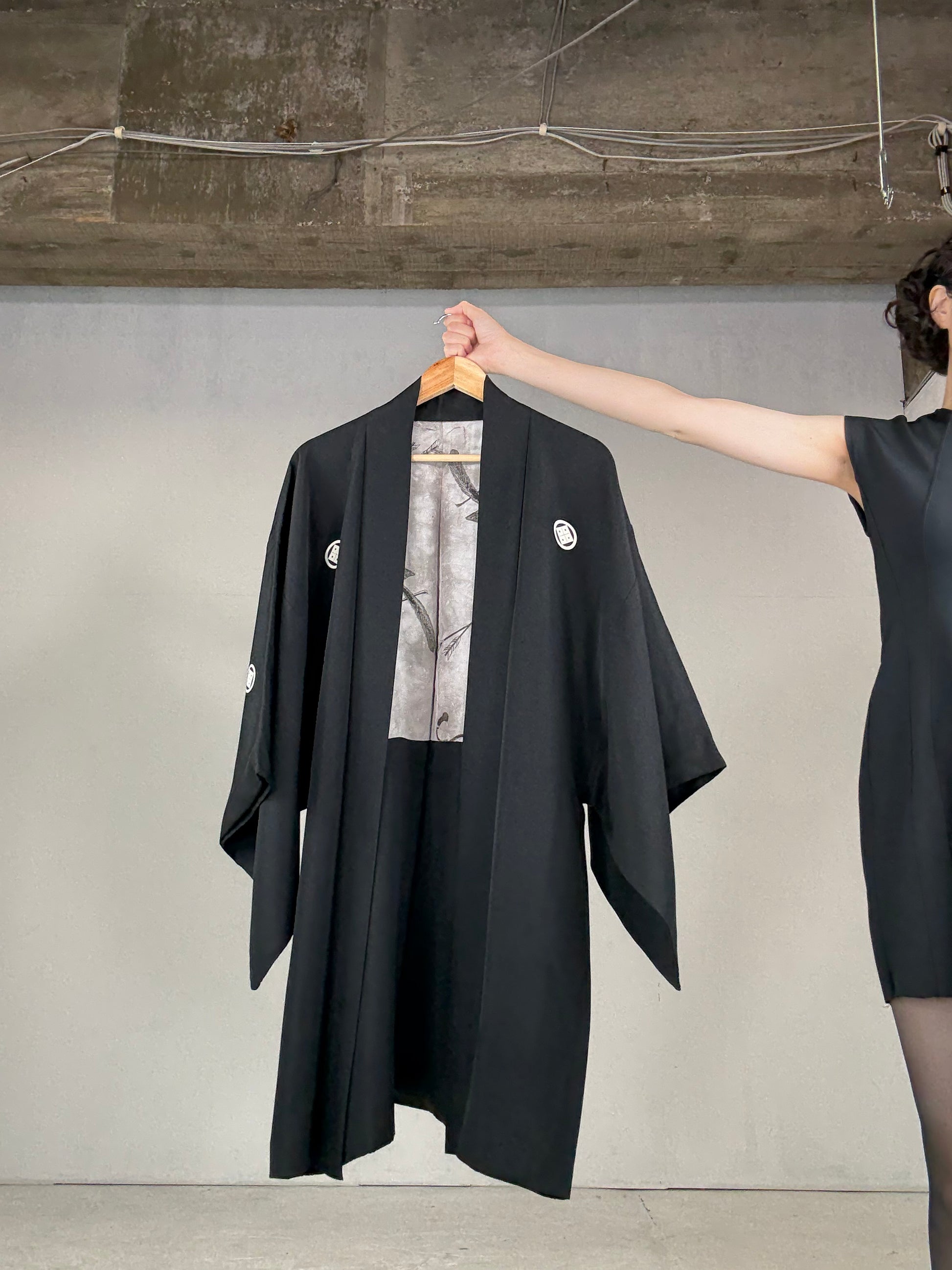 This HAORI is called “KUROMONTSUKI HAORI 黒紋付羽織” in Japan.
