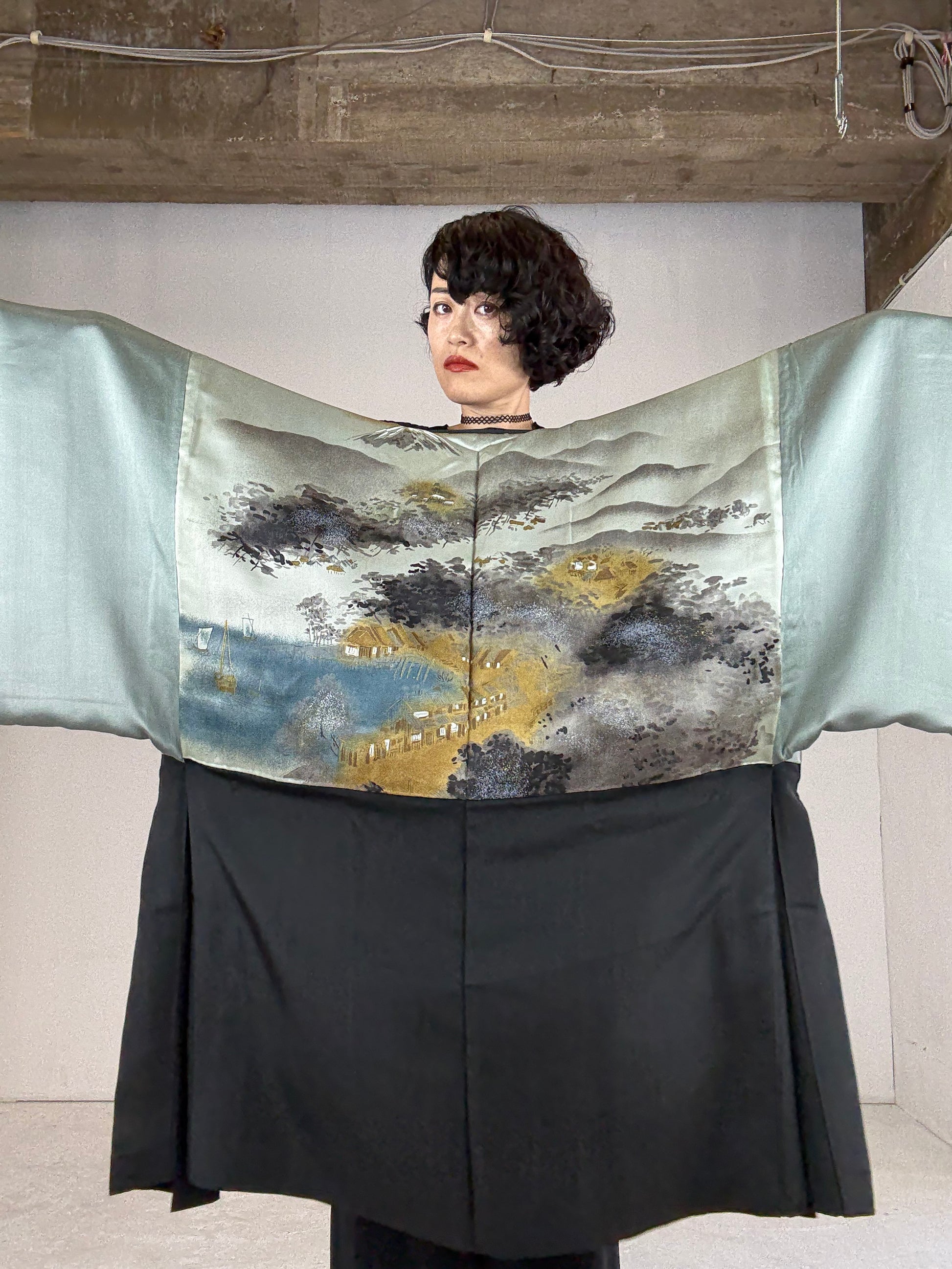 VINTAGE KUROMONTSUKI HAORI "umibe"