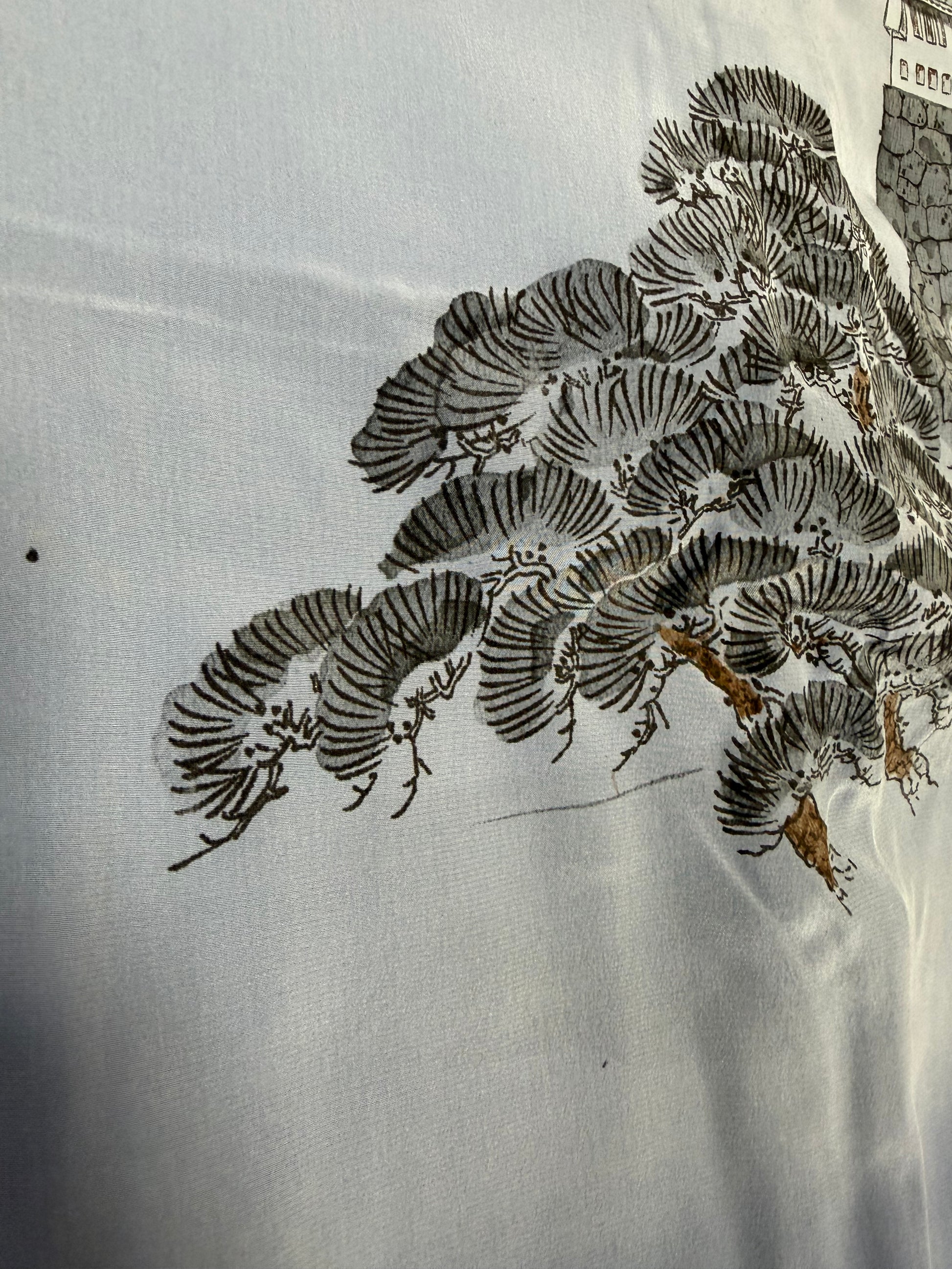 Many kimono are hand-sewn by specialized Japanese artisans called “wasai-shi”. In rural Japan, it was common during the post-war years for farmers to sew kimono during winter months for clients in cities like Kyoto or Tokyo.