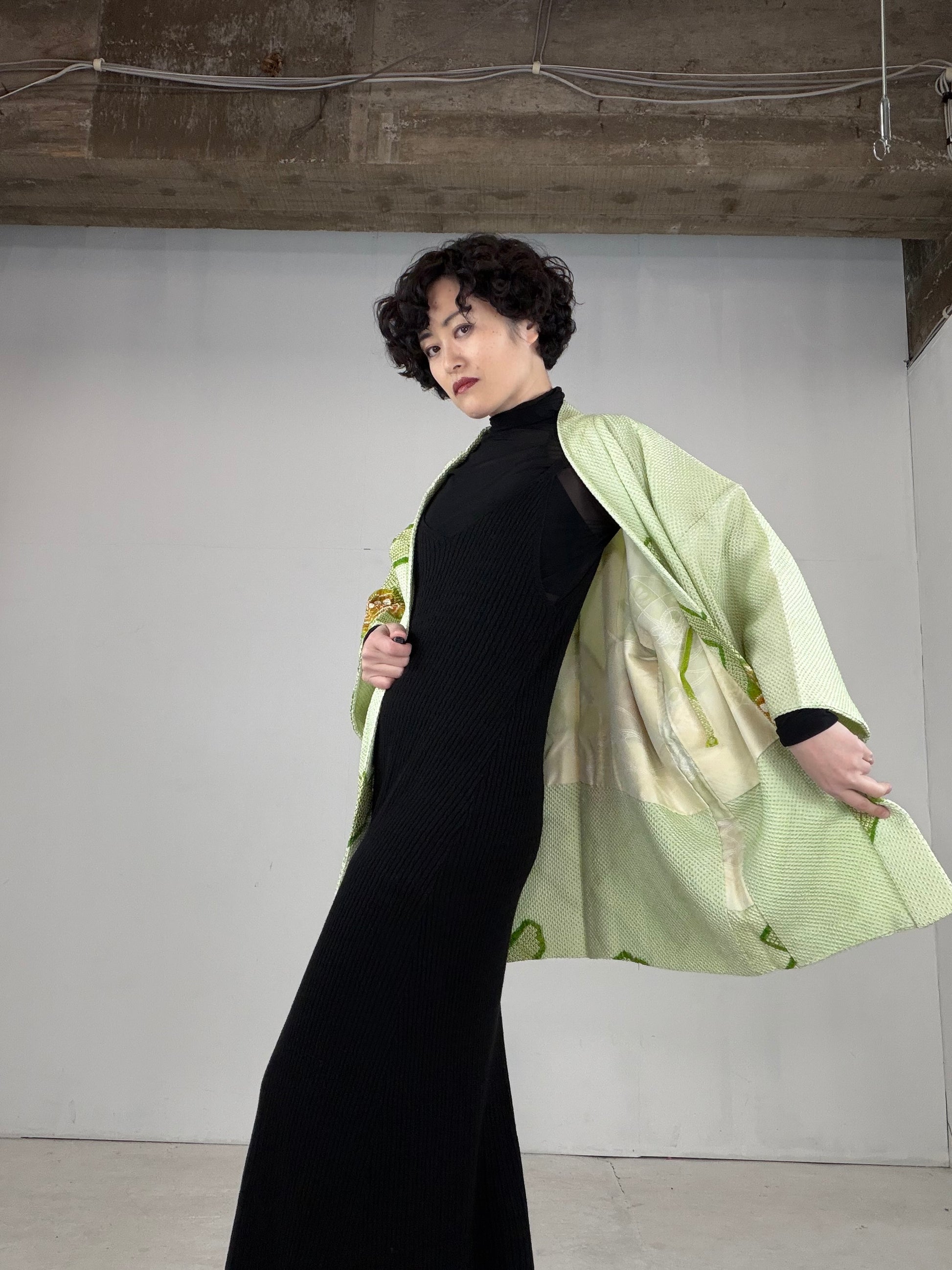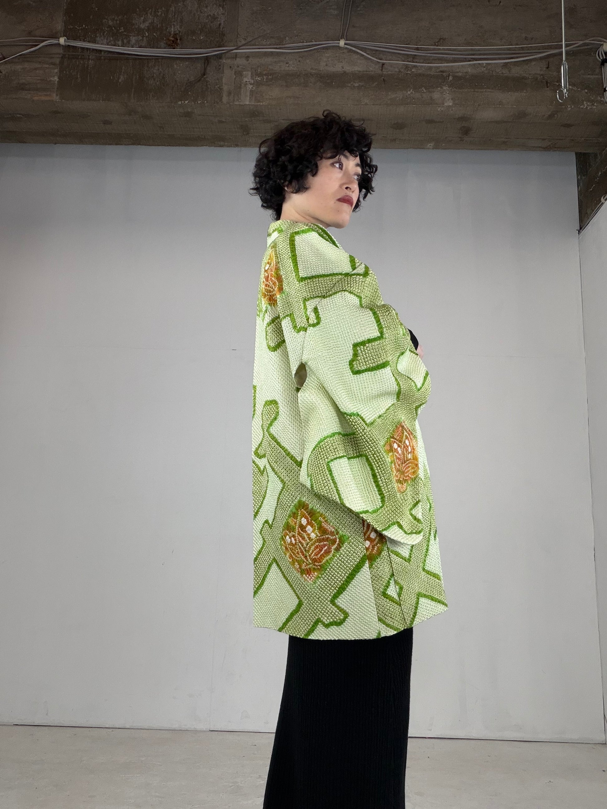 VINTAGE SHIBORI HAORI "green-butterfly, SIB195" *damage