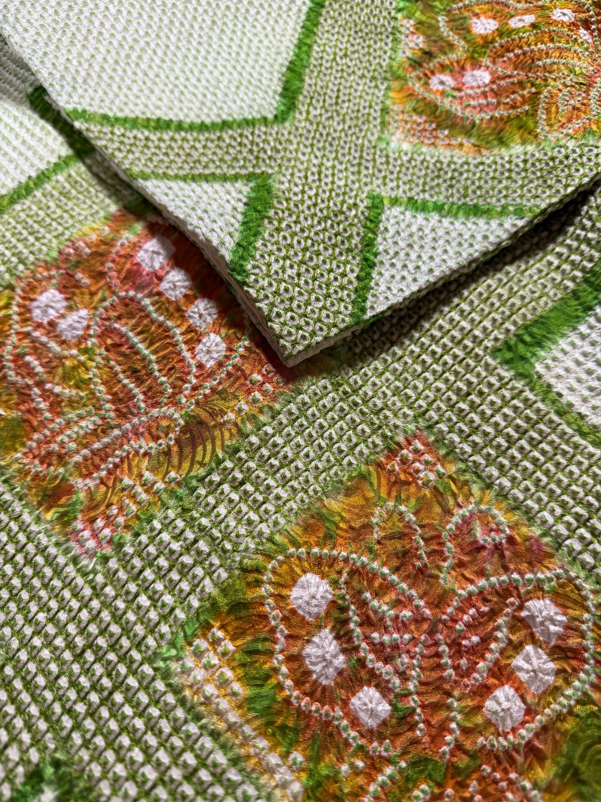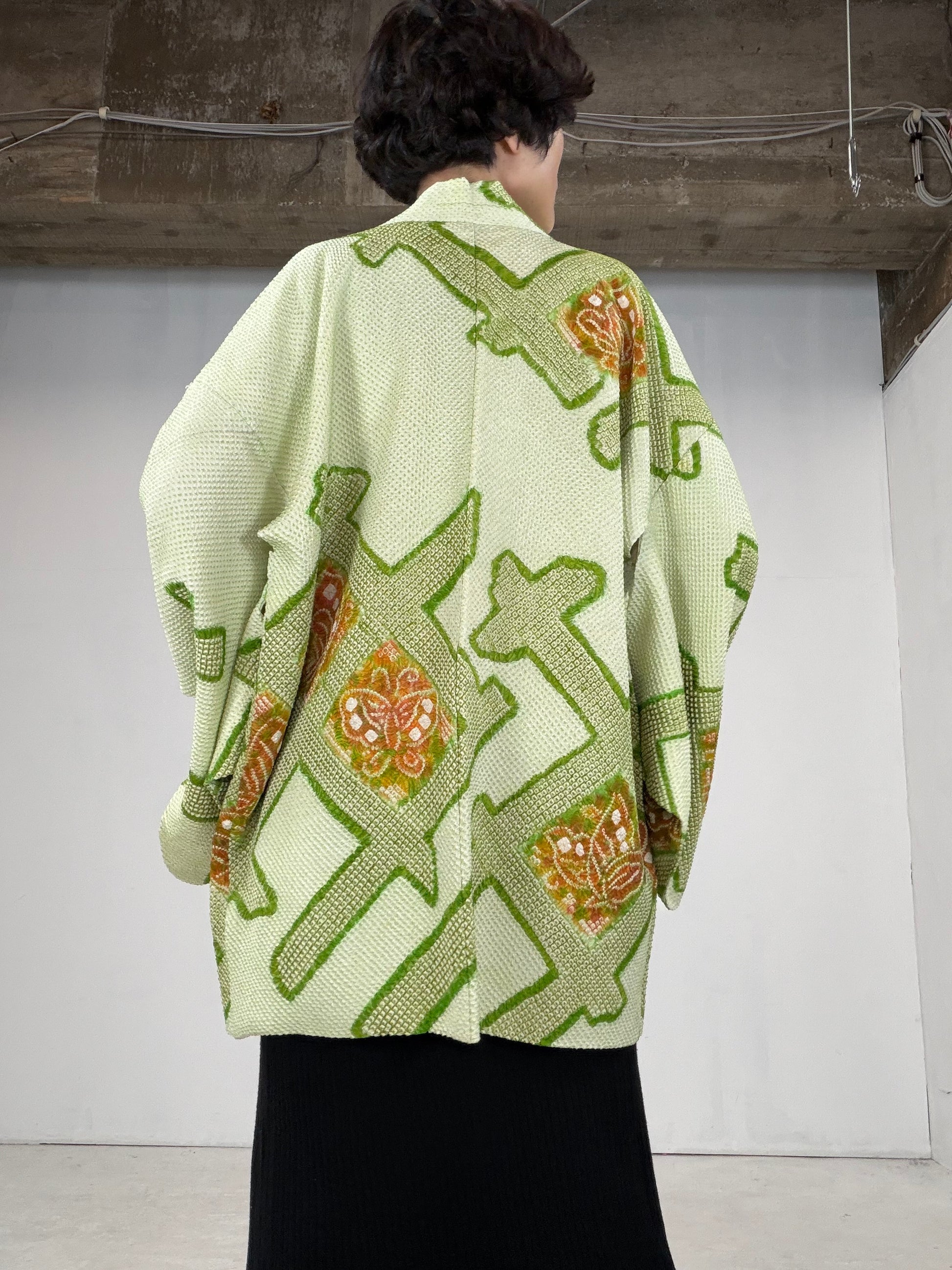 VINTAGE SHIBORI HAORI "green-butterfly" *damage