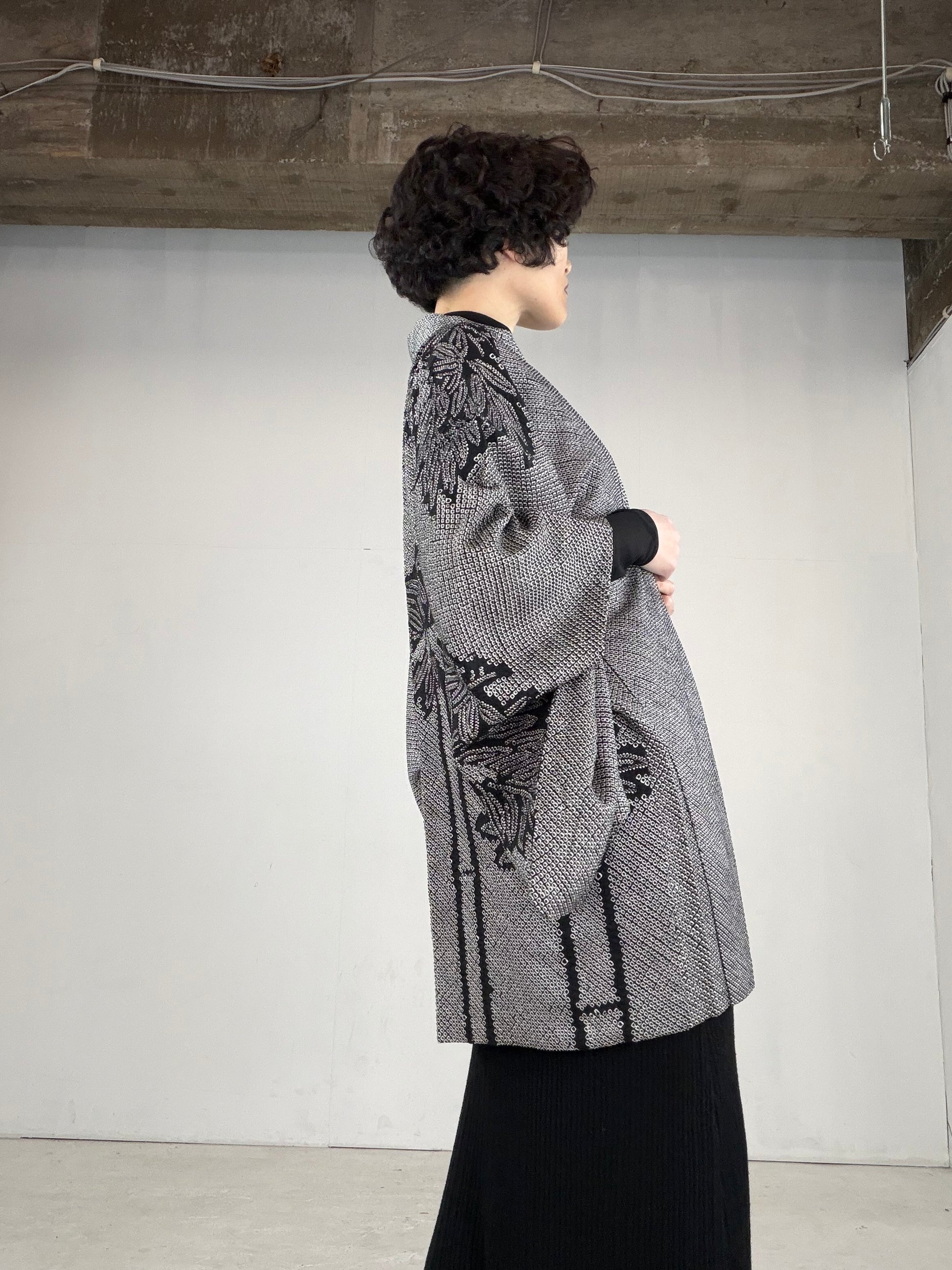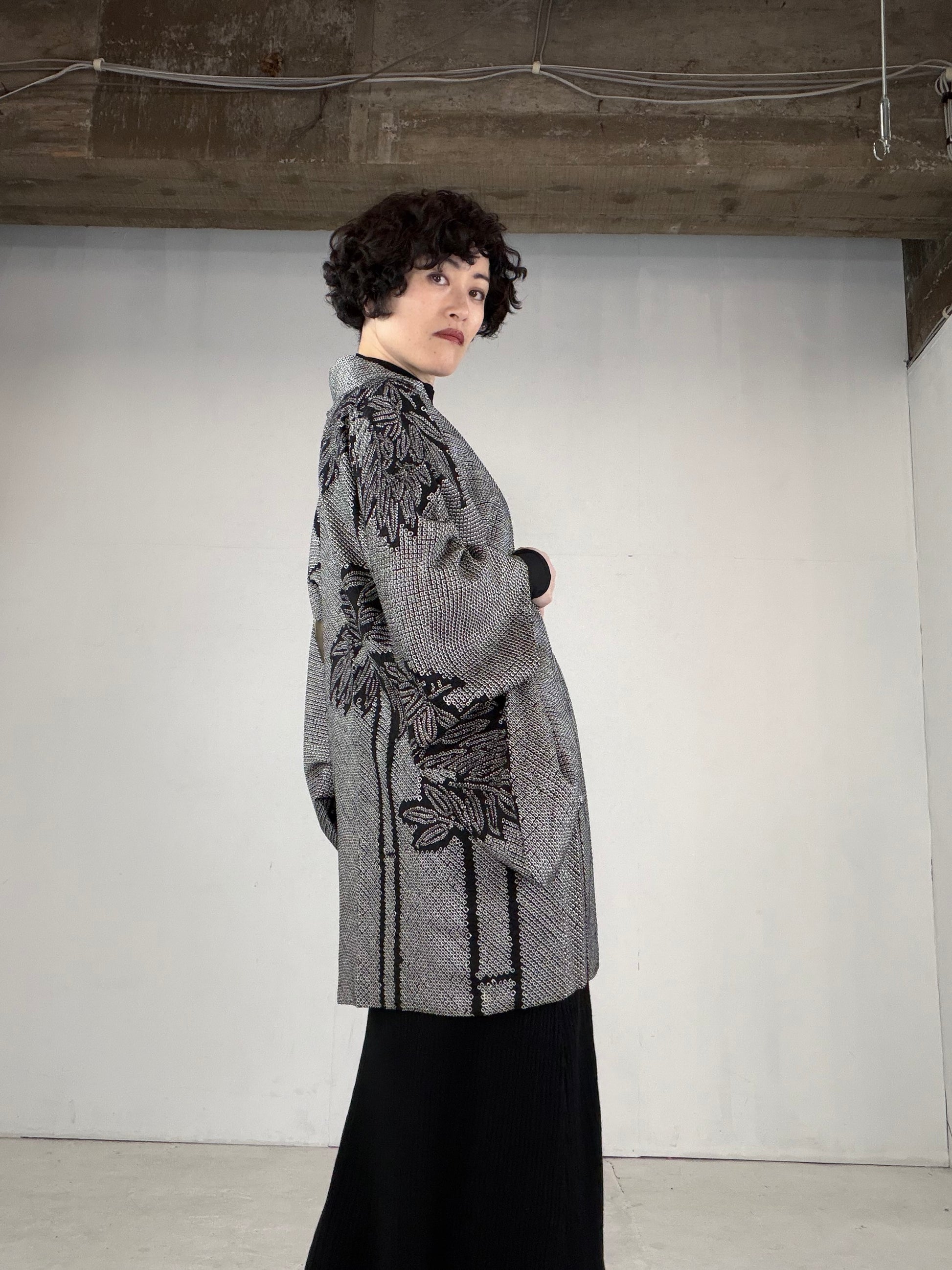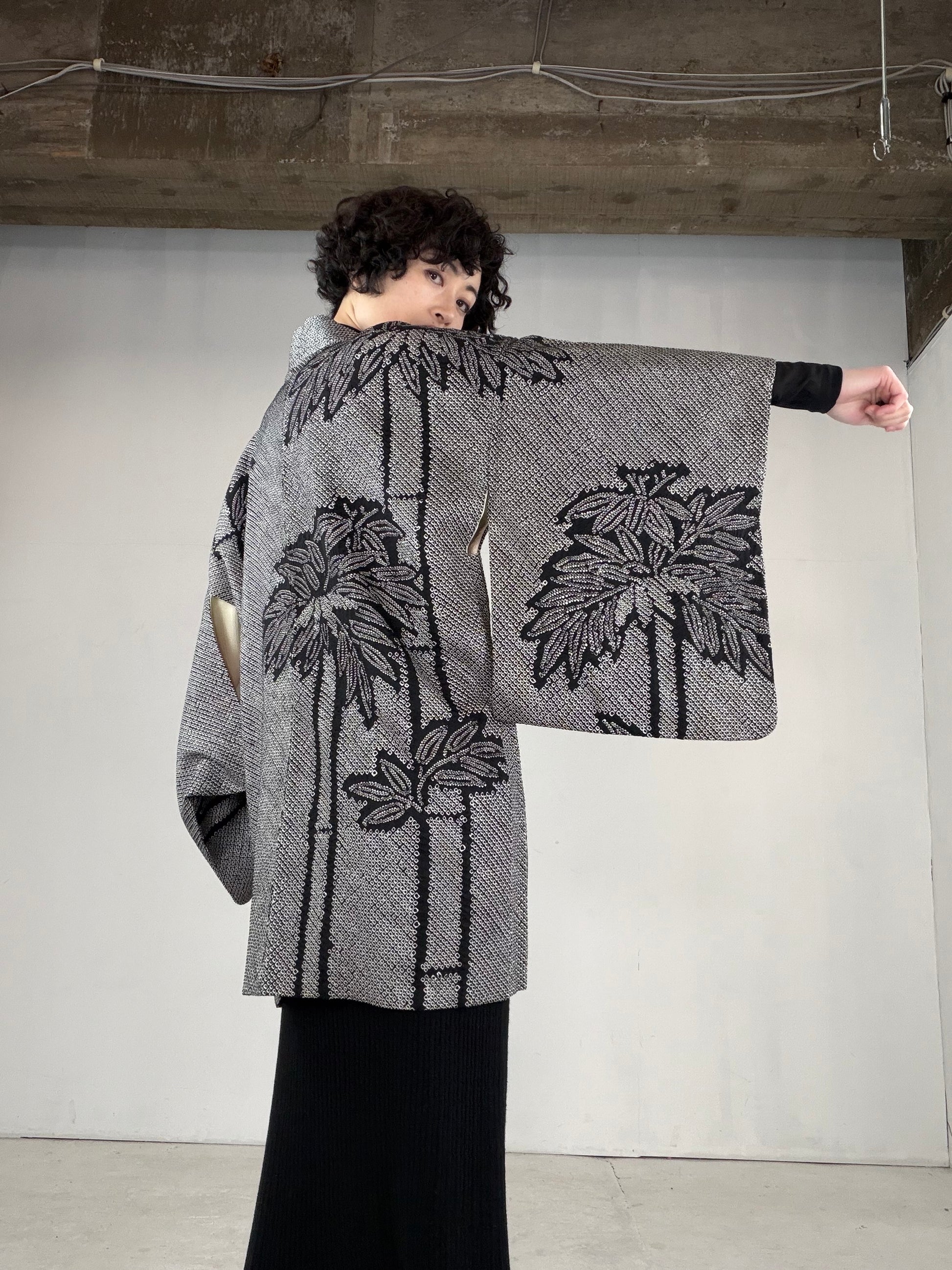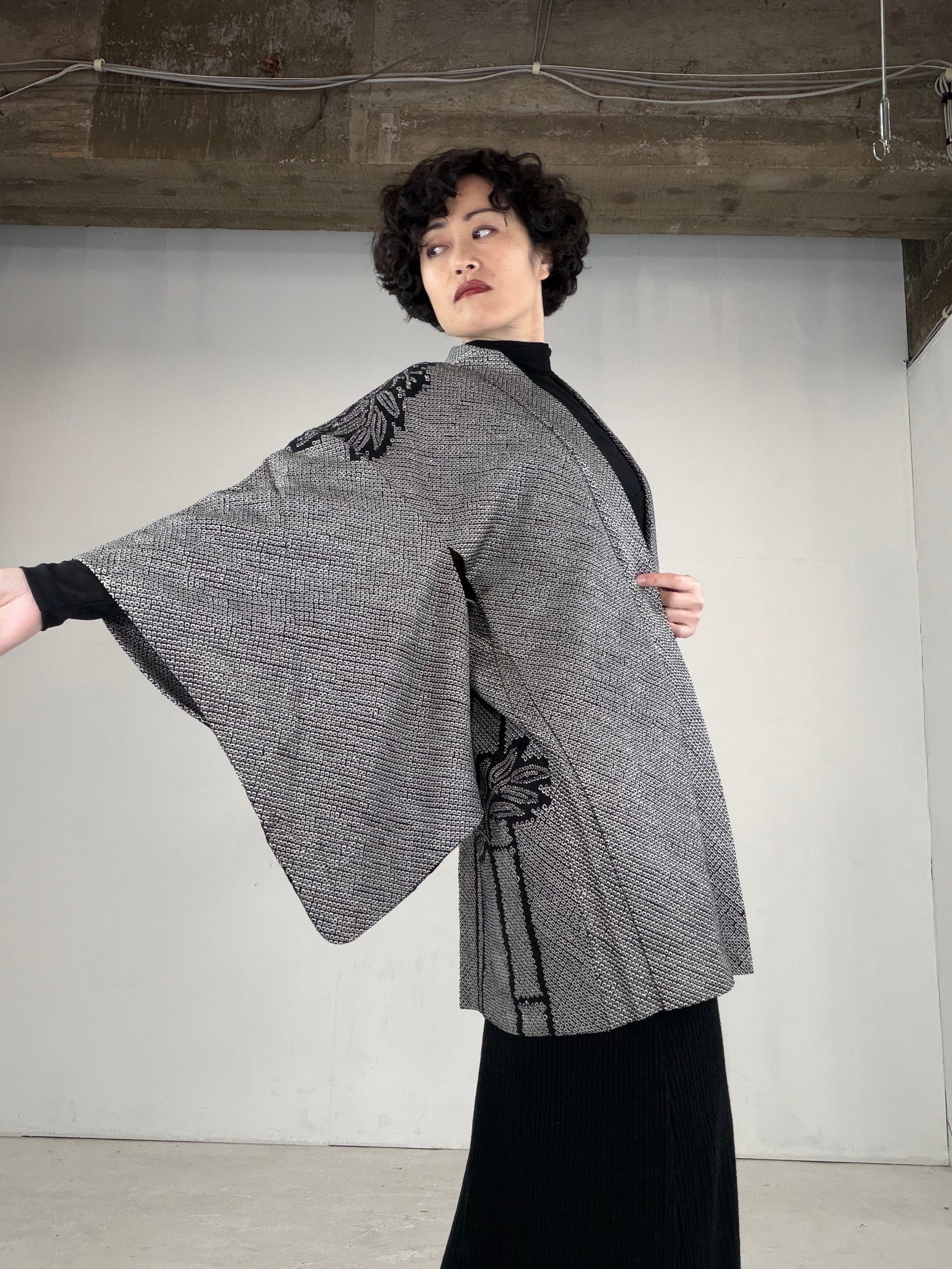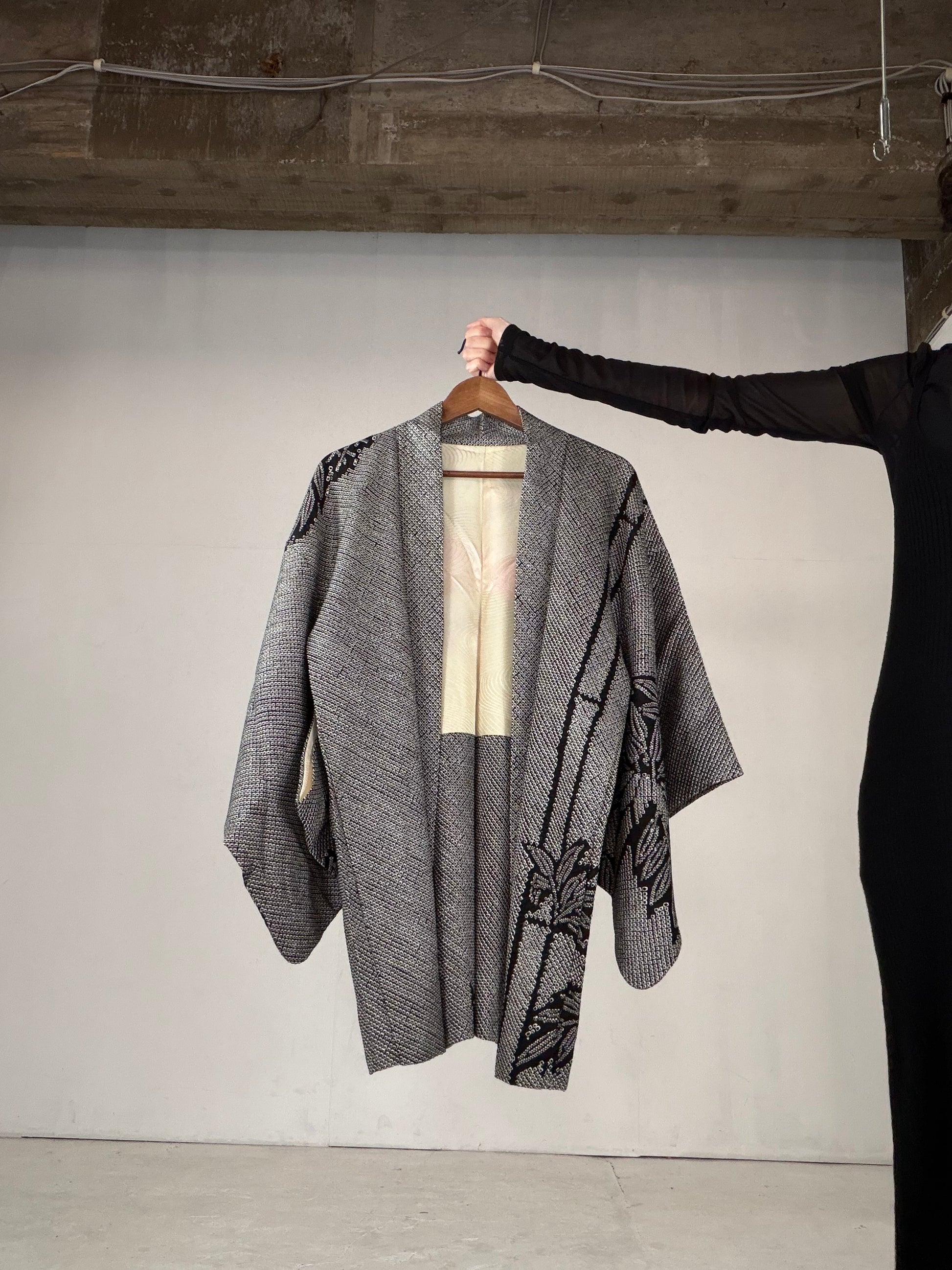 VINTAGE SHIBORI HAORI "black, bamboo, SIB107" *damage